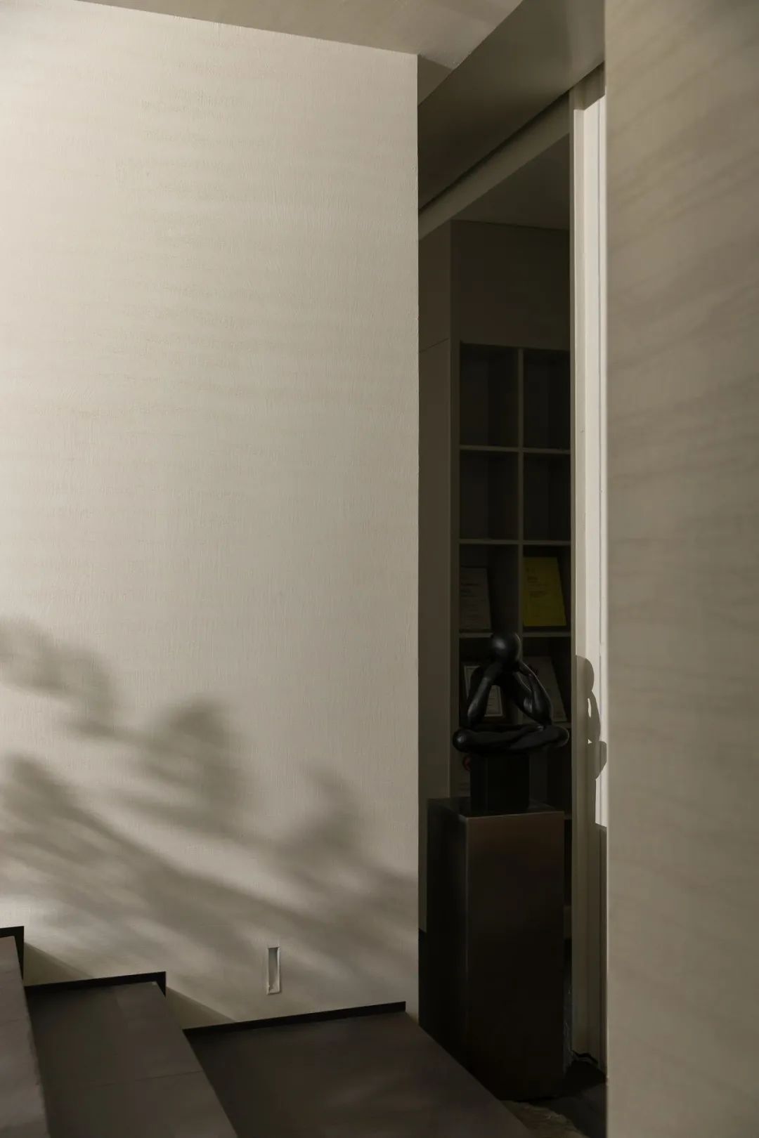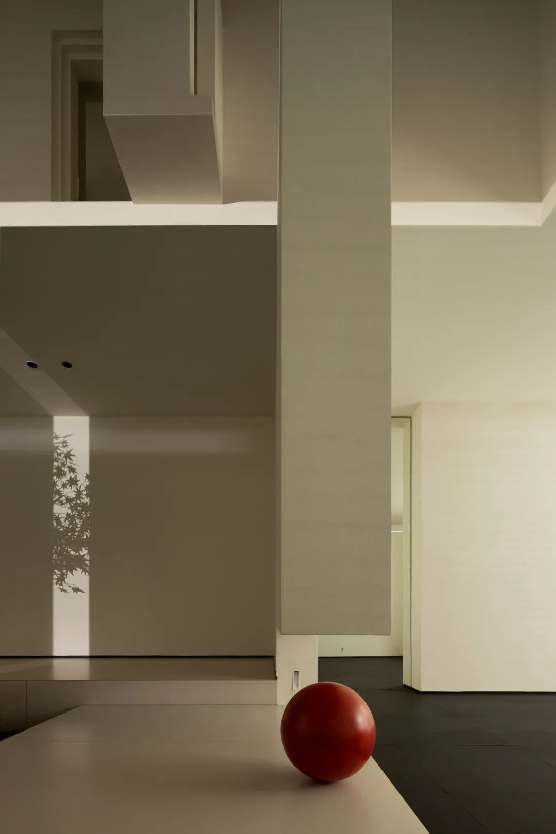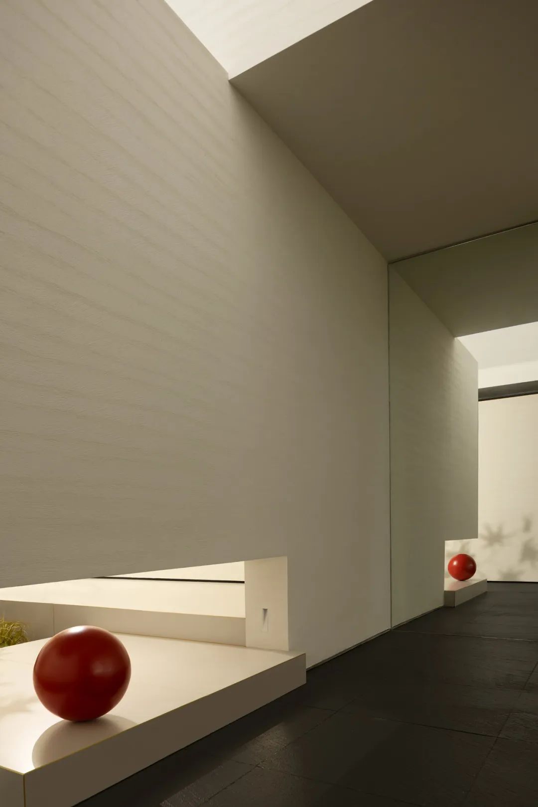 设计选材:本案沒有过多的材料堆彻,以环保涂料的特性丰富了墙面的肌理感增强了体块的质感。