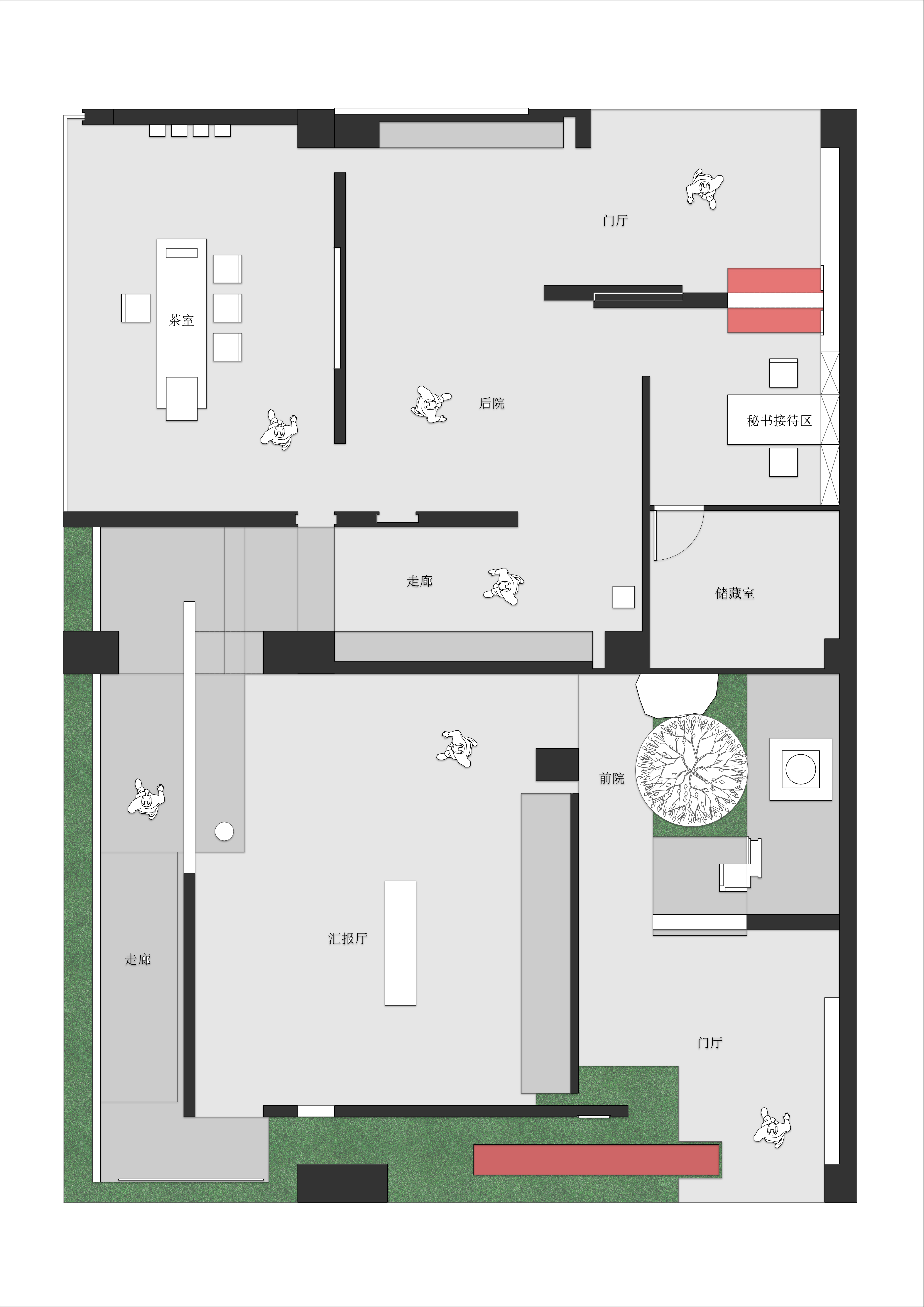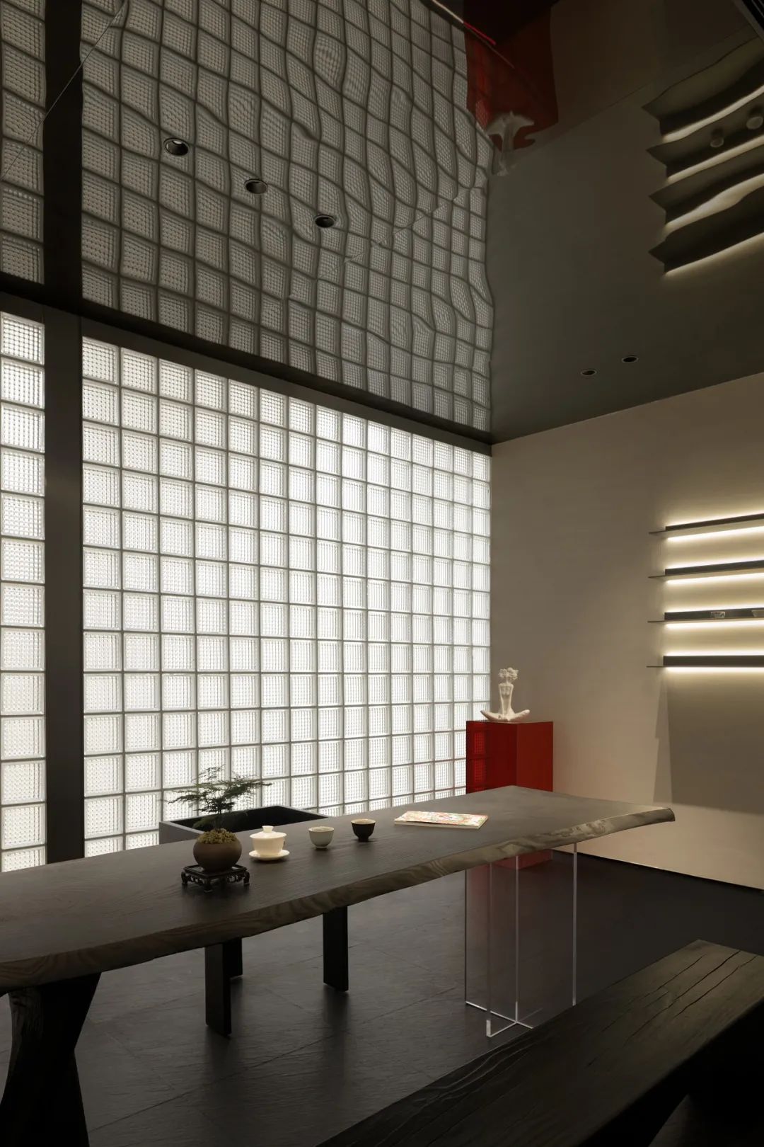 空间布局:空间上运用了中国园林的手法,将造景和空间环境有机融合,将空间分成不同大大小小的盒子,通过通道将其串联起来。虽以当代的表现手法,但其内核是东方的。