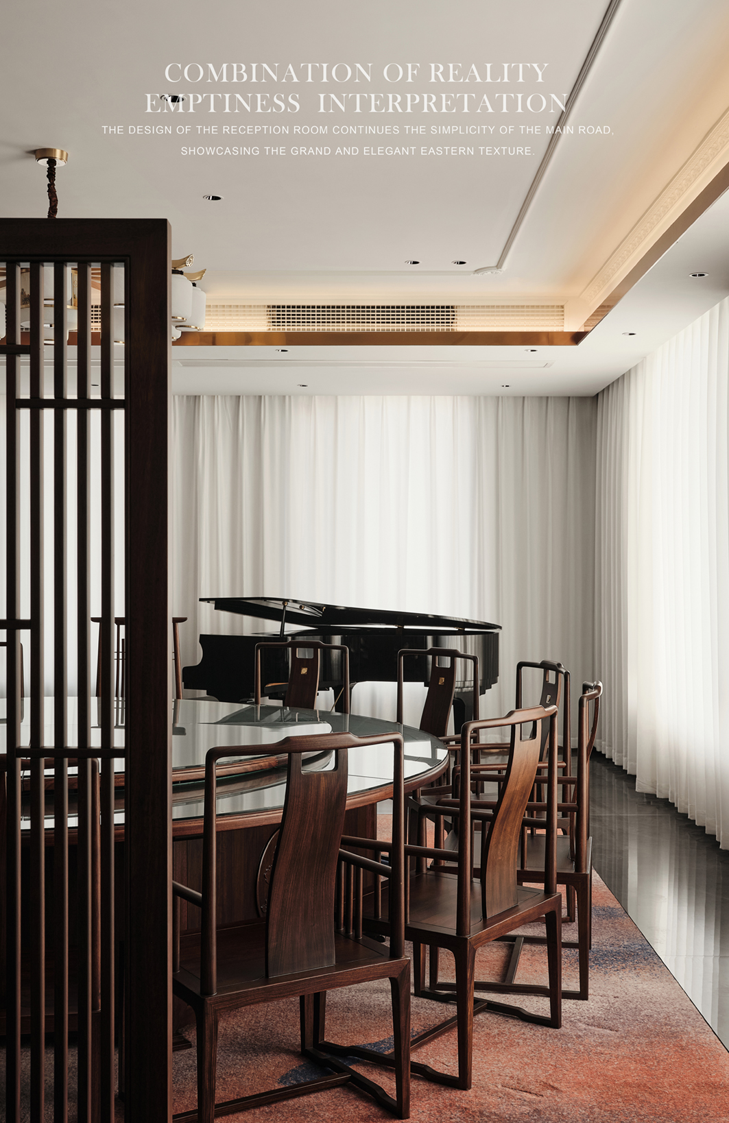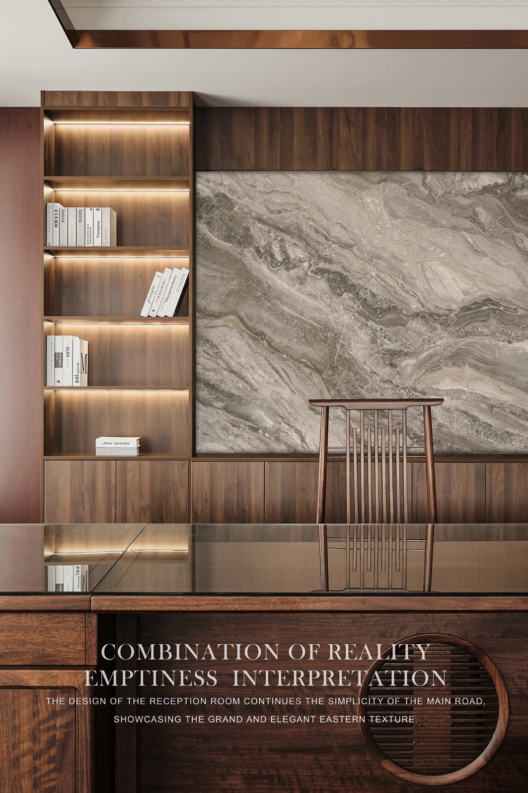 接待室设计延续大道至简的设计手法,尽显轩朗大气的东方质地。纵情城市画卷,是文人的泼墨山水,是传承的千年风韵。 -