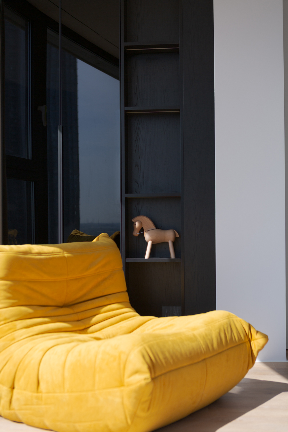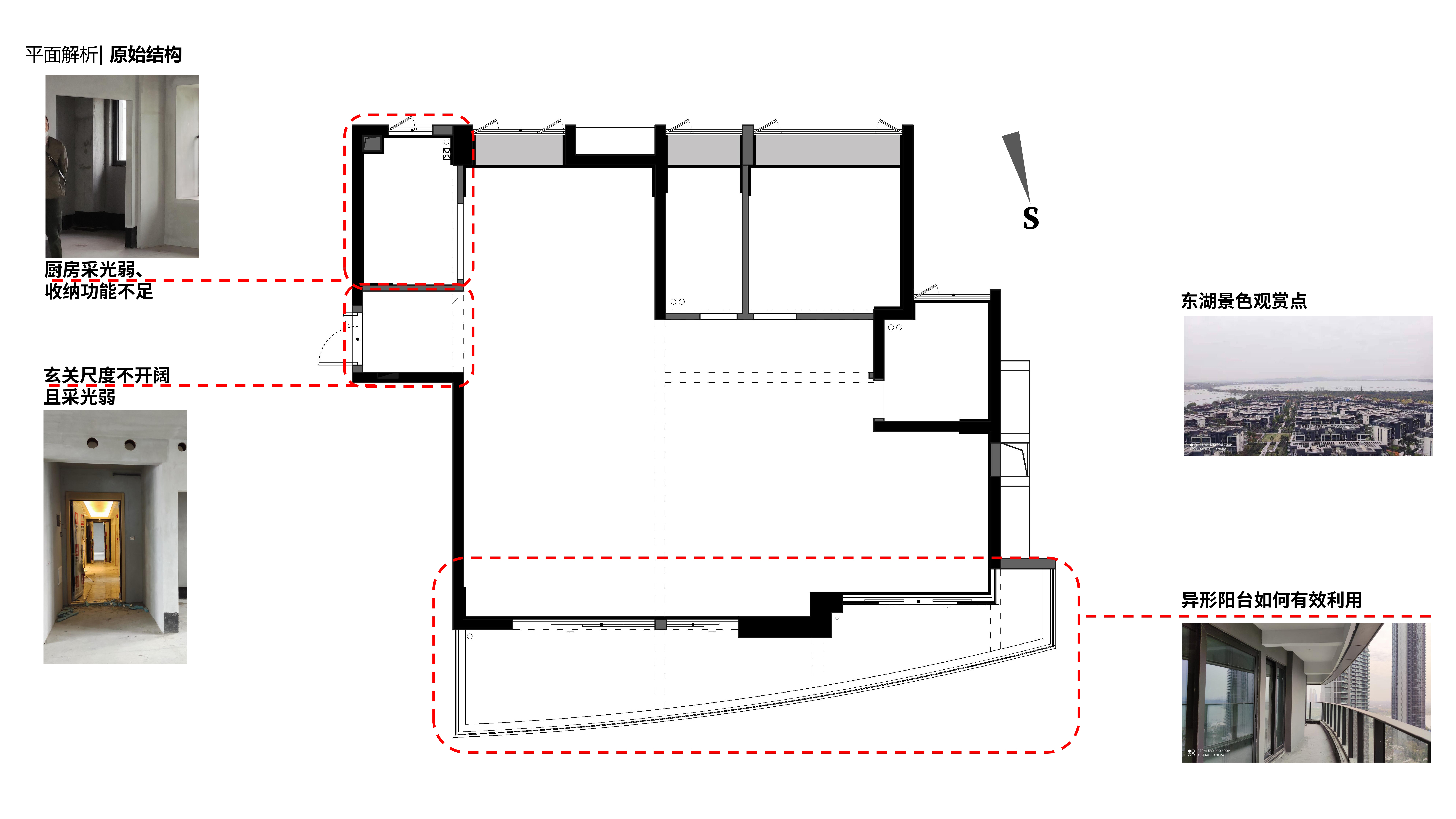 原始的户型结构很常规.入户门厅和厨房的空间都被切割成小方块,缺少湖景房该有的开阔视野。我们将所有的空间解构拆分,极大可能地引入光和湖景,打造一番静谧平和的居住体验。