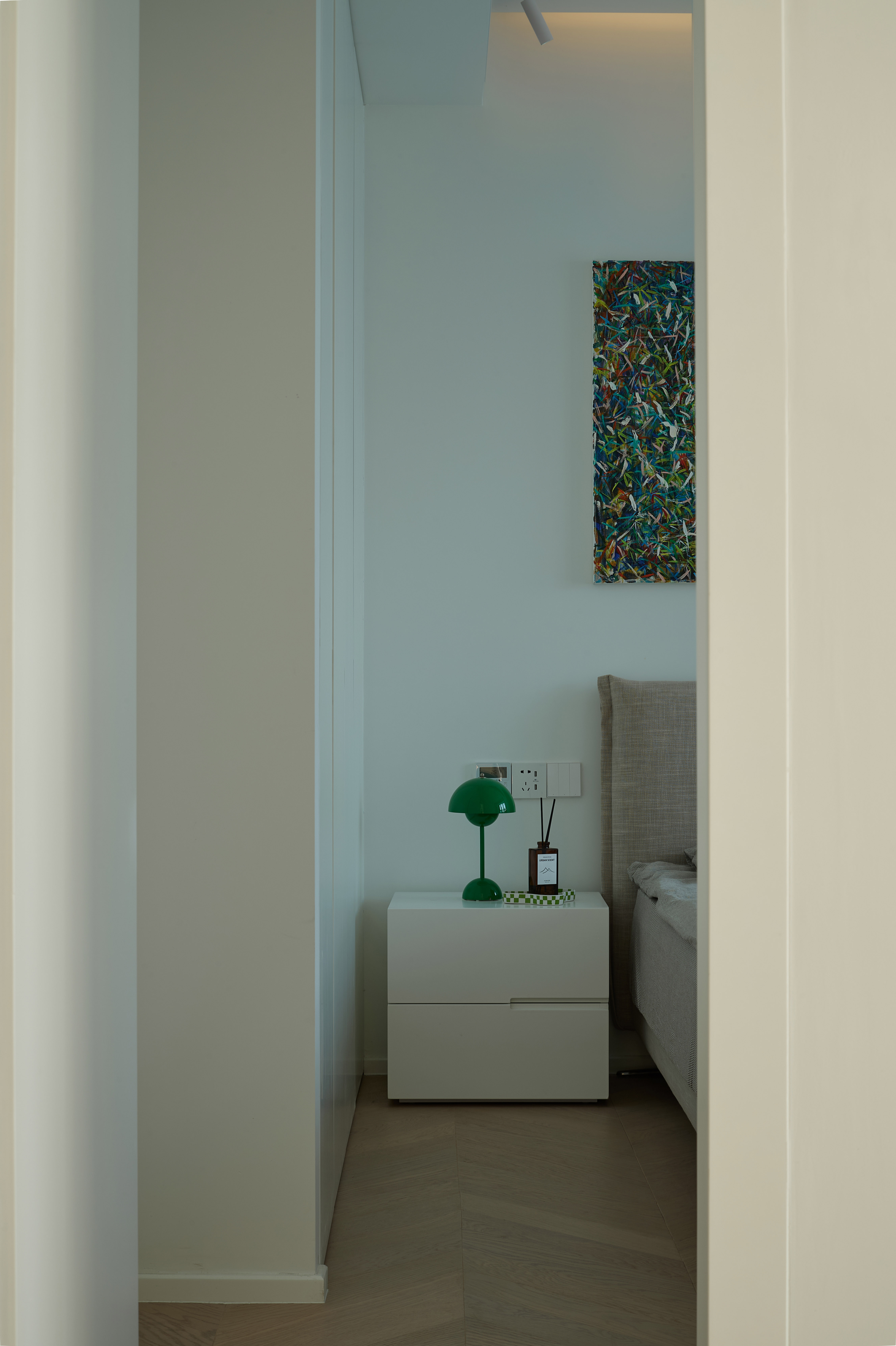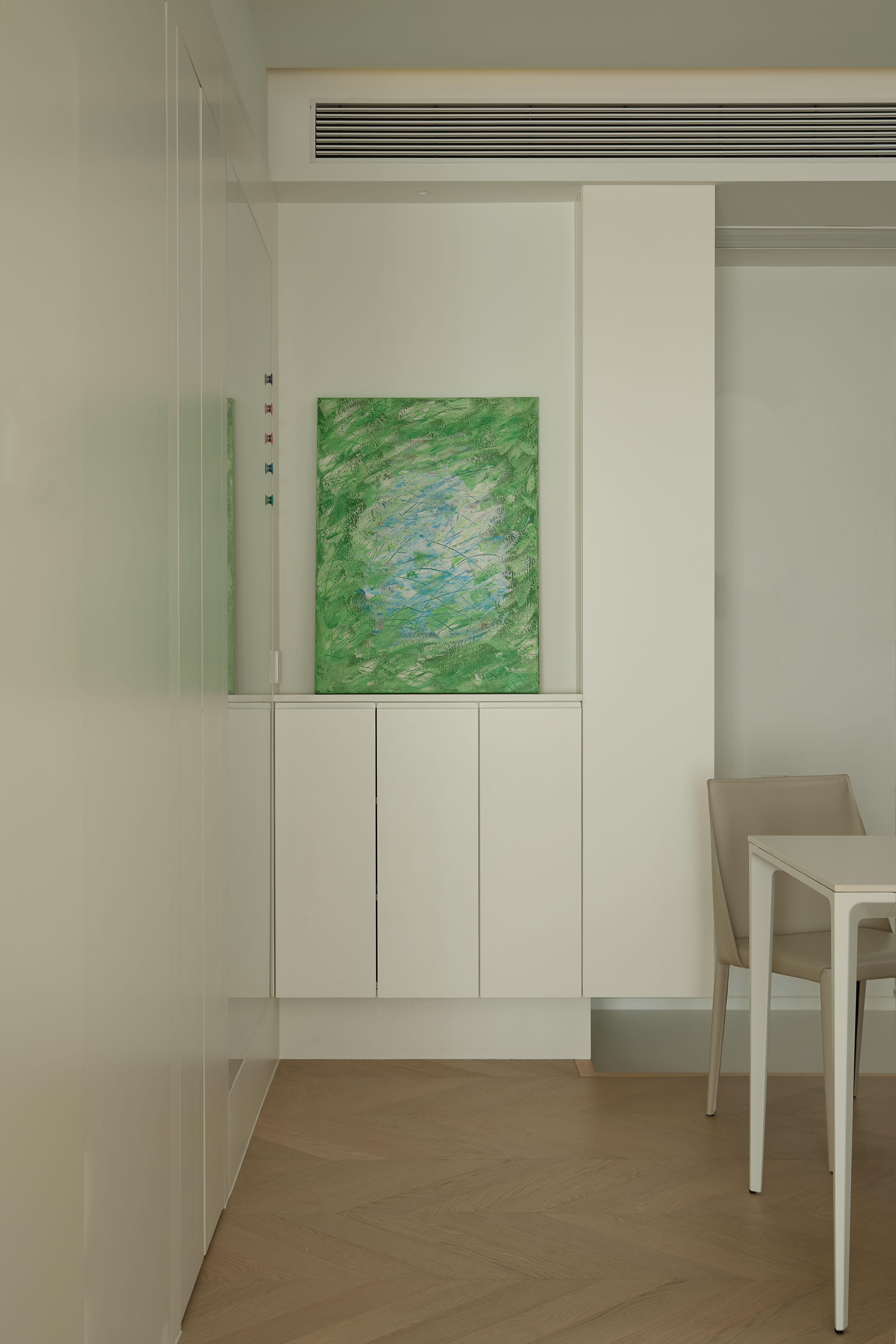 空调风口用的极简形式,所有灯用了预埋形式,柜子做了无柜套形式,所有极简的方式都需要高强度的工艺支撑,并且对于细节比例的把控要求极高