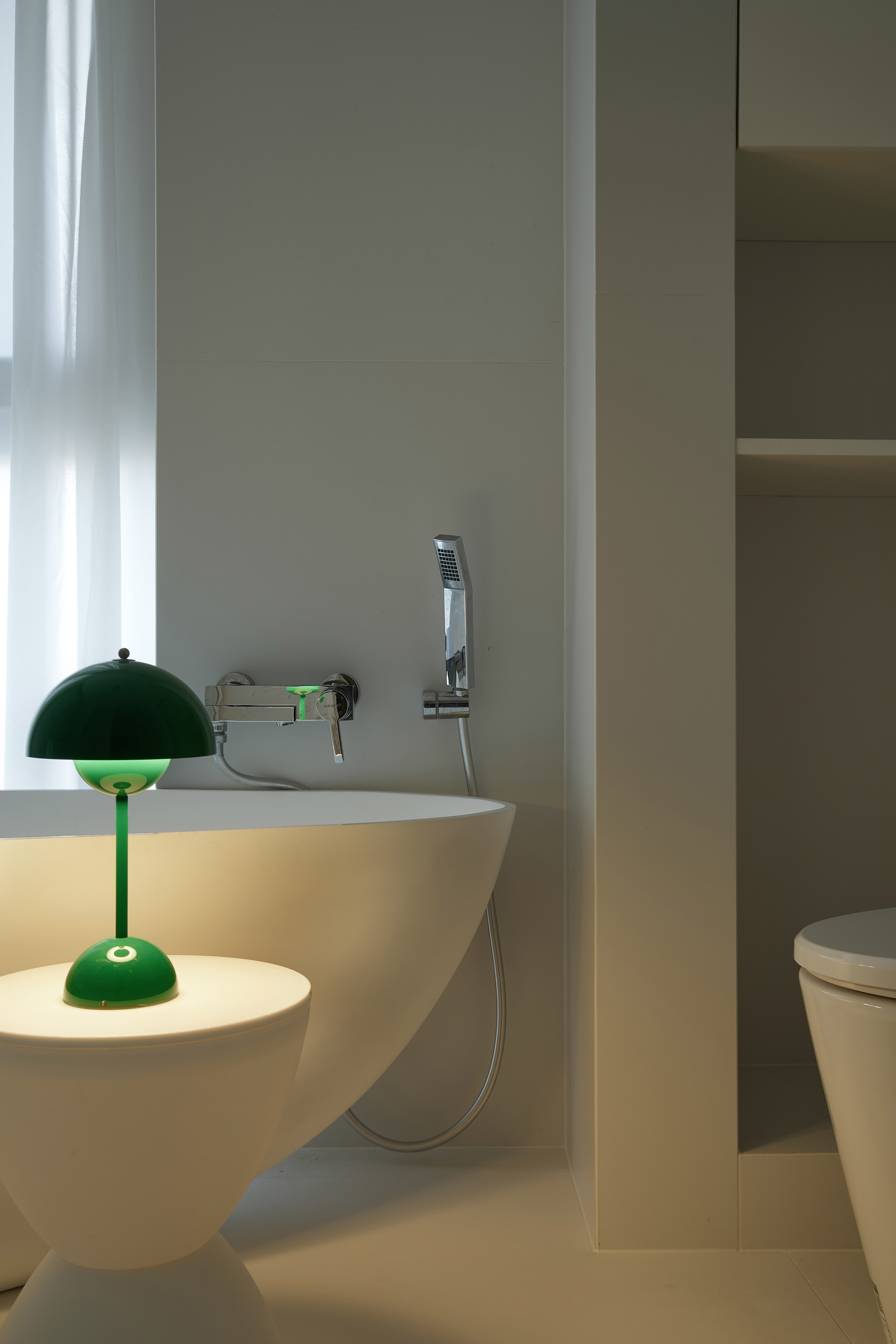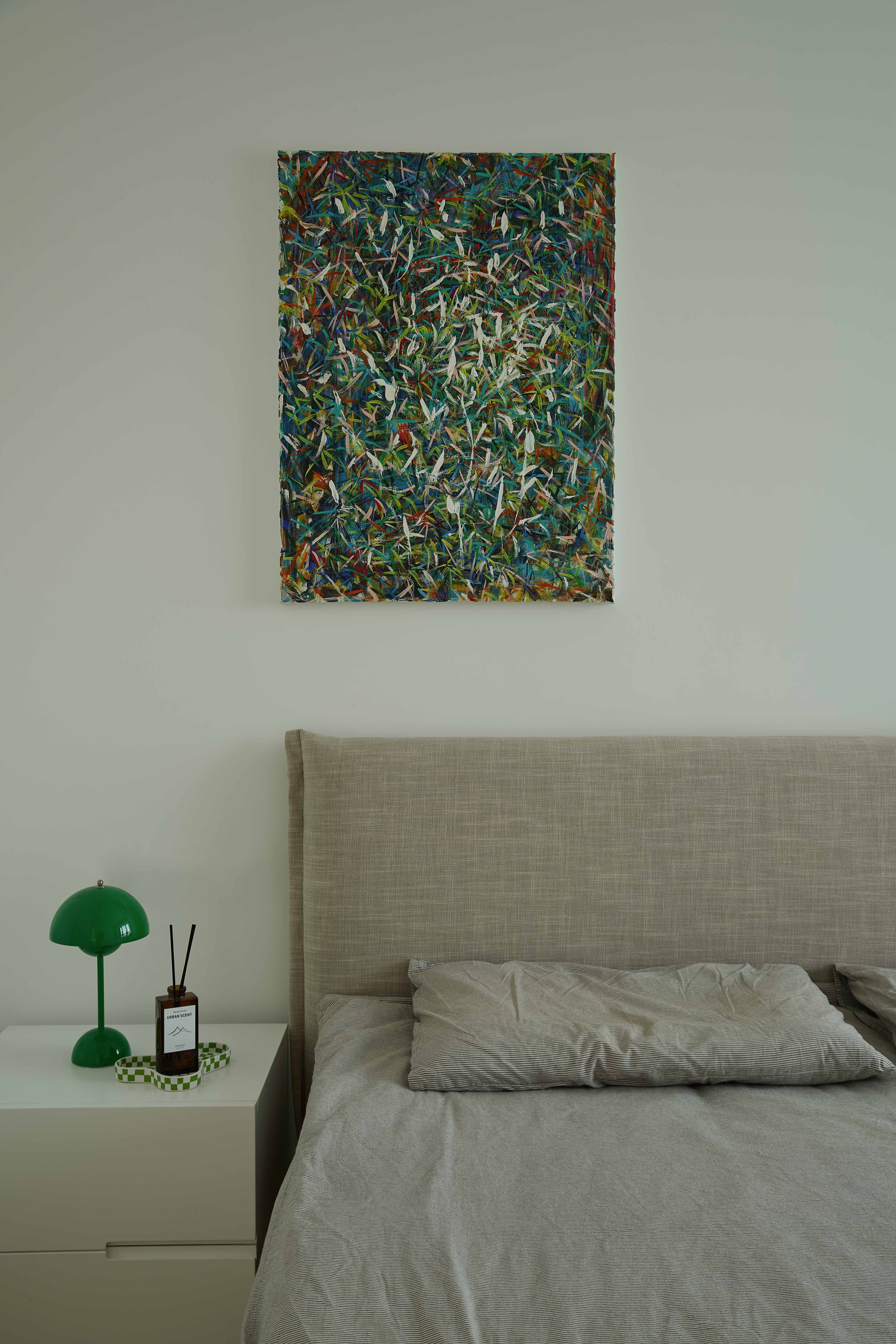 绿色作为空间的跳色,来跳了跳,又能保护视力,进门绿色小人迎接着,浴室柜台面用了一体人造石,这里划重点下水需要倾斜度及不做对拼,要一体的,不然下不去水,对拼处易变色