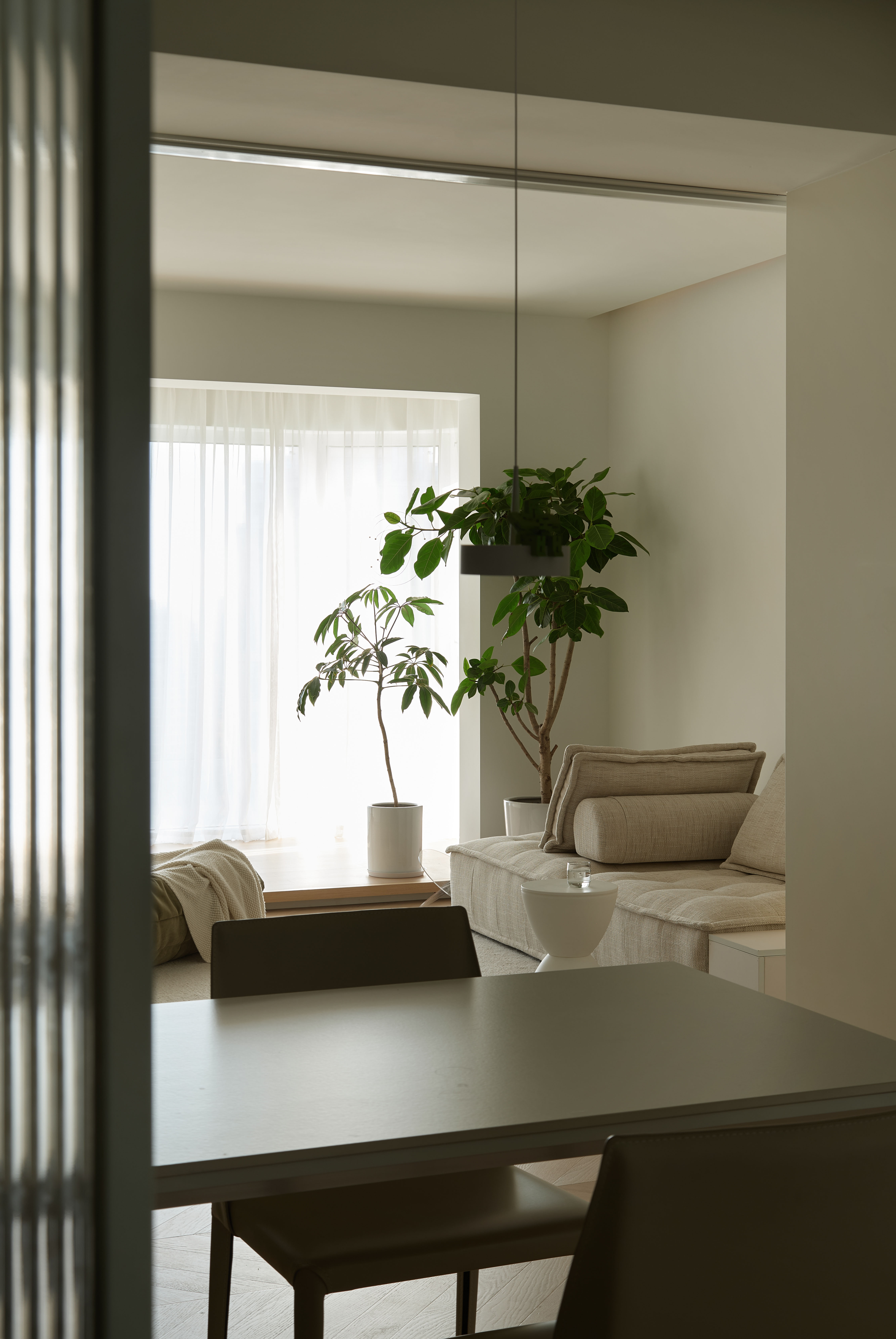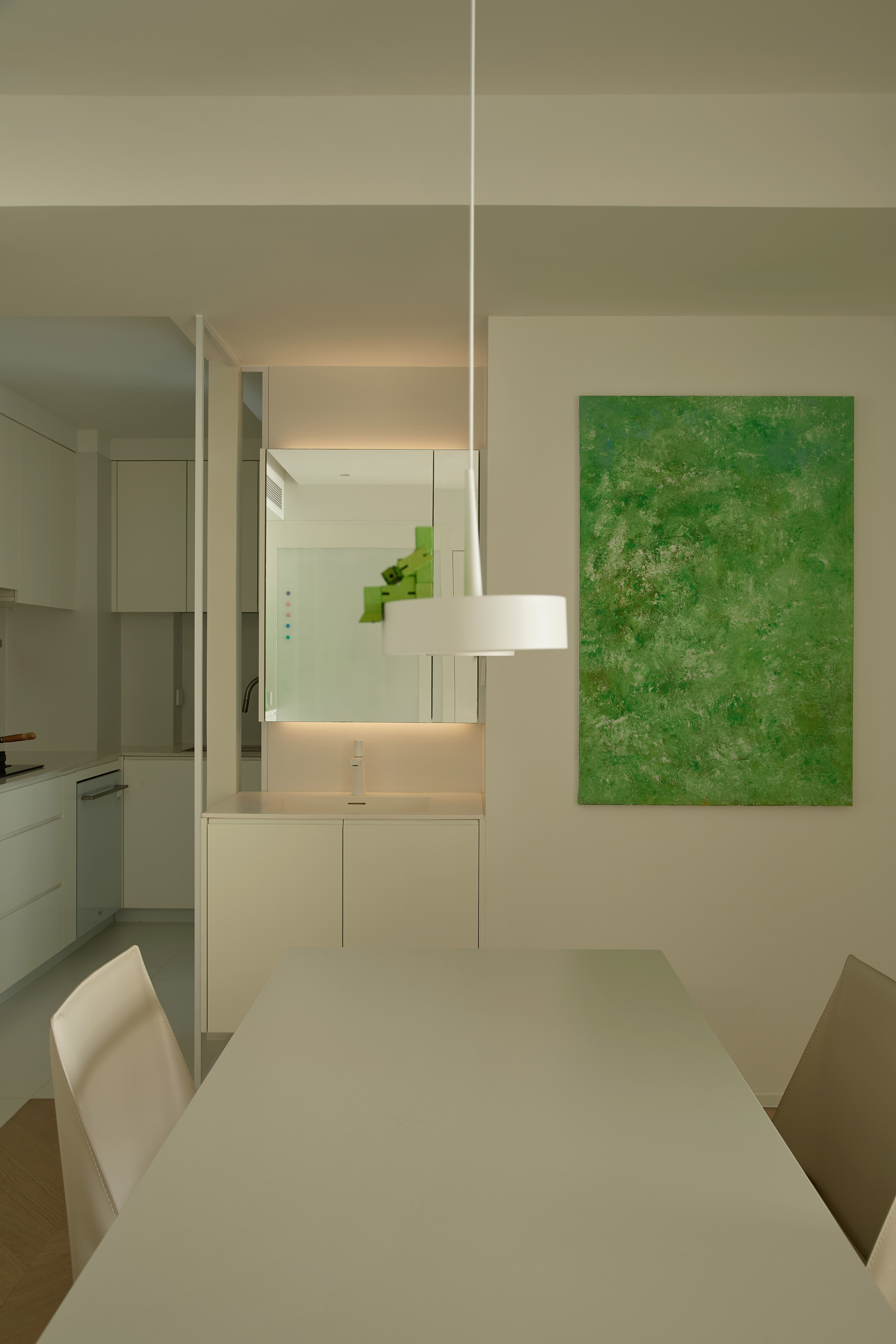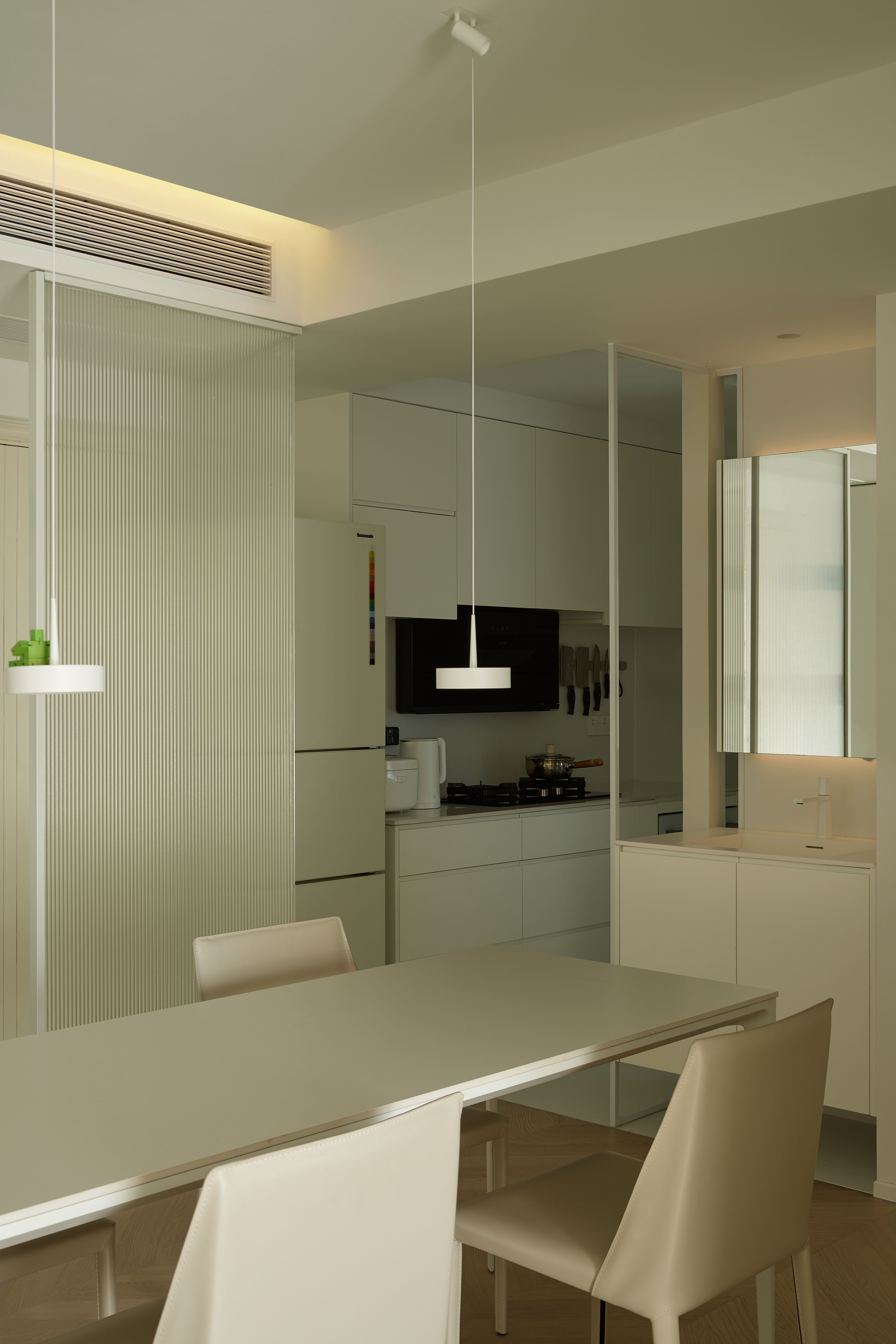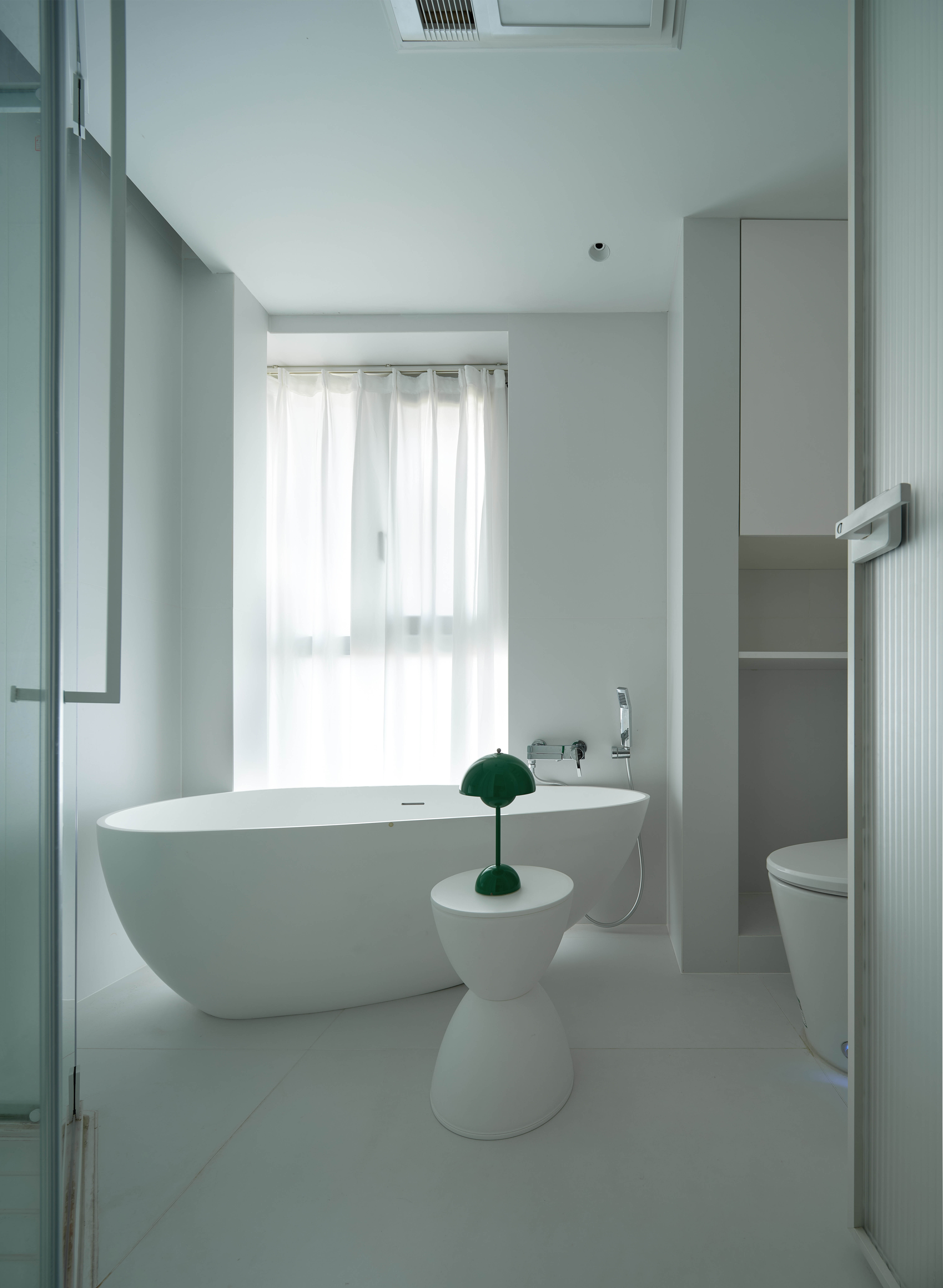 颜色做了尽量的统一,地砖,乳胶,木作,铝合金,石材及其它关于白的颜色,每个的选择都得彼此对照,白色真的是个很微妙的颜色