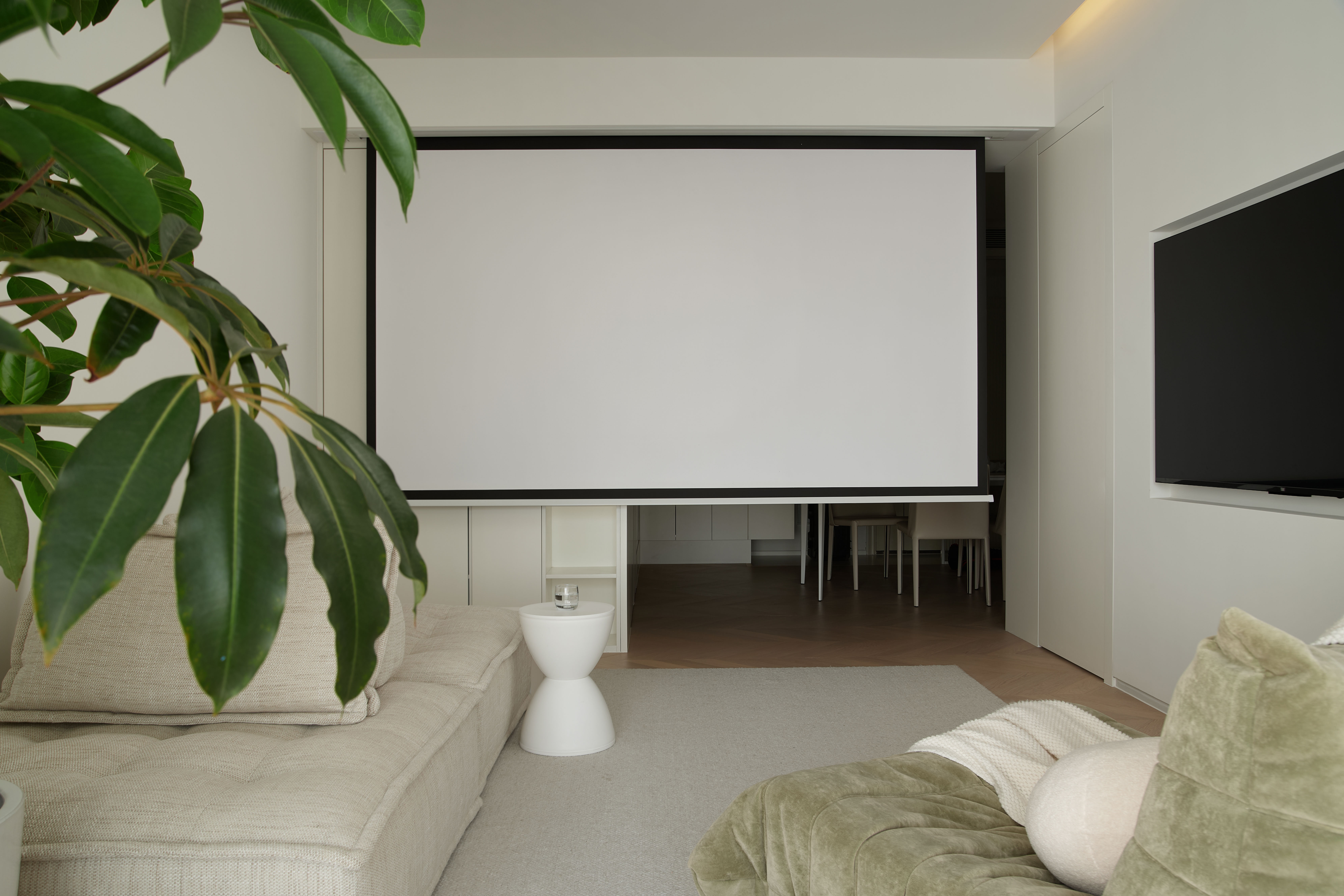 客厅的侧面顶,预埋了120寸的投影幕布,可以开启观影模式