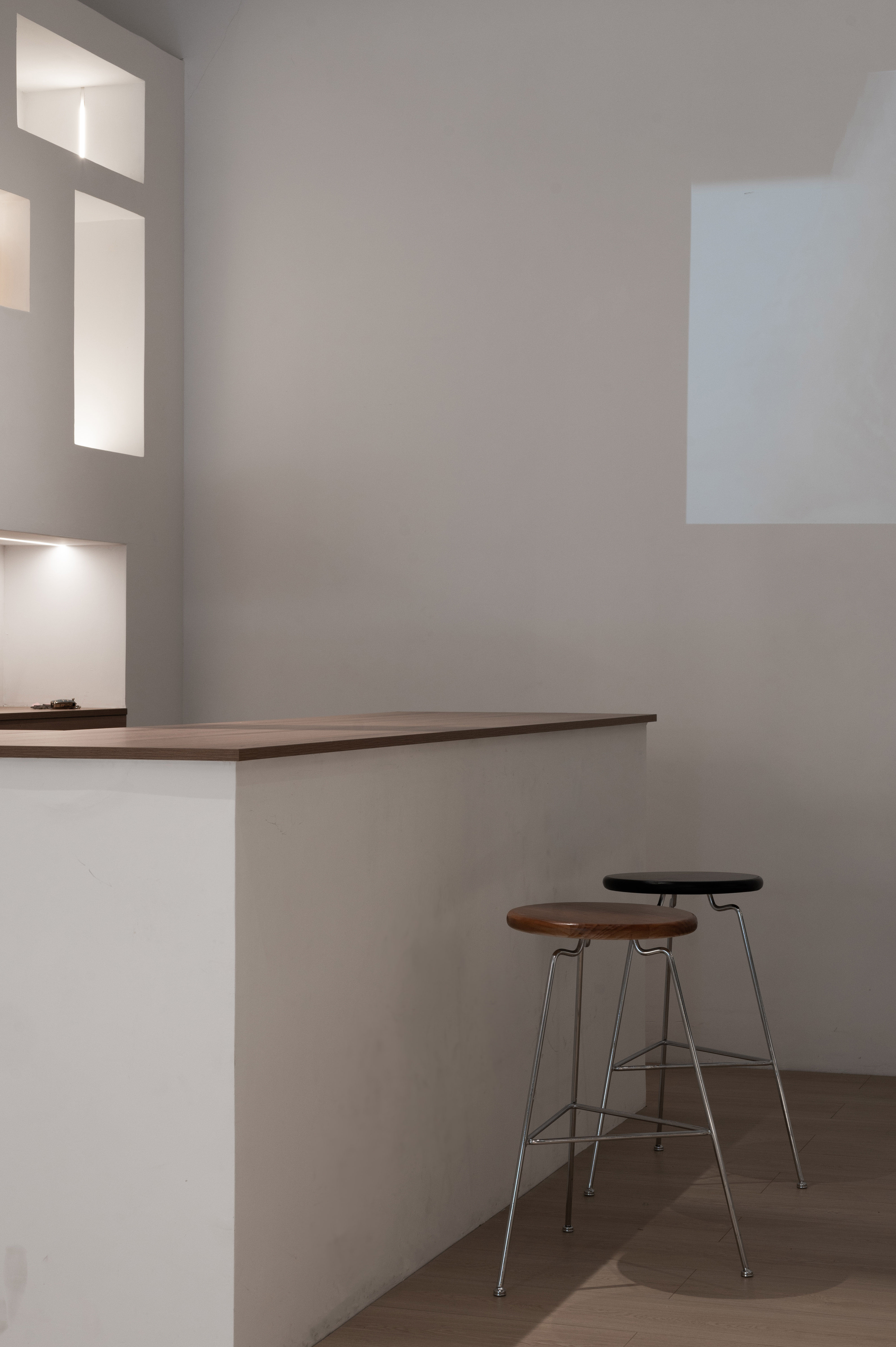 波纹不锈钢做了组柜子,左右产生了两条动线,带来了实用性与空间的趣味性。