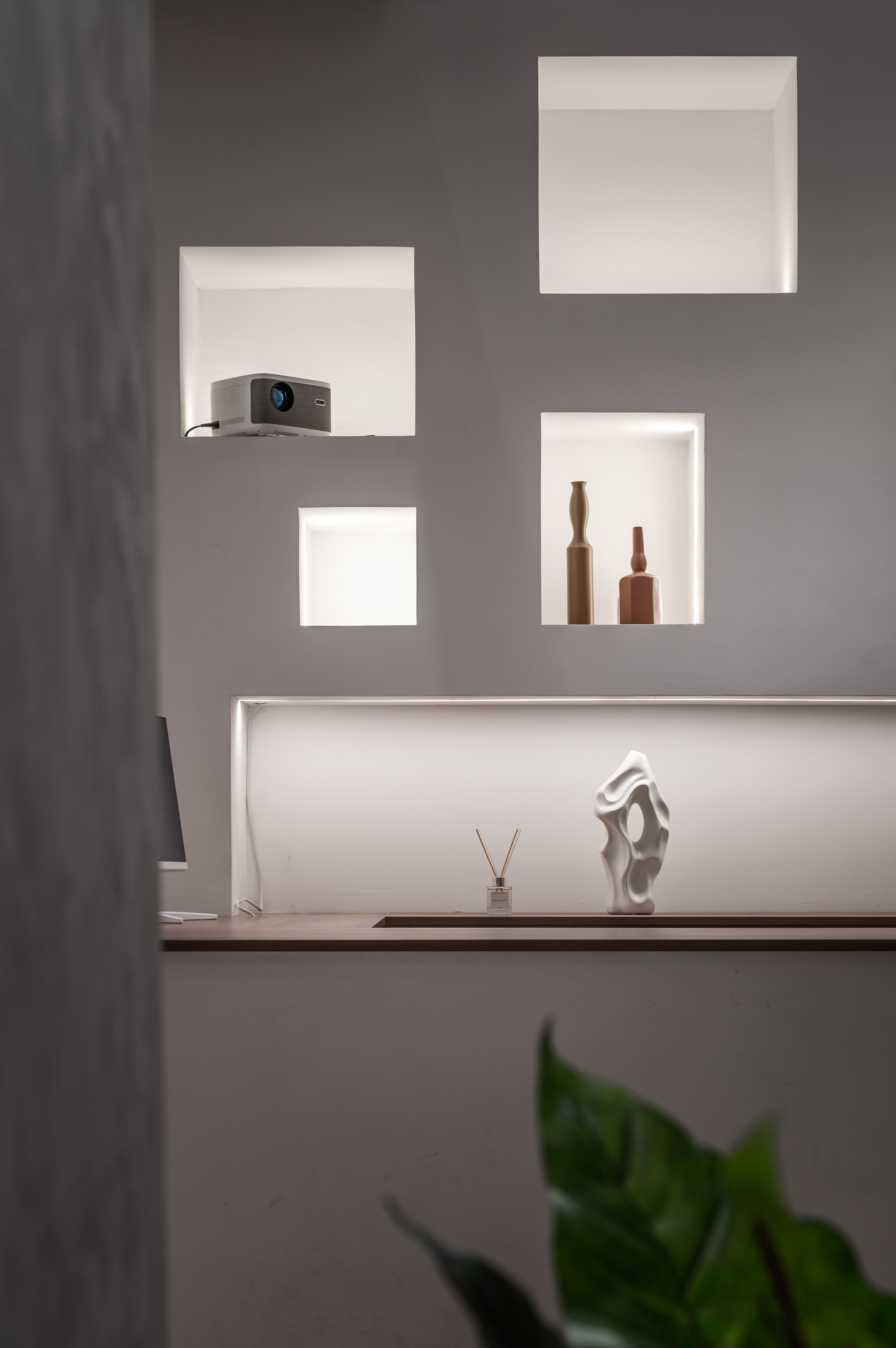 壁龛的发光线灯的位置我们也是不规则的设计,带来更多的层次。