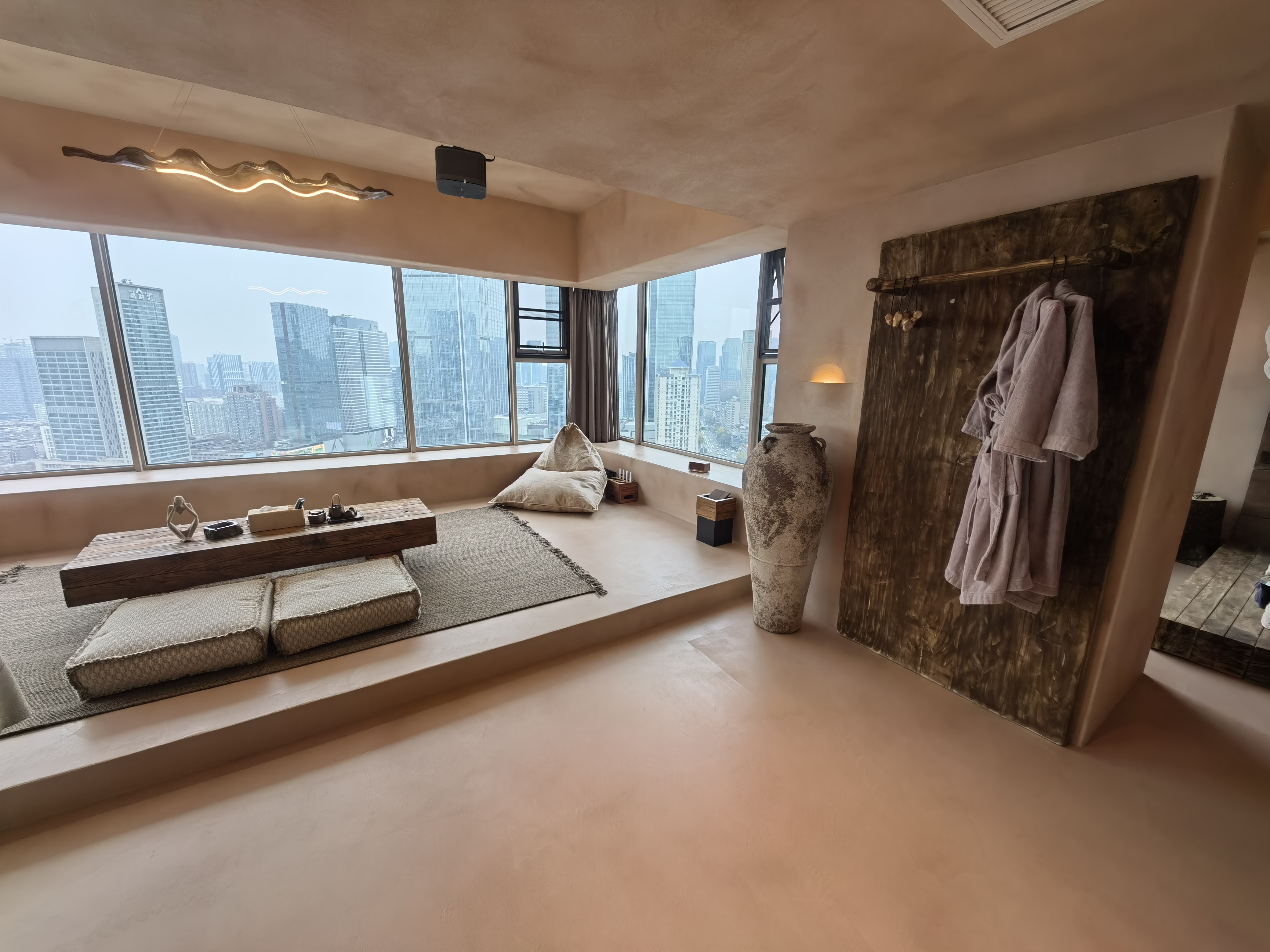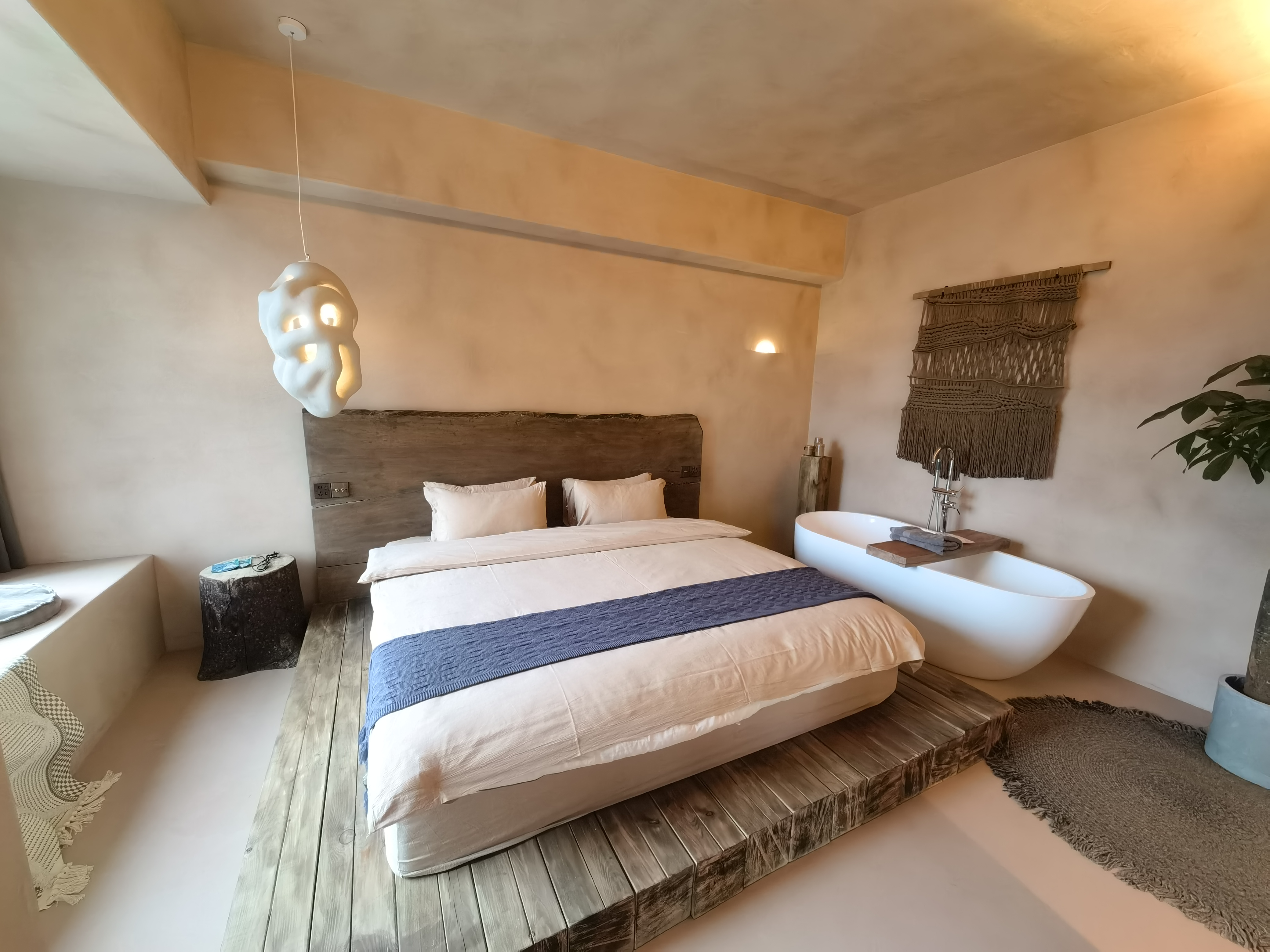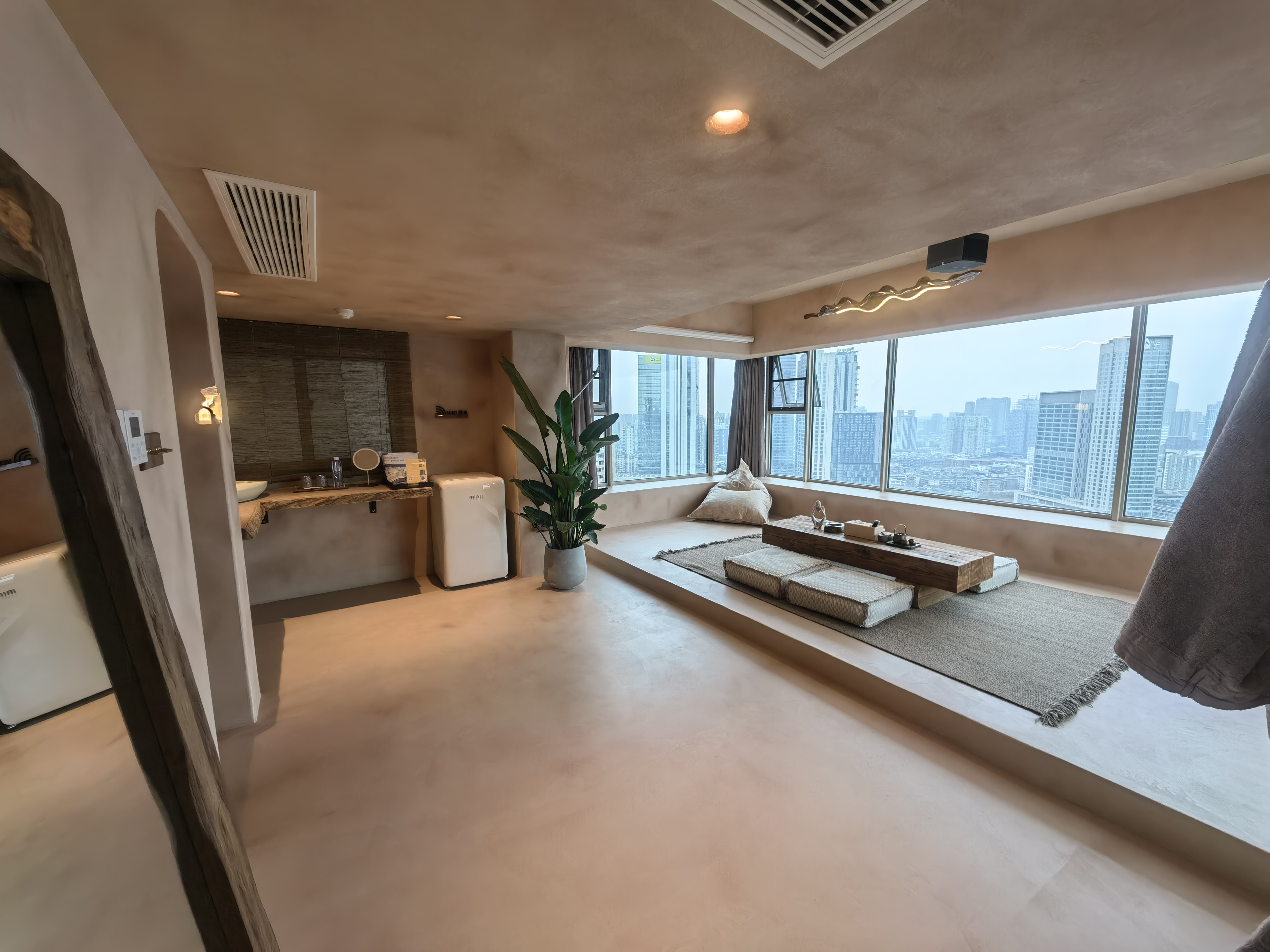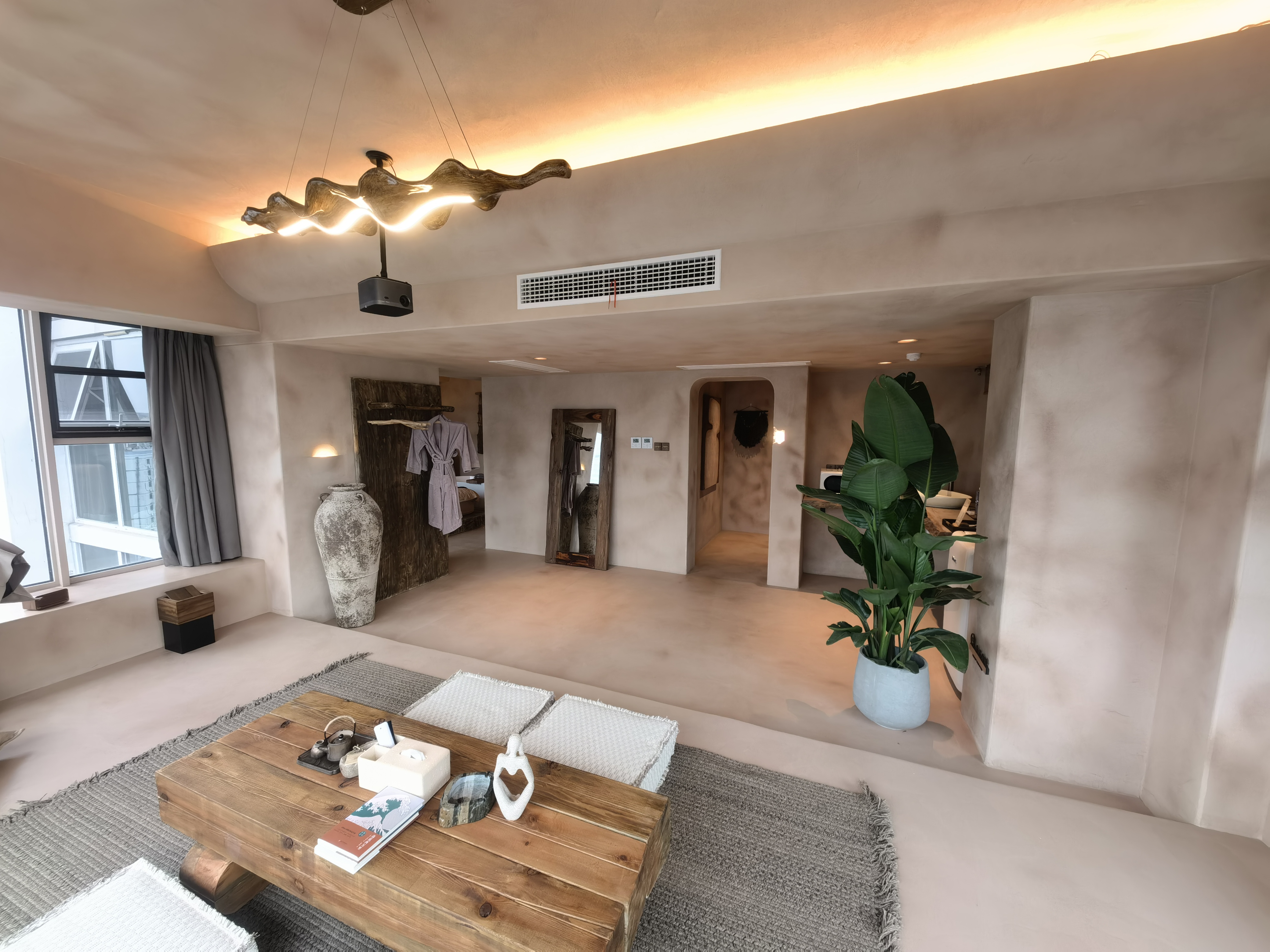 上线以后深受广大好评,独特的墙面机理颜色,原木的质感,高级舒适的床品都给客人很舒服的入住体验感!