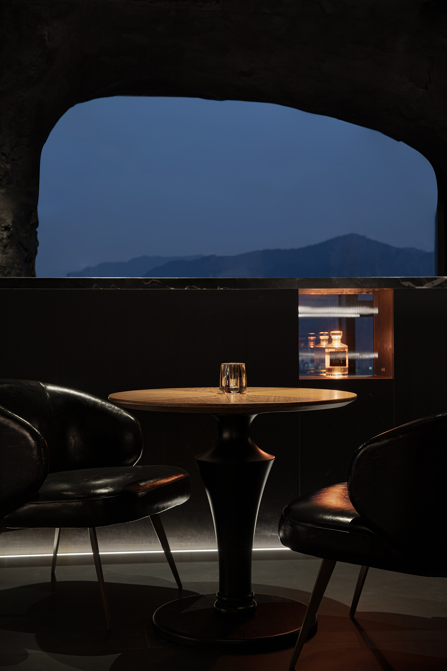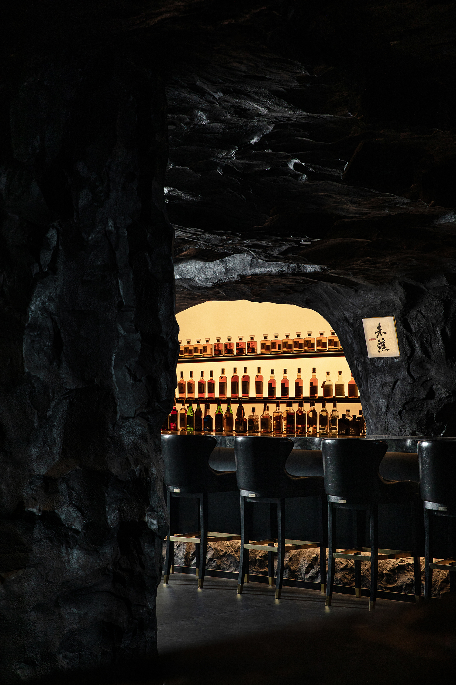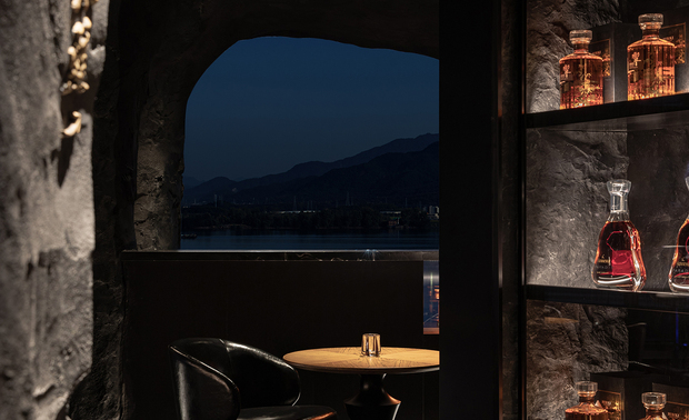项目定位:在这城市属性强烈的氛围里,以艺术的角度探寻自然,觅得一处避世。四季未醺身处林立高楼,俯瞰富春江畔。追溯山水之境的本质,将自然延伸室内,创造内外交融的独特感官。未经打磨的山石,可以和空间、人之情感产生怎样的共振? 在「未醺」,这些问题是呈现,亦是答案。山石,自然无序,其代表的“原始世界”: 演绎着生命力进化。设计以其背后所映射的自然本质为契机展开,亦是对原始肌理的一次回望。