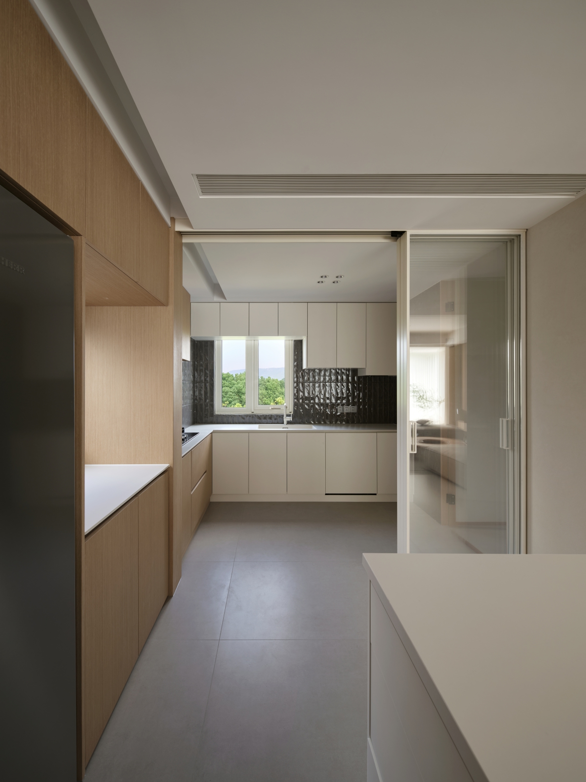 将空间深处留给中厨,把日常清洁的场景置入边侧,释放其他空间的活动尺度,解锁小空间高利用率。