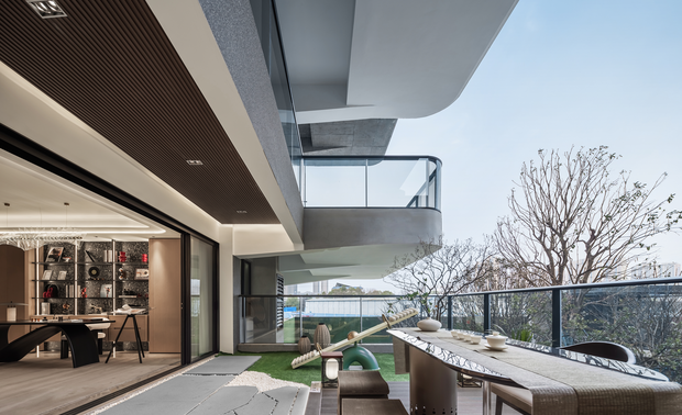 自然而不可复现,弧形艺术感手法,和合有趣。流动的线条,萃取其形而上,与直觉意趣共鸣。多重宇宙,时光错置,赋予空间耳目一新的呈现。由此及彼,由细微到浩瀚,从现实到虚拟,银河白色基调之上,辅以金色为点缀,在穿插与衔接中,打造一座“无形的太空岛”,限时开启一场神秘的星际漫游。 -