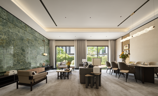 驻足、行走,线条的穿行、凹凸描绘出整个洽谈区空间的动态「洄游」,仿若千变万化的流动云体,丰富了感官与知觉,不仅划分出了酒吧区与休息空间功能,更令空间动线的合理。简洁流动的线条,不同材质的碰撞,千回百转间营造出自然艺术的氛围,宇宙的自然意象幻化成设计语言,入梦、探索、诗意,将时光穿梭的仪式感拉满。 -
