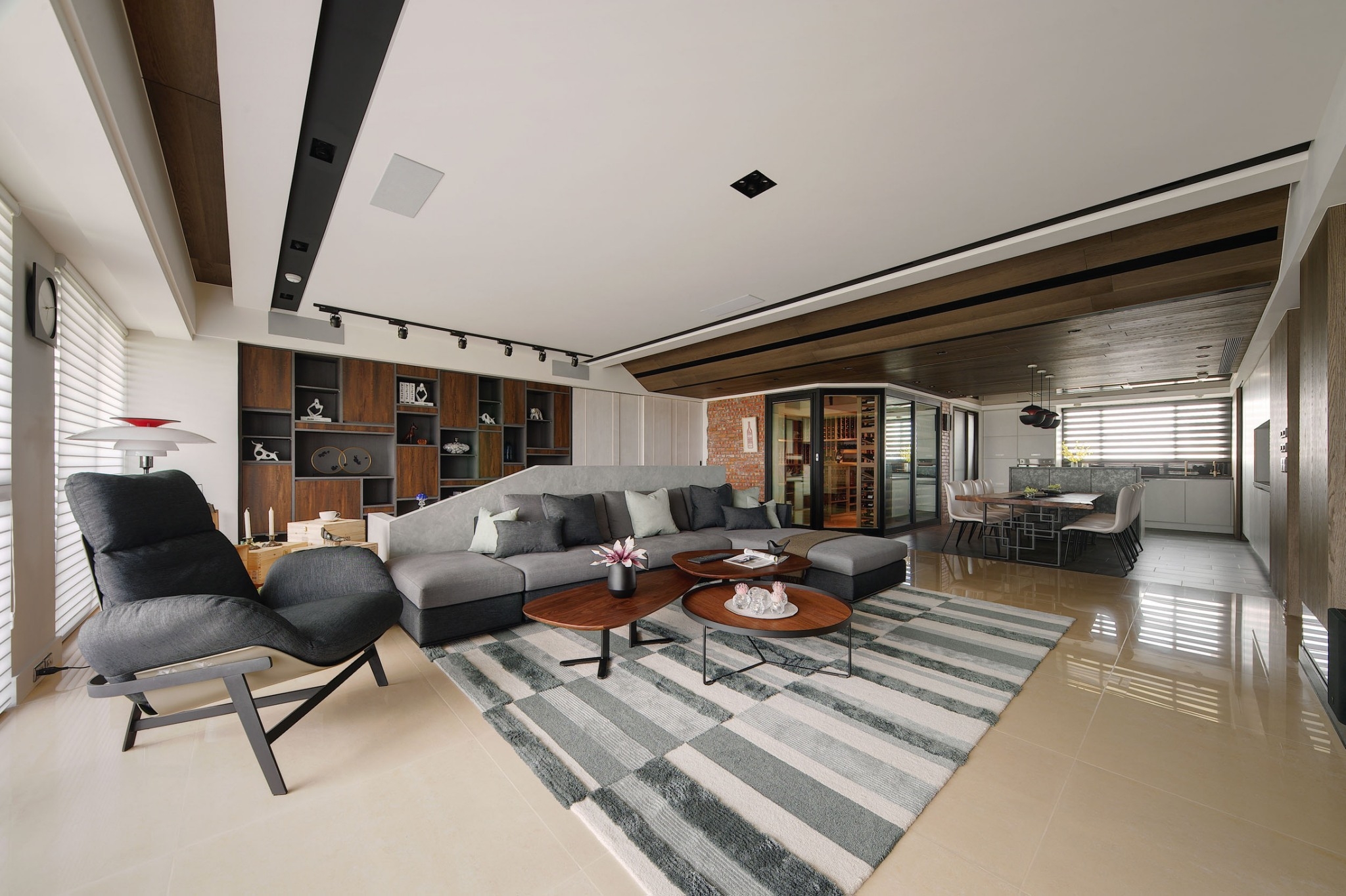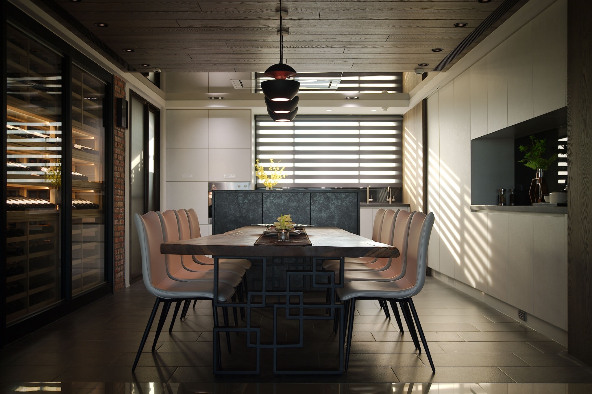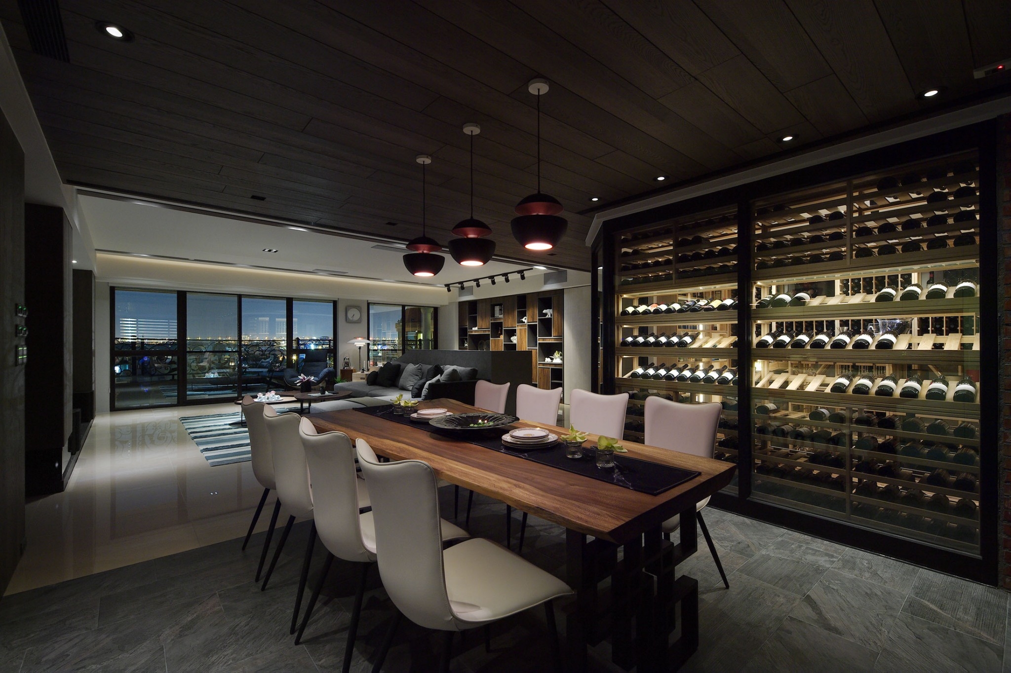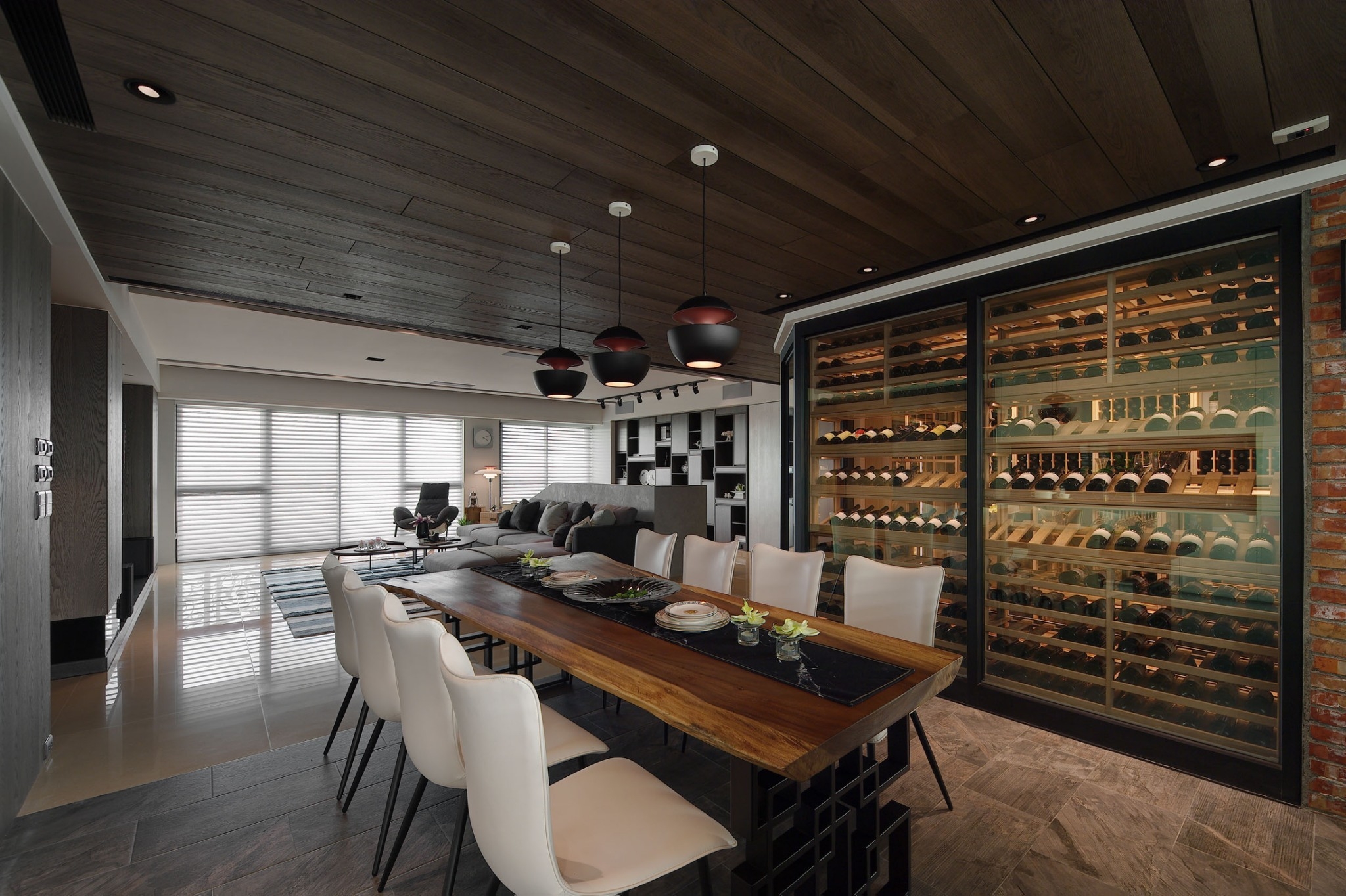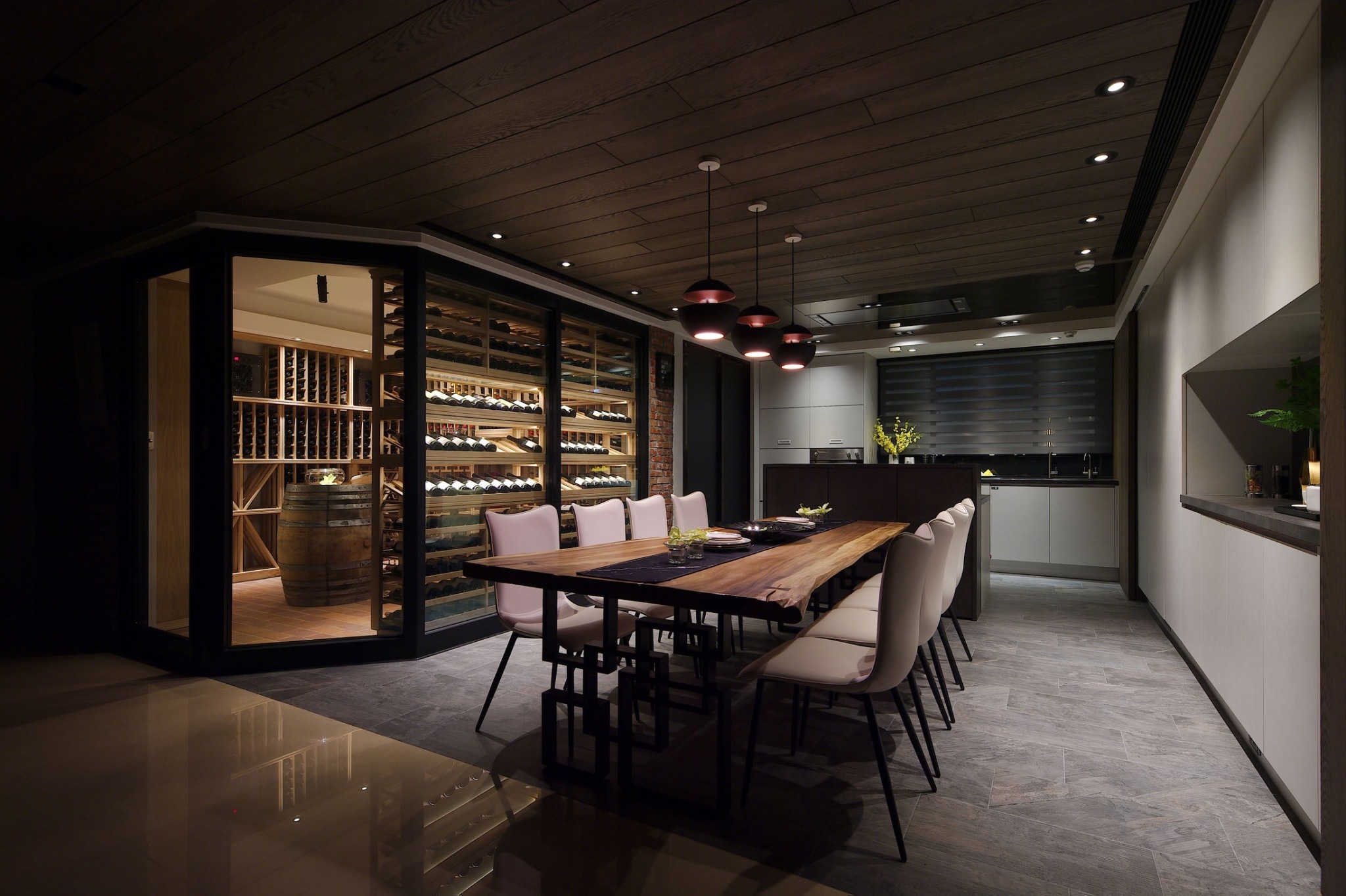 空间布局:整個開放式大公領域裡,圍繞主軸就是餐區的酒窖展示空間。在任何時候有品酒需求,都能恣意隨性在公領域任一個角落,小酌怡情或歡暢盡性,伴隨生活日常漸進,品味分秒時光。