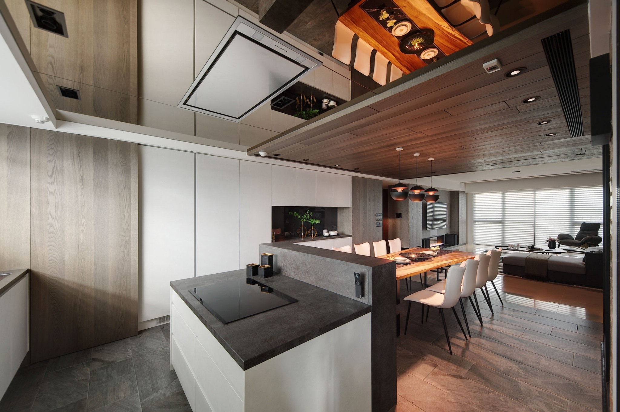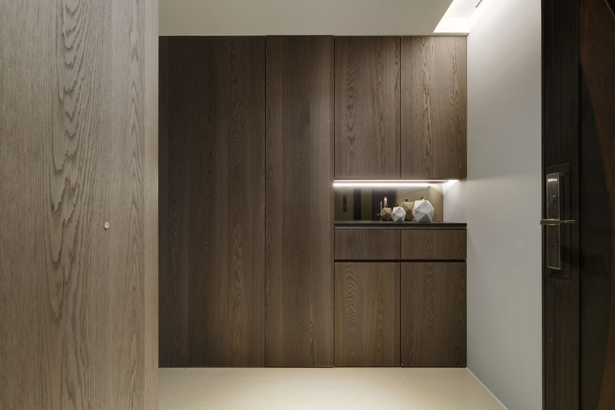项目定位:業主是丹麥人,強調期望將Hygge精神帶入空間,在一個具有現代底色和簡單的空間裡,開放式公共領域裡,令人醉心的就是餐區的酒窖展示空間,微妙而平衡的光影增強了空間中自然材料的美感,創造了感性與感官之間的空間平衡,營造擁抱生活的可能性。