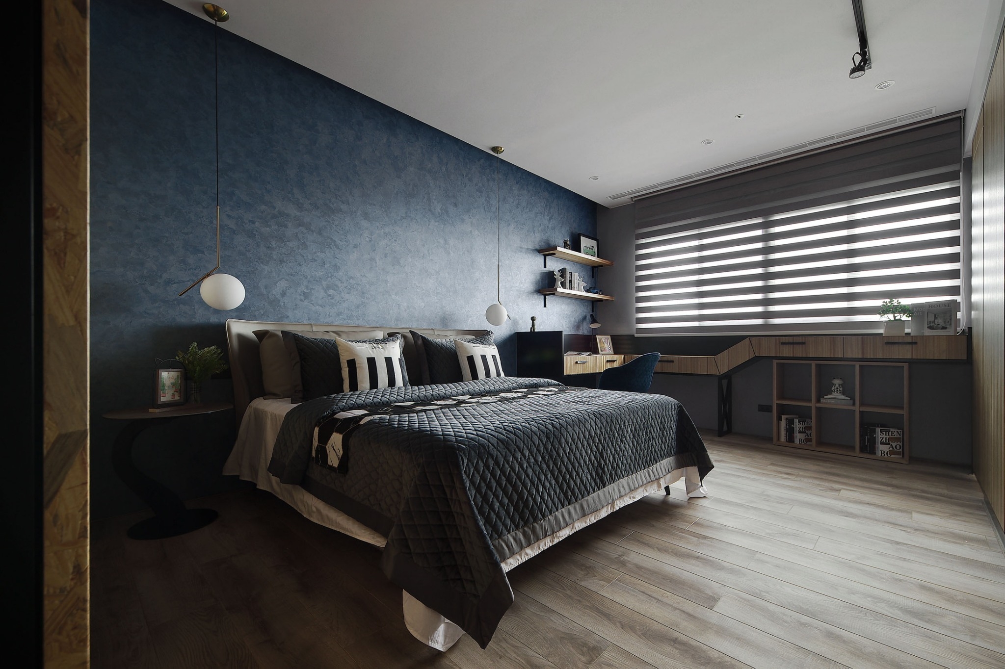 空间布局:空間以山水為情境揮灑,突破材質與形式的局限,現代與多重東方情調的自然和諧,完整構築符合都會生活的東方審美。潑墨山水與風格強烈的墨白紋理石材如水墨色潑灑於其中,保留動人景物及環繞空間秩序生機勃勃的能量。