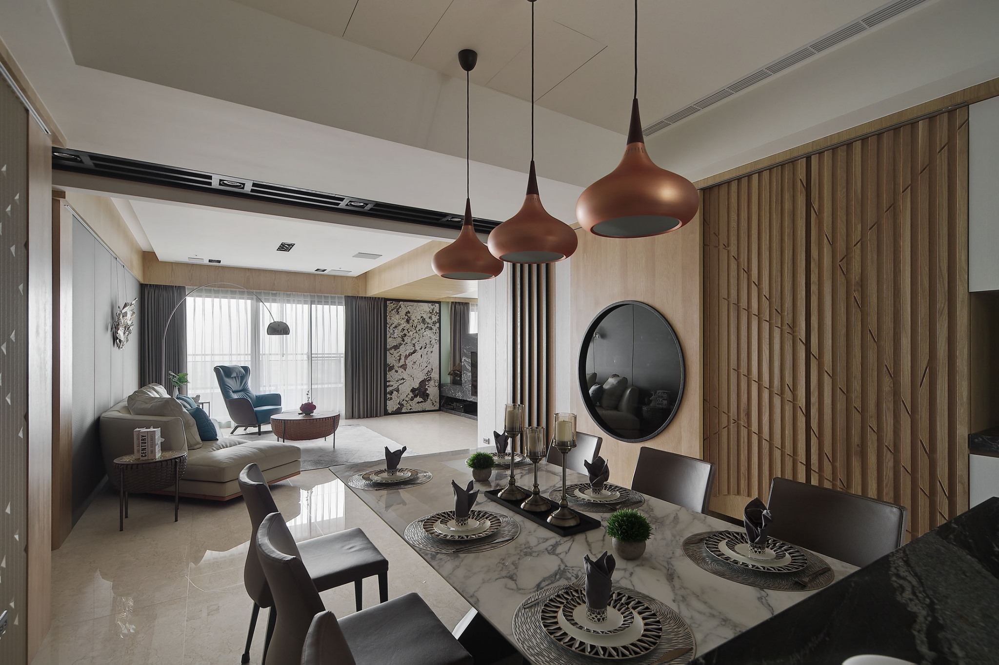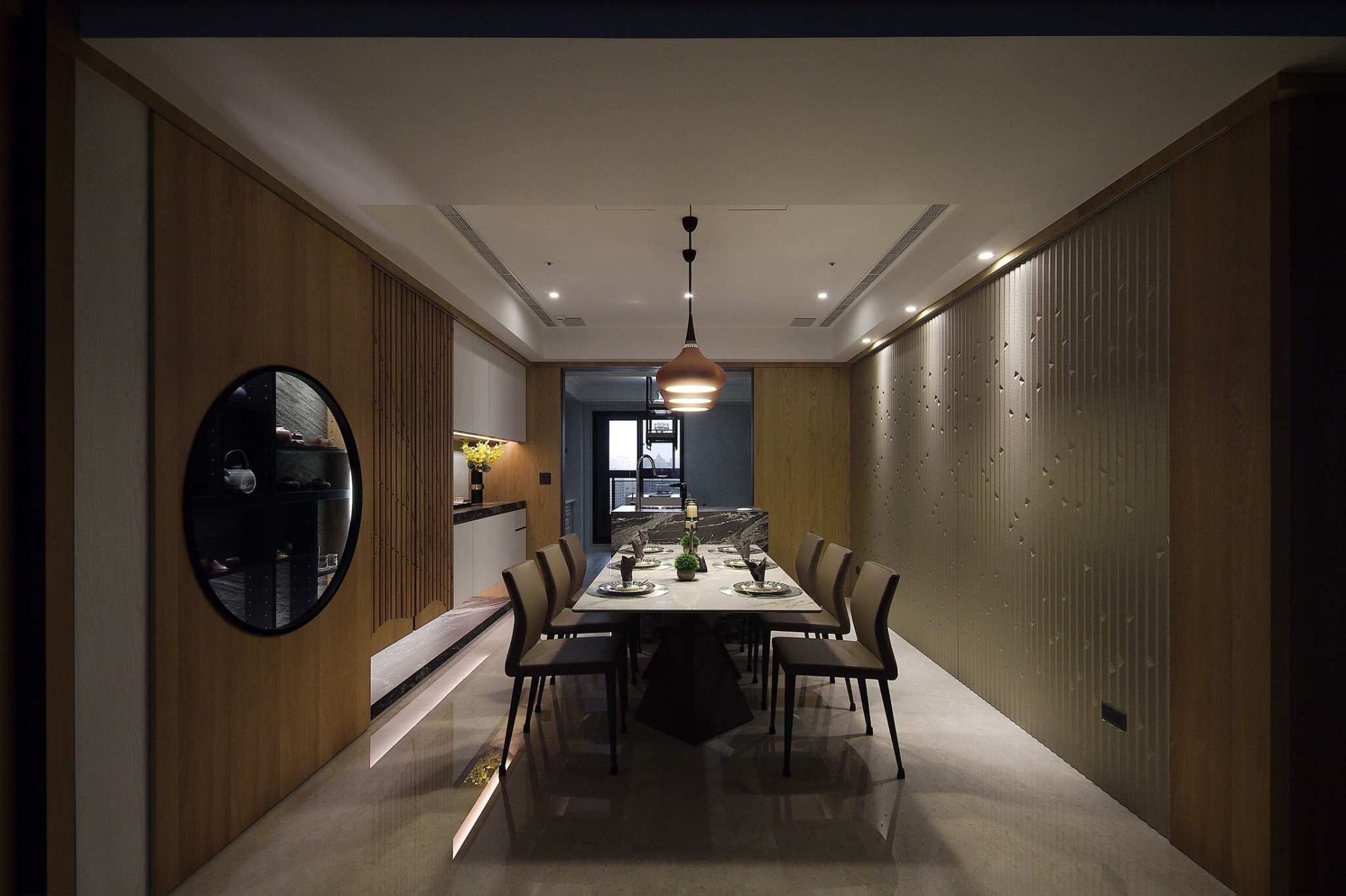 项目定位:從空間的天方地圓間,淡見山水竹林意象。緩緩將風格情感注入空間景貌,住宅以多重質材裝飾,序列出猶如層疊屏巒般的山水空間,輔以燈光帶出情境質感,圍塑出與自然和諧共存的家的氛圍。