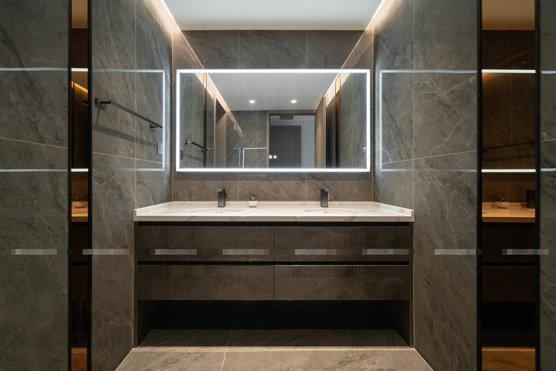 卫生间设置双台盆,满足同时使用;而且干湿分区,各尽其功能,互不干扰。