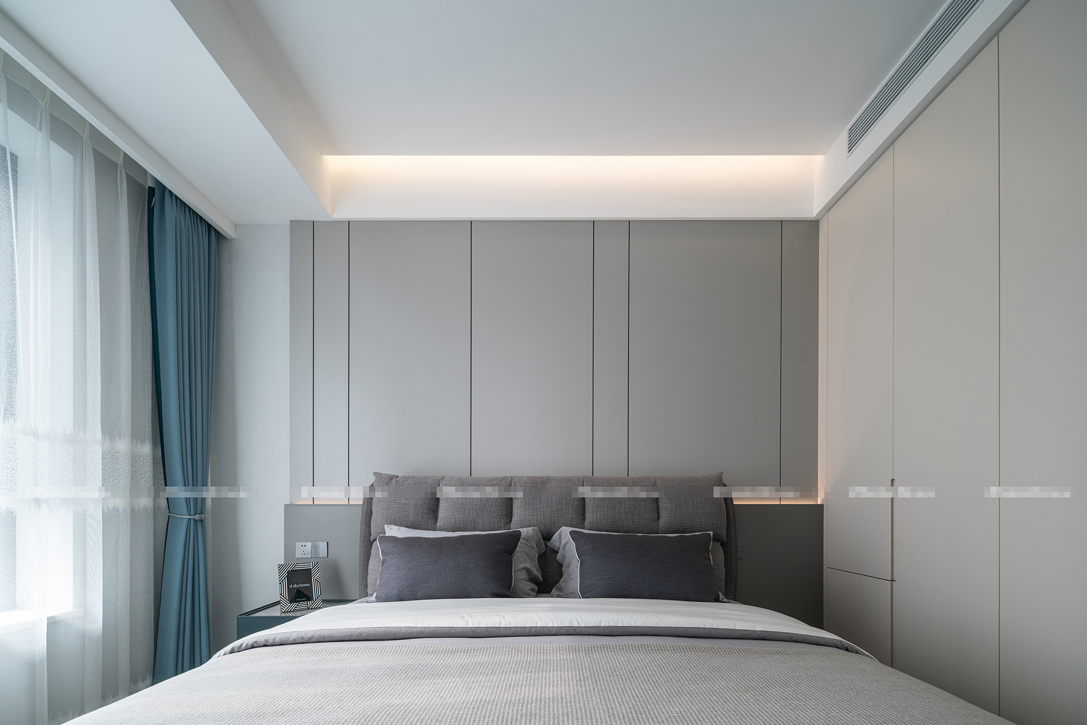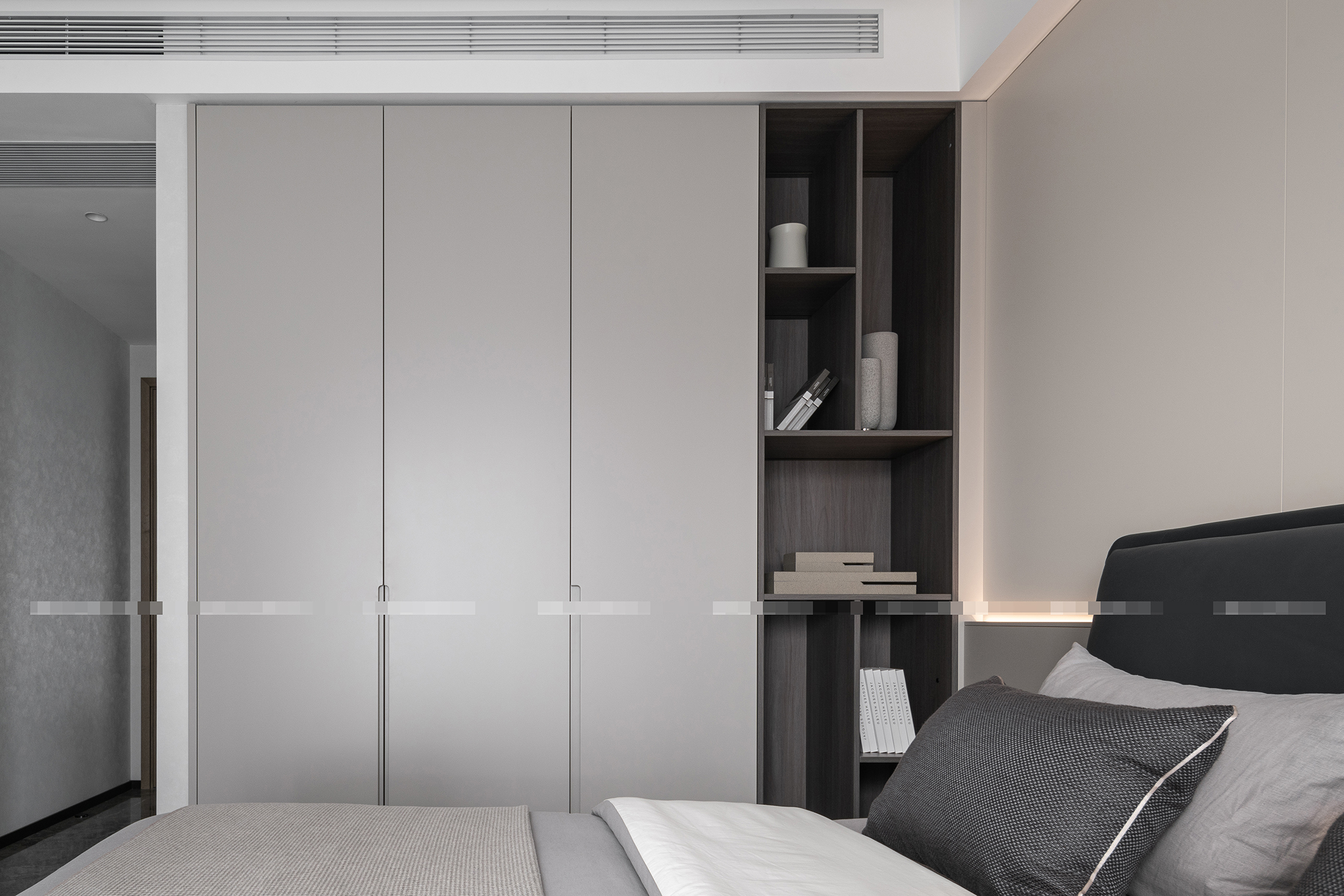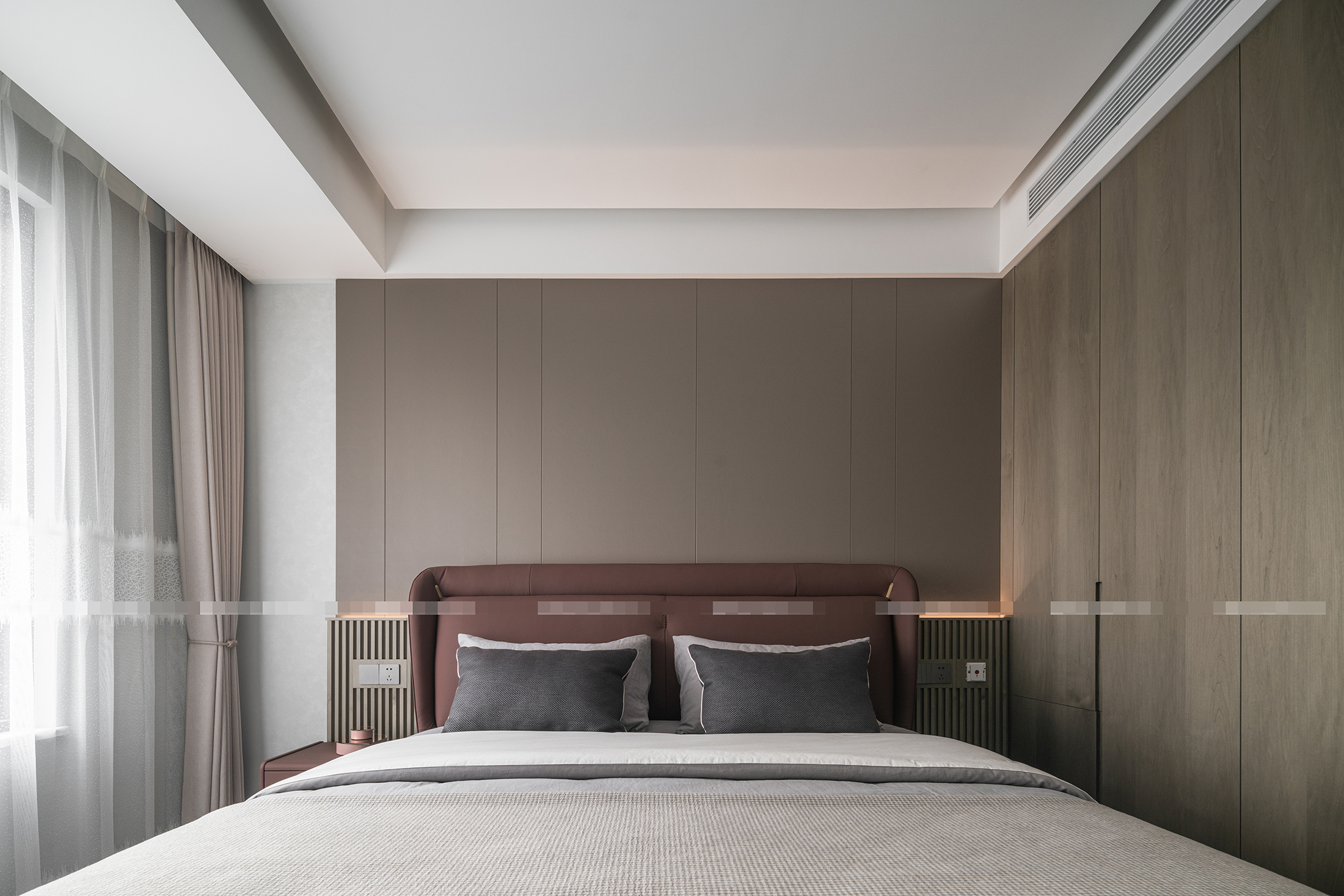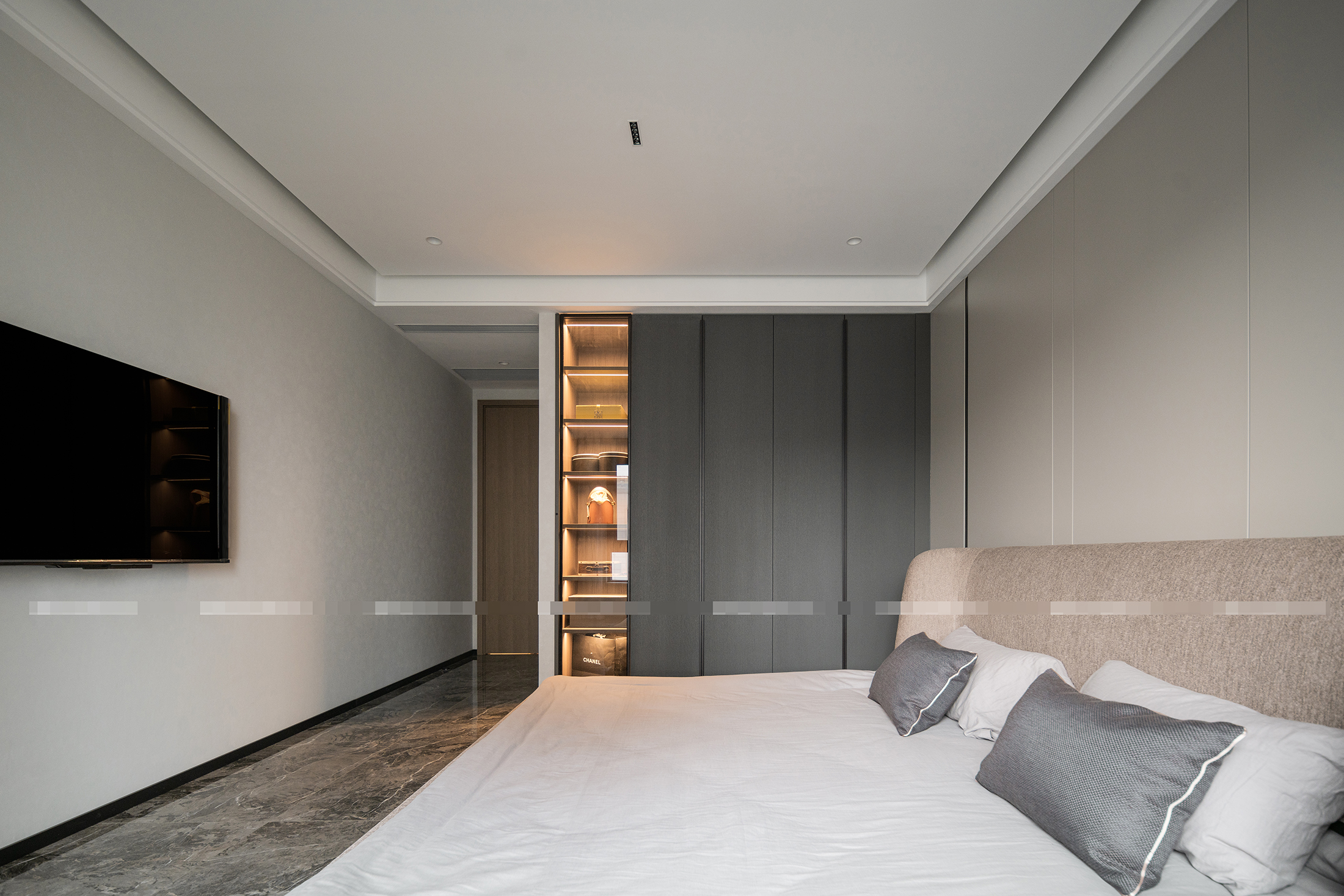 为了保证南向阳台的使用完整性,入口设计在卧室里,不仅避免了从中空开口而破坏掉复式的品质感和视觉效应;也为卧室增加了配套的自暇休闲场景,抬眼还能眺望南山景致。