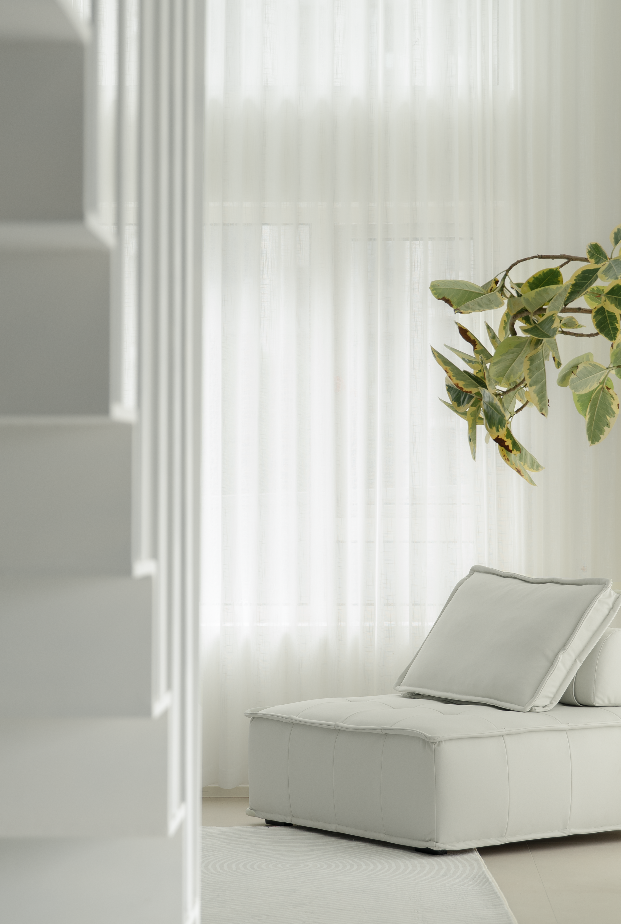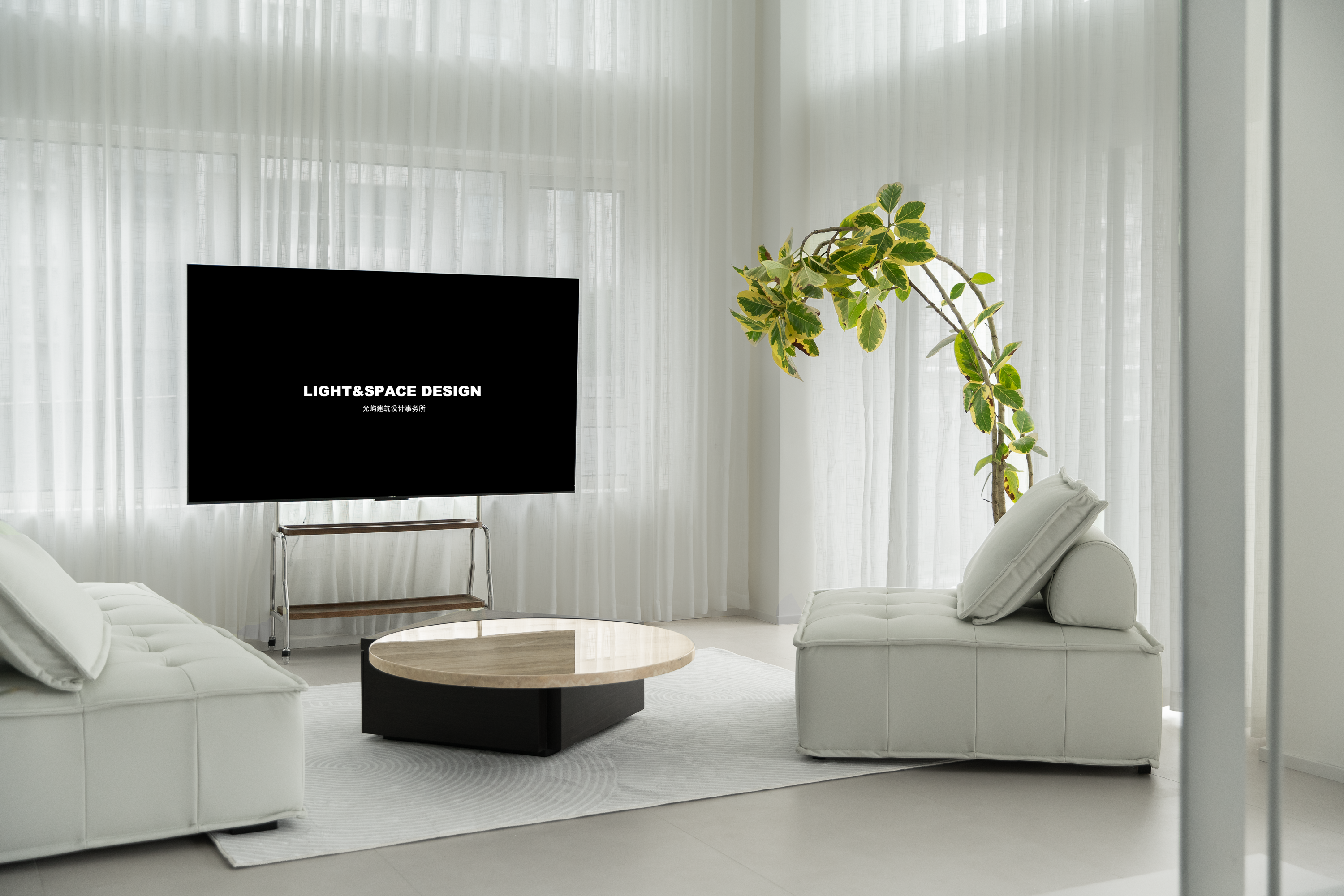 但是,通过对场景的控制,每到风吹动办公室的纱帘,隐隐约约的晃动在沙发旁边,画图久了,我们就在这个单人沙发那里,看看书,听听音乐。秋天的时候,楼下的花香都飘了进来