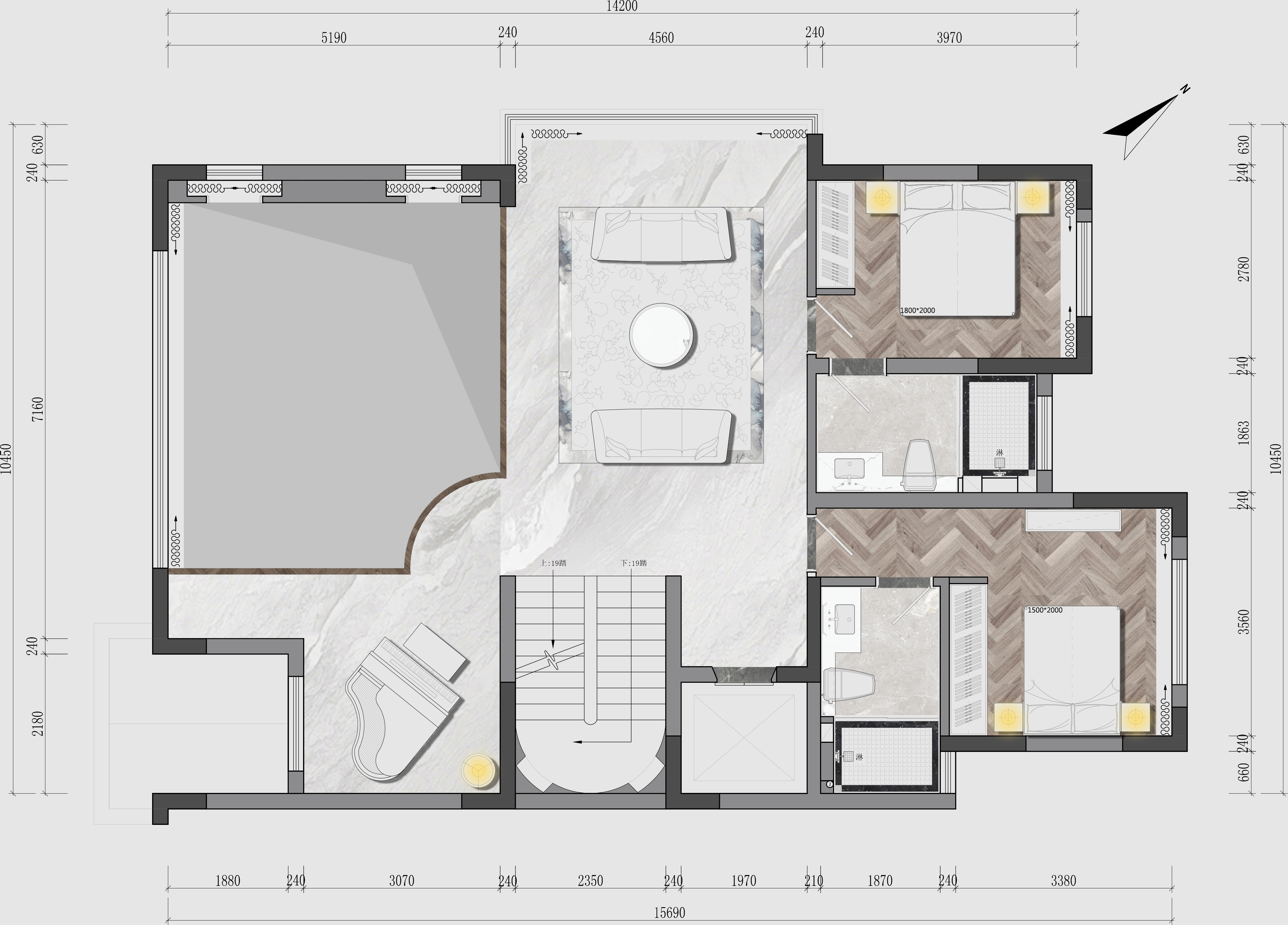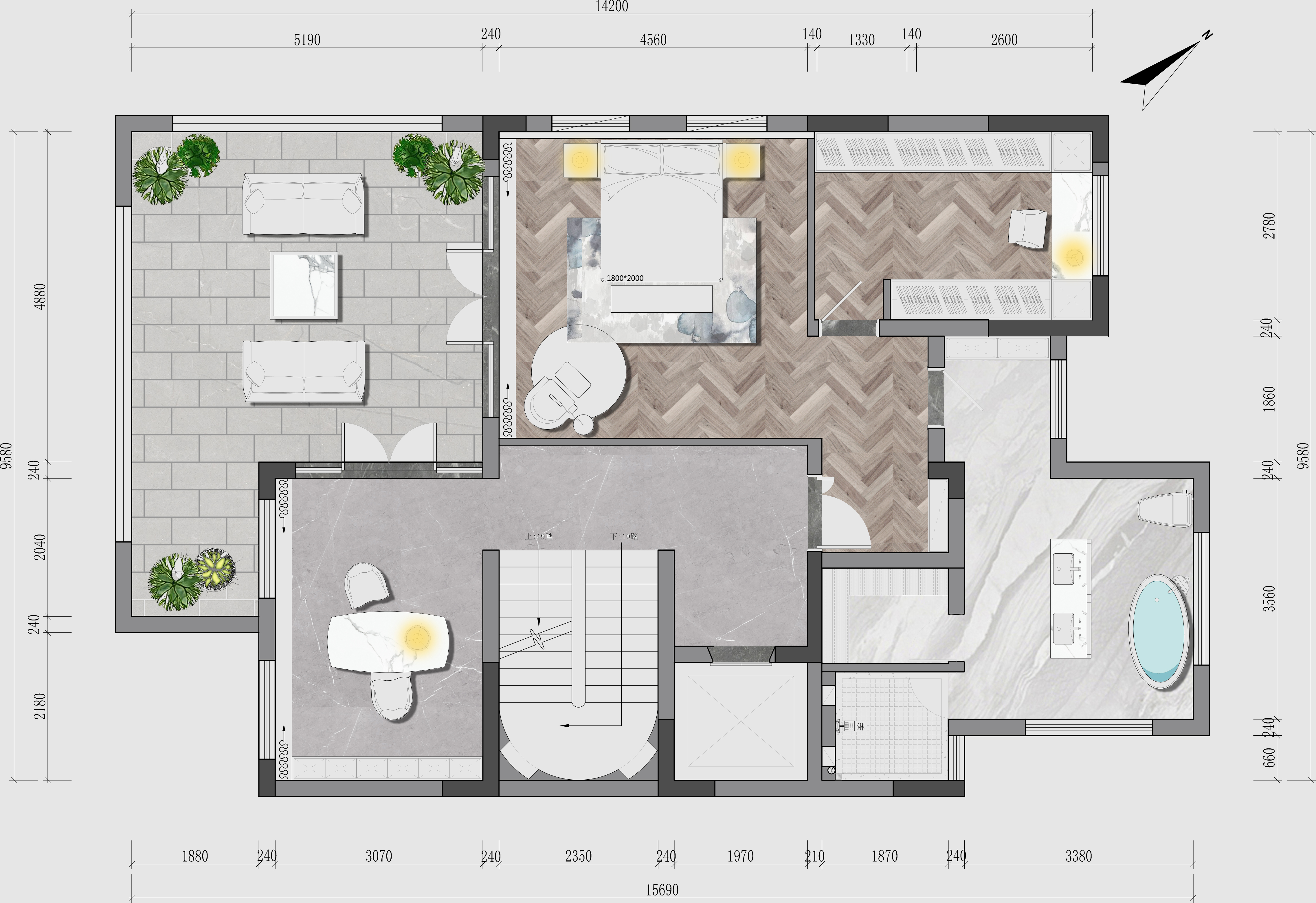 设计选材:材料的选择上,利用一些原木,自然的石材,蘑菇石等自然的材料,使得空间更加的贴近自然,给空间增添更多的灵动性。