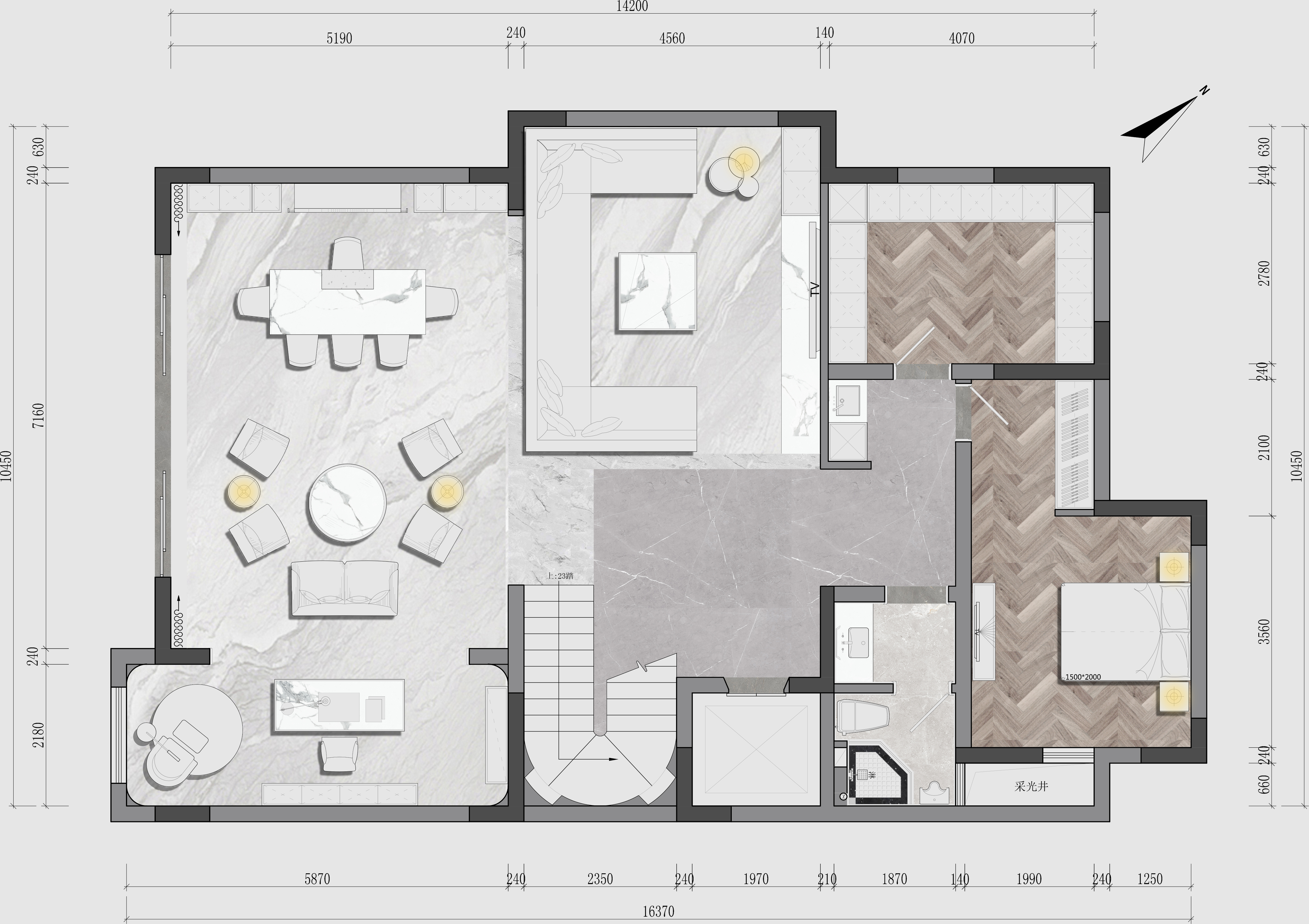 空间意境:上下空间用线条和几何框架来塑造空间的拉伸,延长这一份足够的宽阔感。