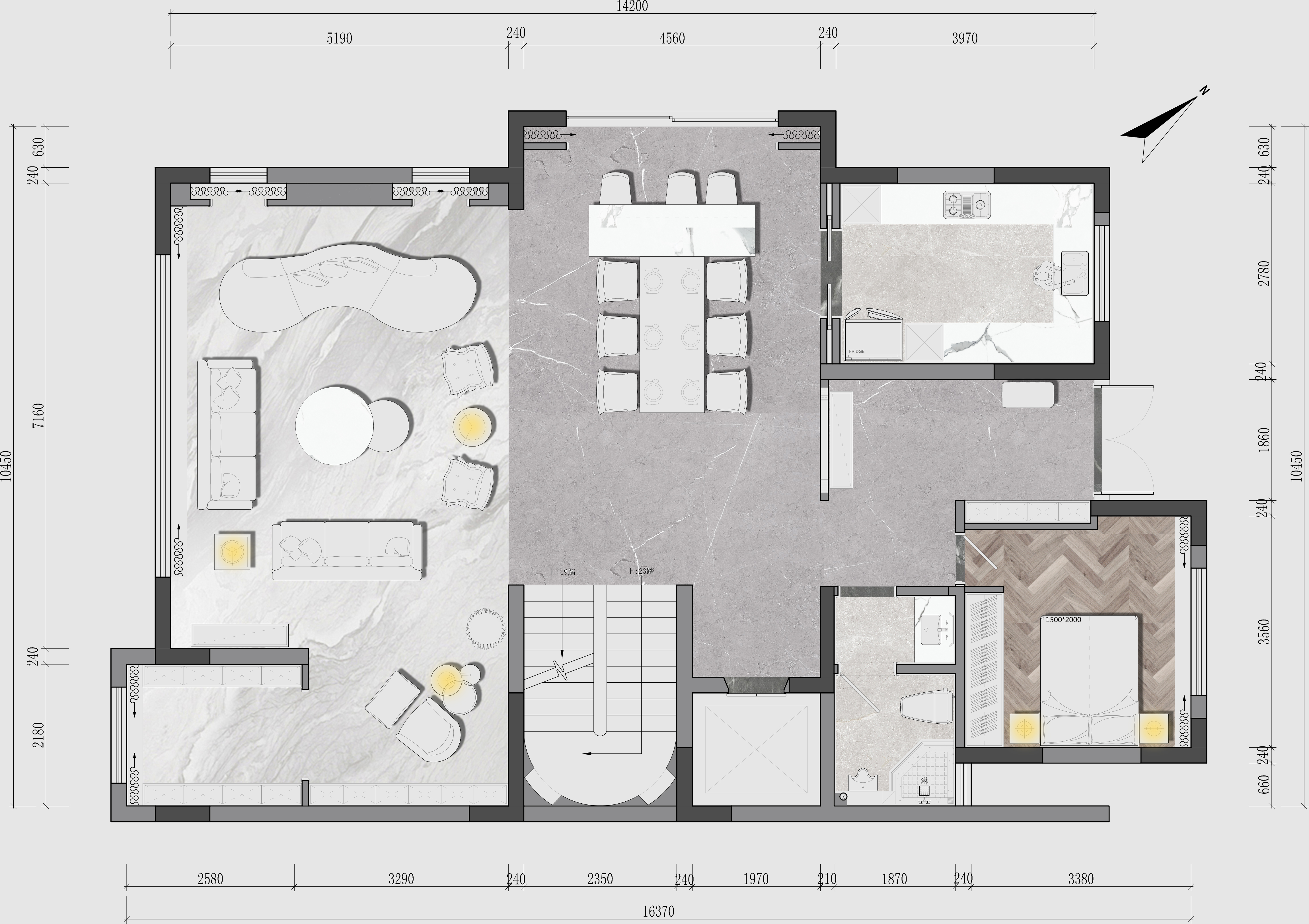空间布局:吧台式的餐厅,不仅仅便捷更能融入开放式的空间,享受更多的互动和社交活动,丰富生活的细节。
