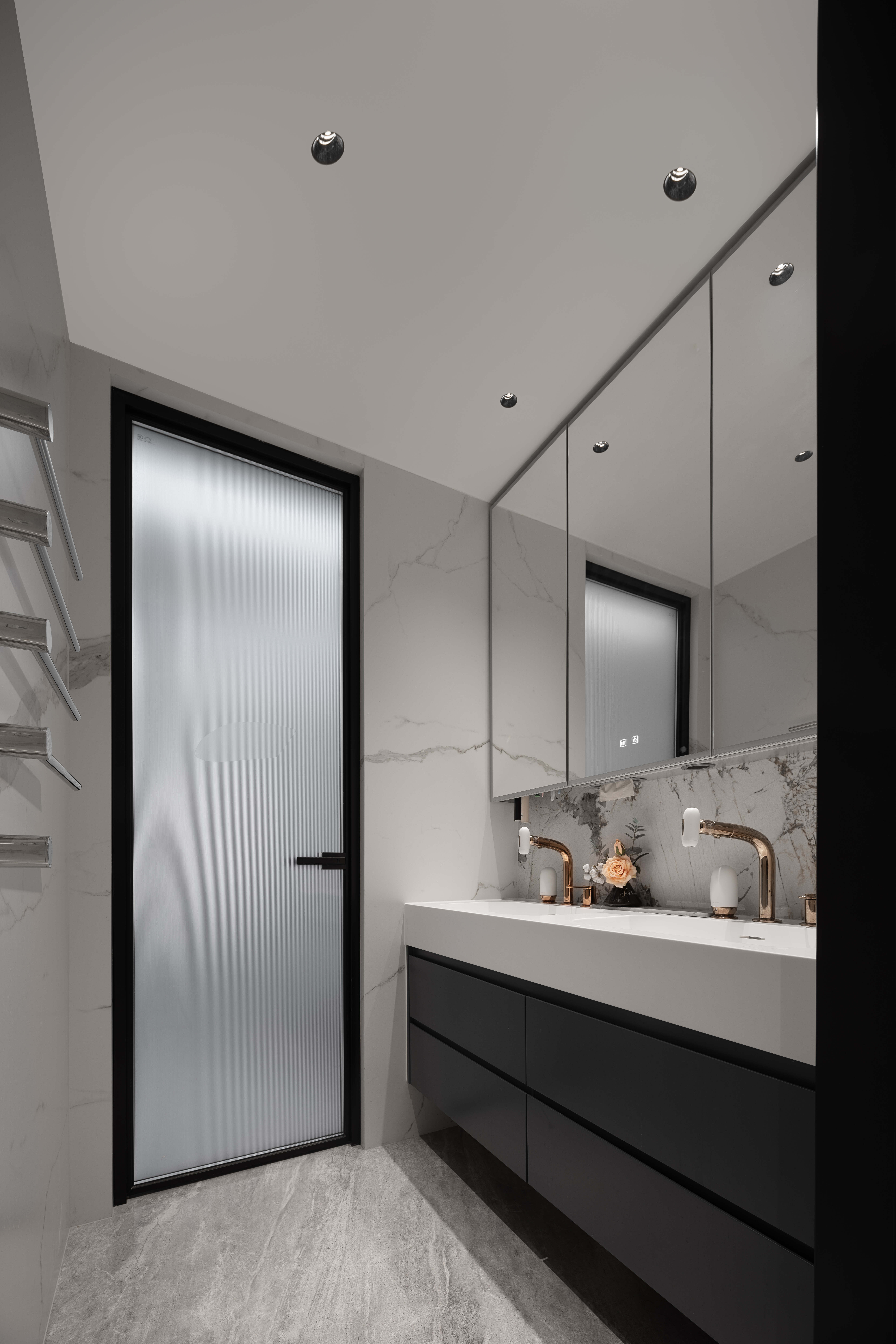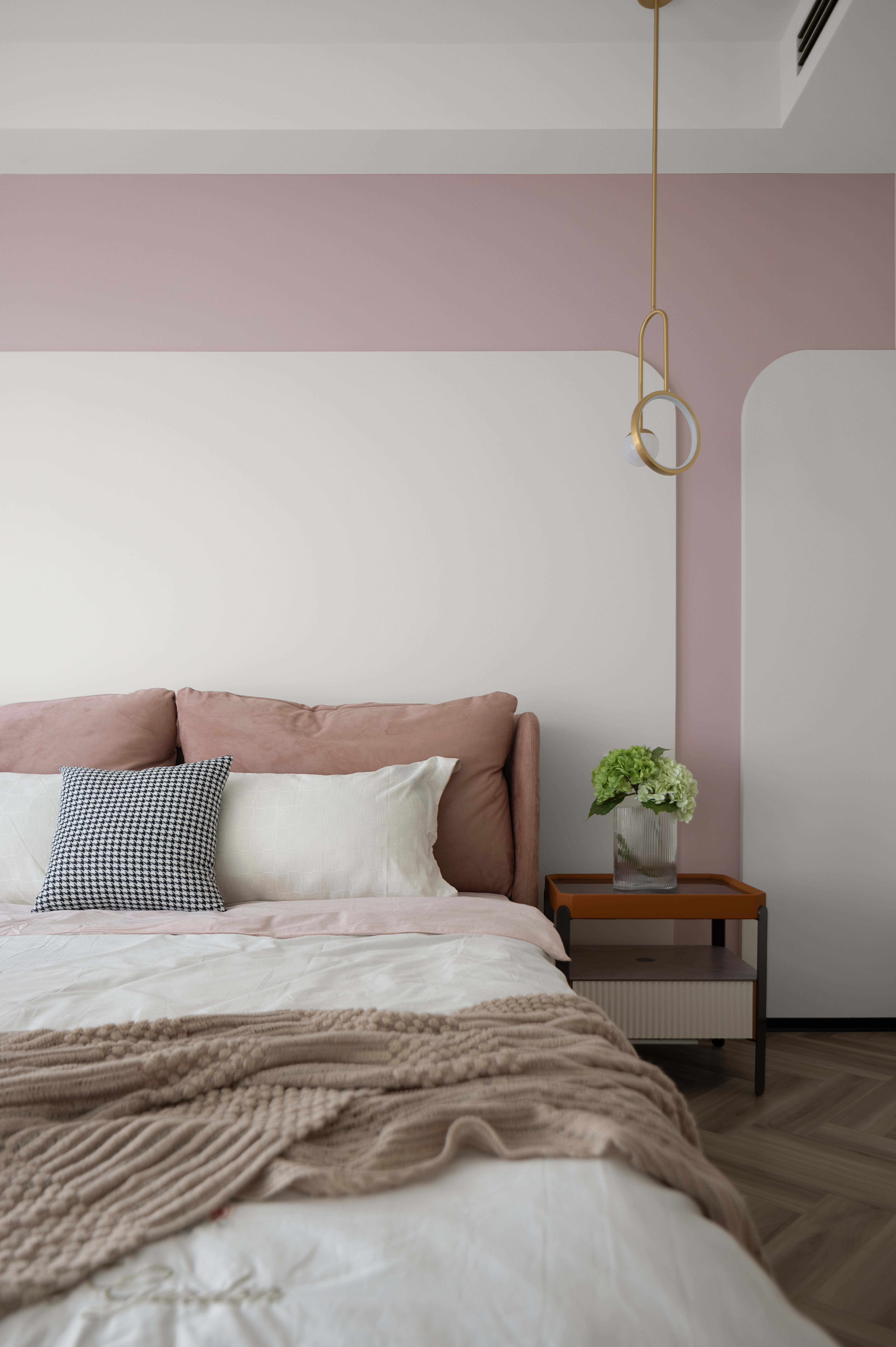 设计选材:本案选用瓷砖木饰面乳胶漆等选材进行设计