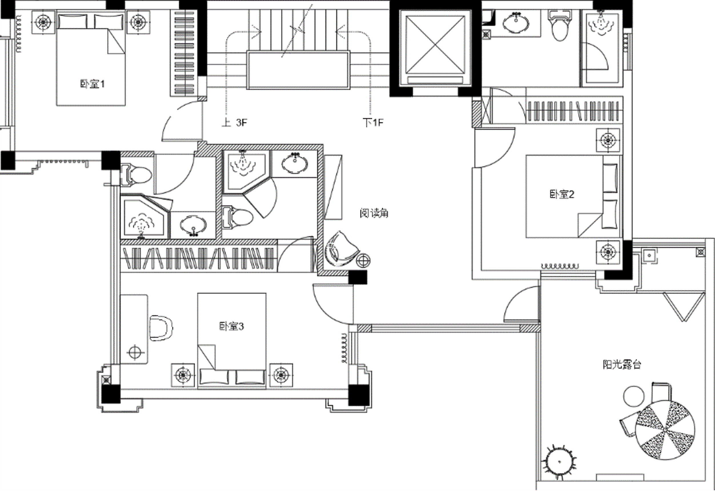 二楼、三楼为私人空间,为未来每位家庭成员提供独立的私人空间,两层楼均有各自独立的花园露台。 -