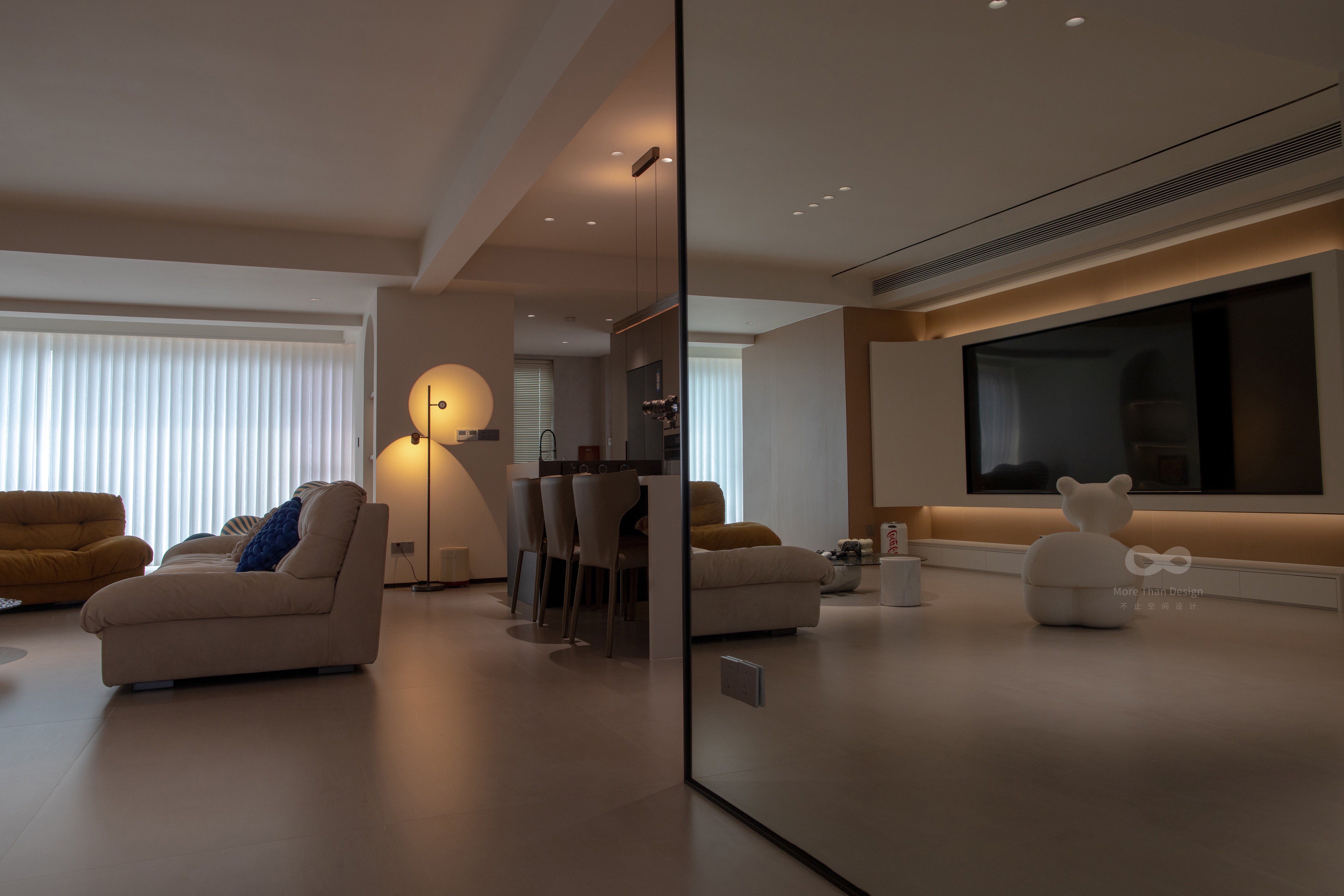 用简洁的线条和充满层次的光线丰富空间。