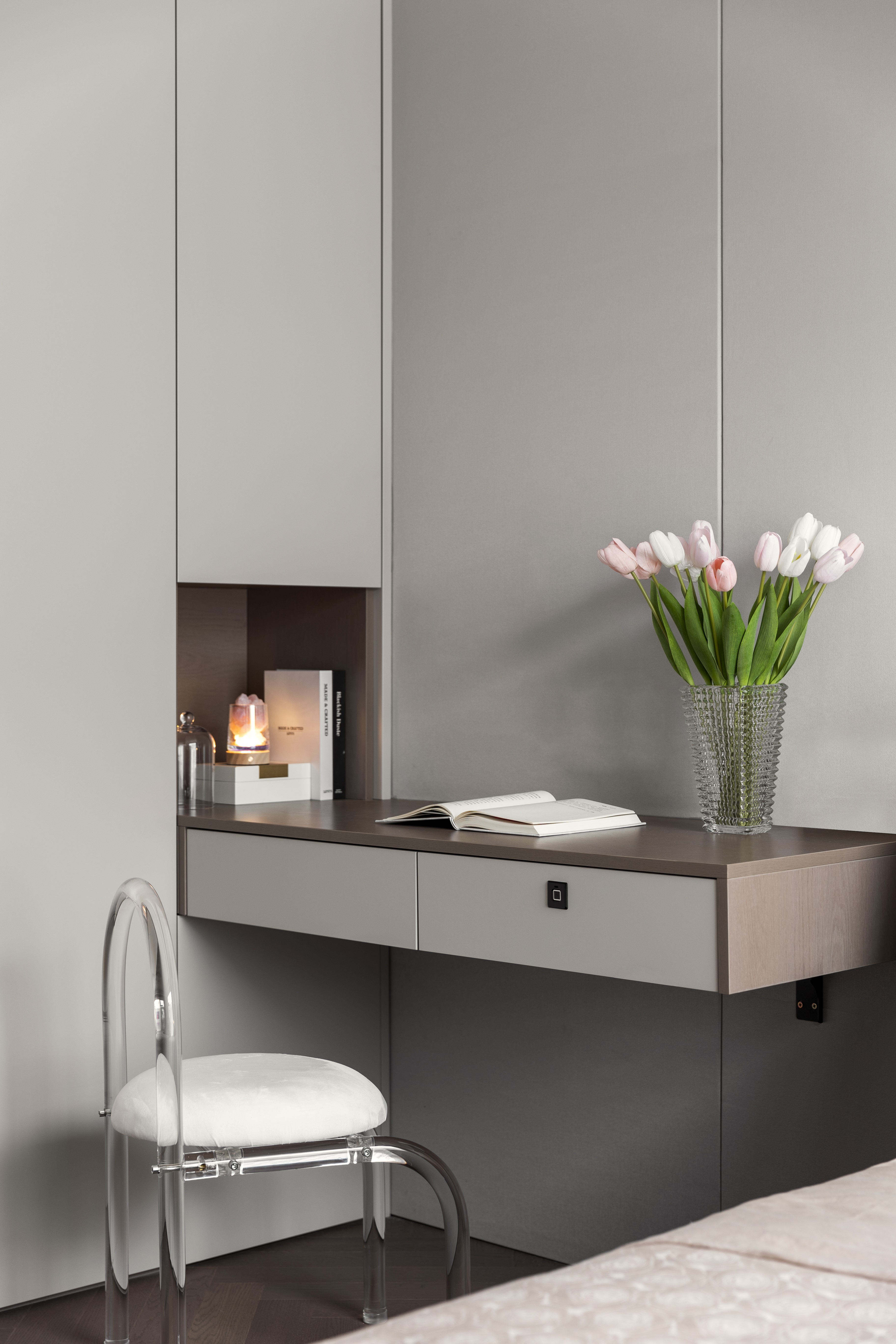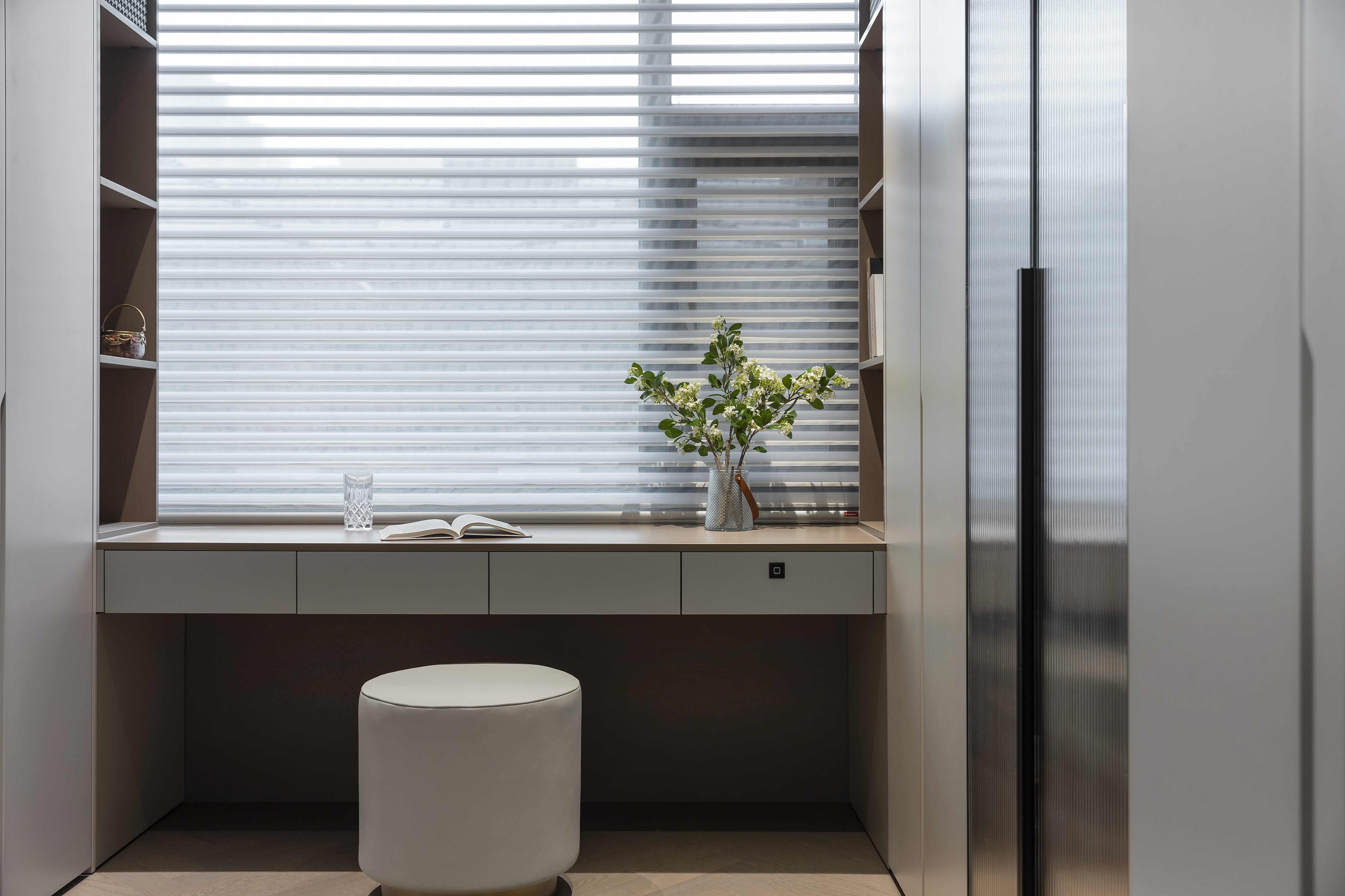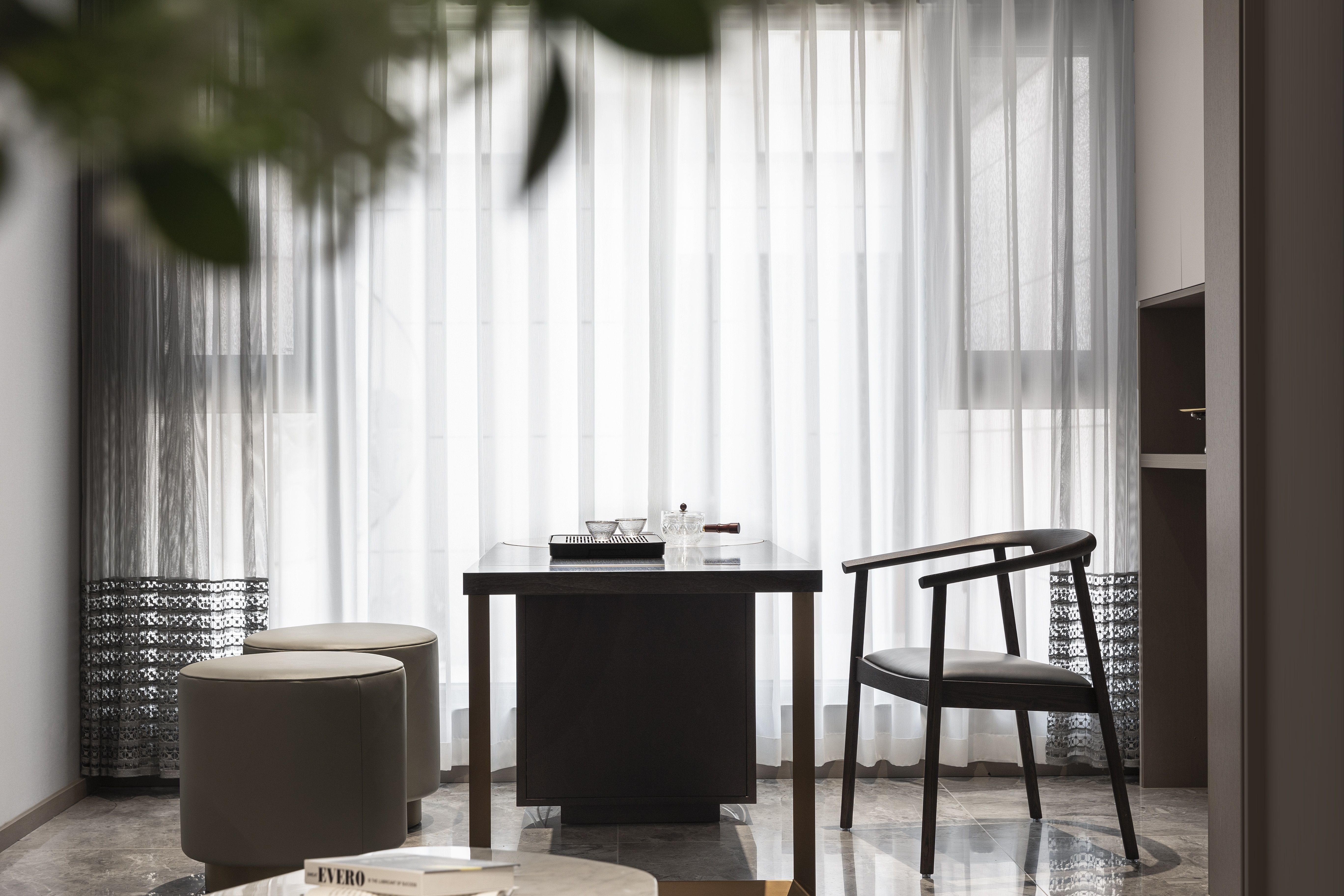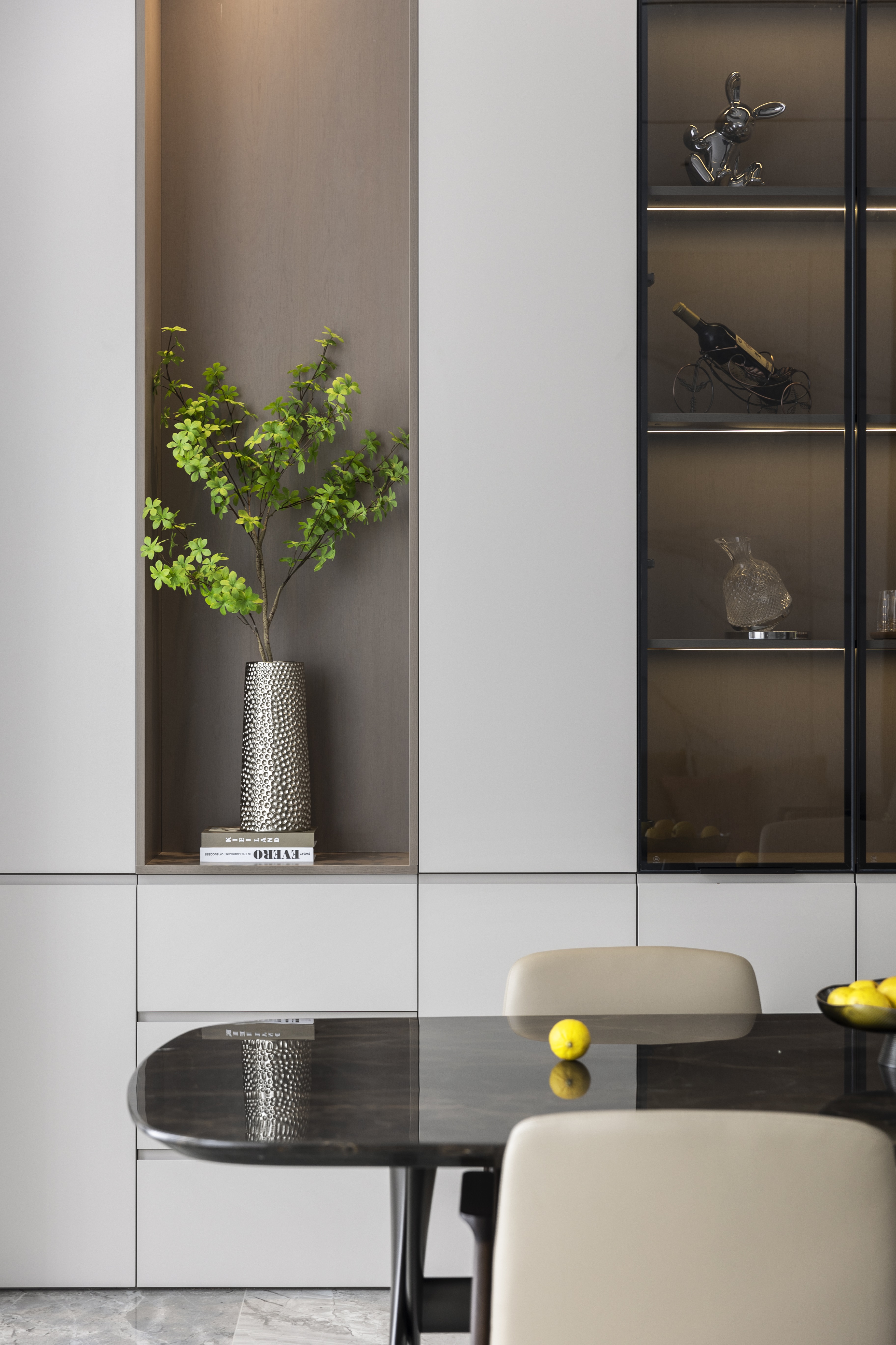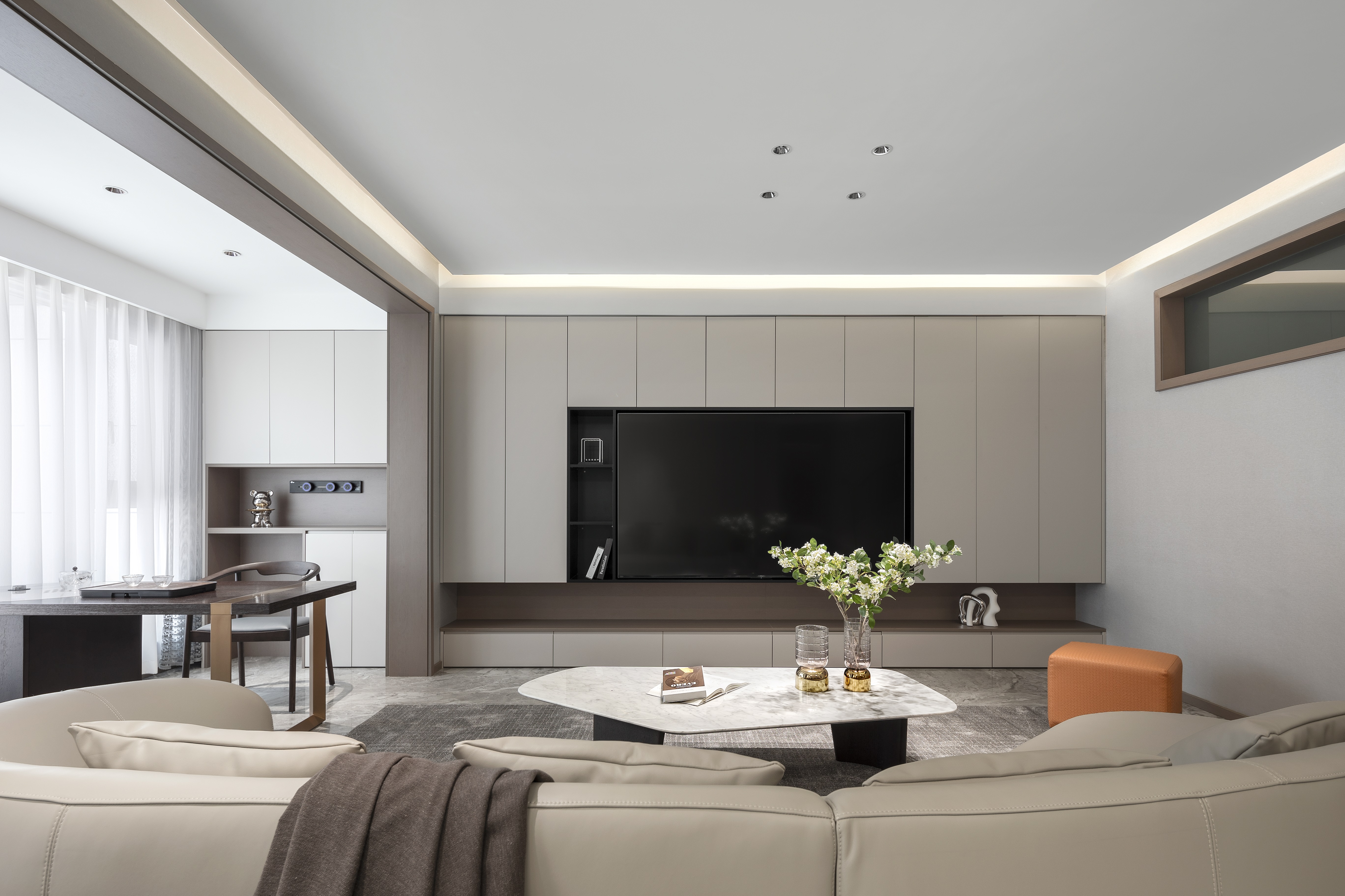 客餐厅改成宽厅,作为平时休息交流的区域。取消电视机等不必要的需求