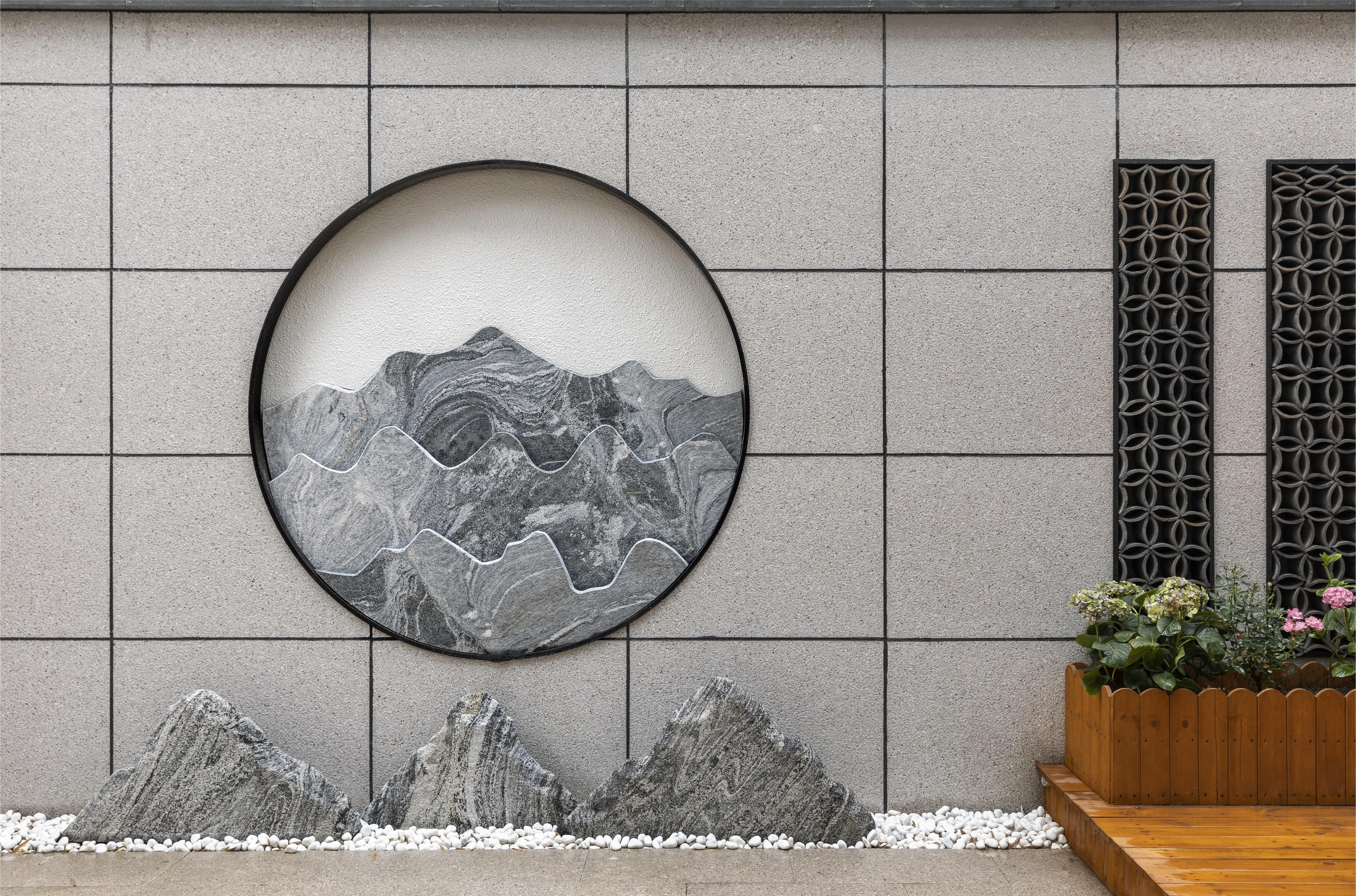 墙面采用木,石,布的融合显得简单整洁。