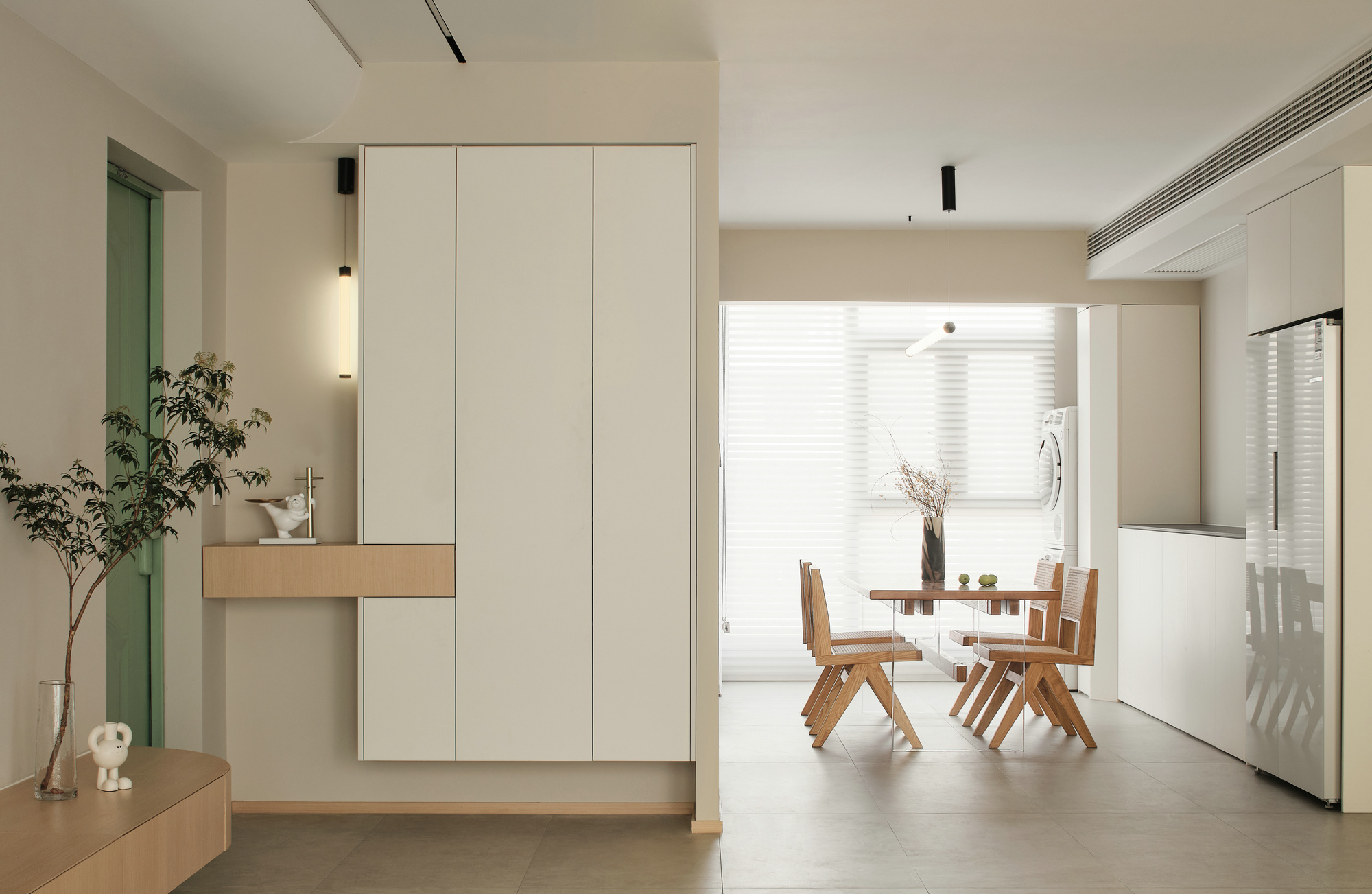 1入户设计玄关储物柜方便换鞋子。