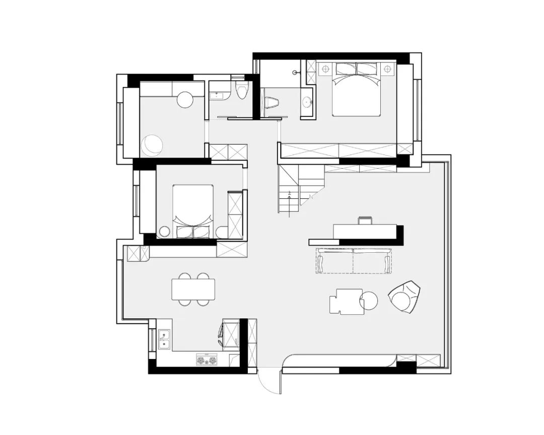 房屋原先是精装房业主不喜欢原始的风格,所以全部拆除重新设计。原始户型结构方正客厅偏大卧室偏小所以我们通过设计对内部结构进行优化改造达到更舒适的生活空间。