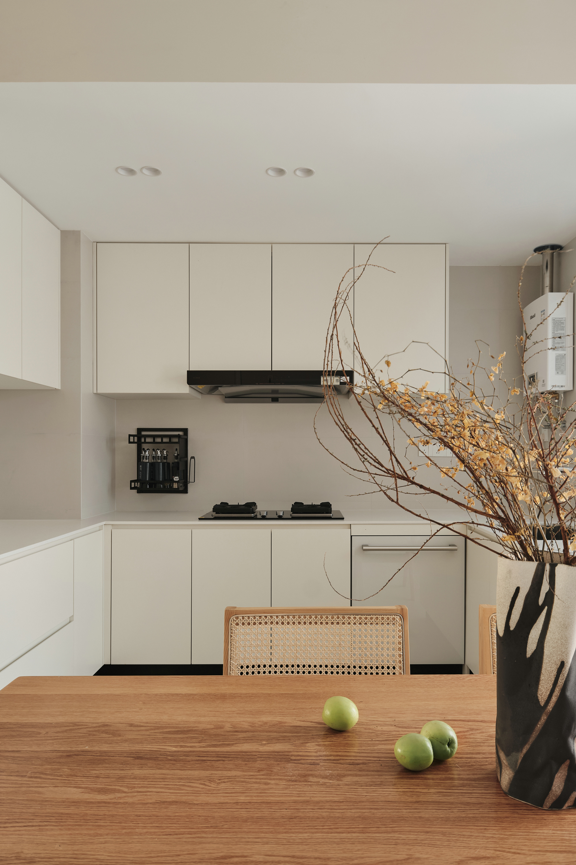 开放式厨房U型橱柜,满足储物的同时,也让空间结构整齐,视觉美观;
