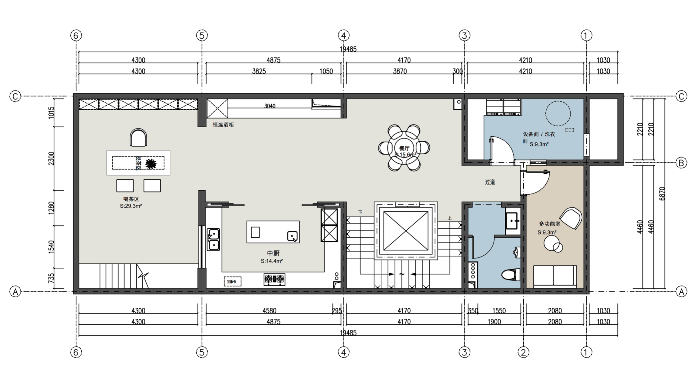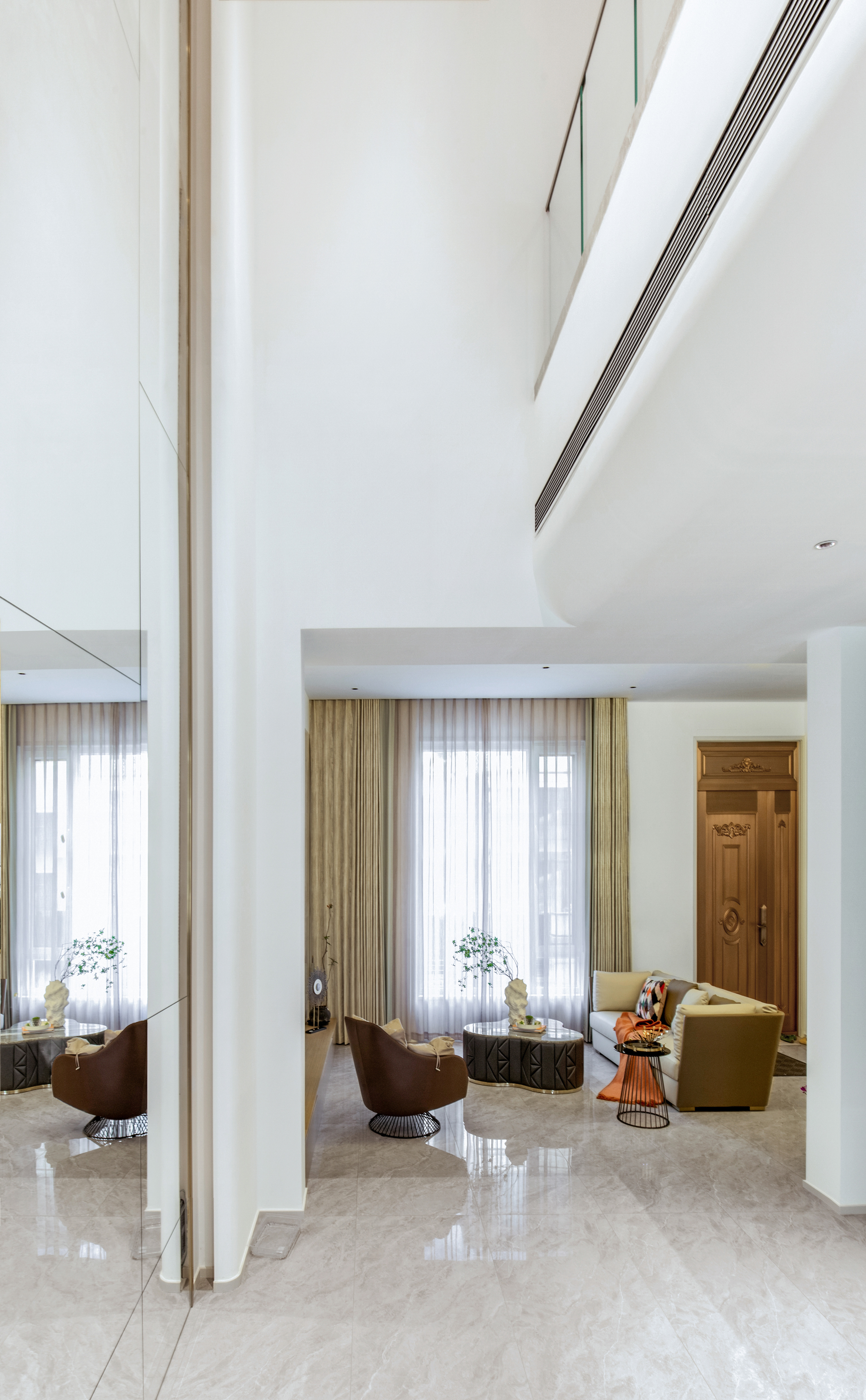 空间高挑空的结构,最大限度地保持房子的通透性和明亮度。