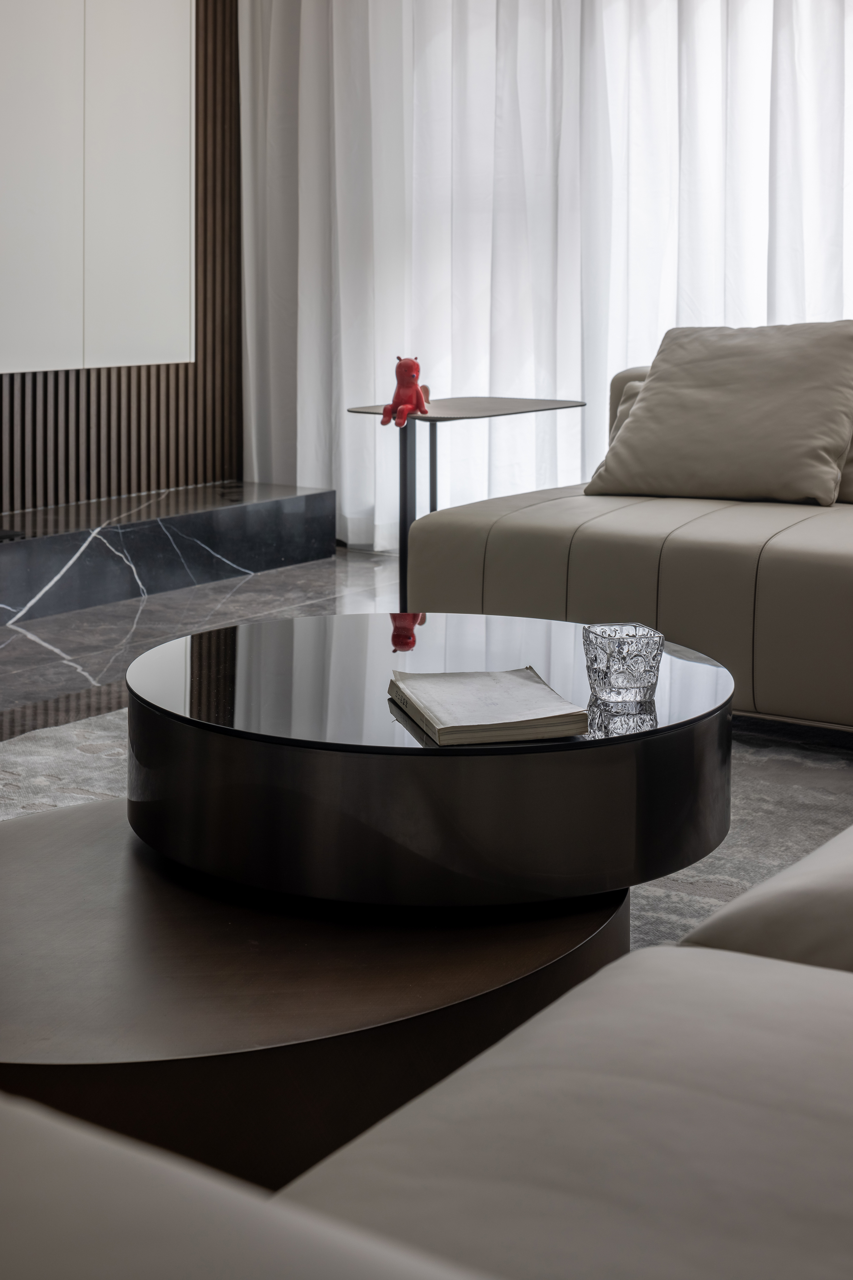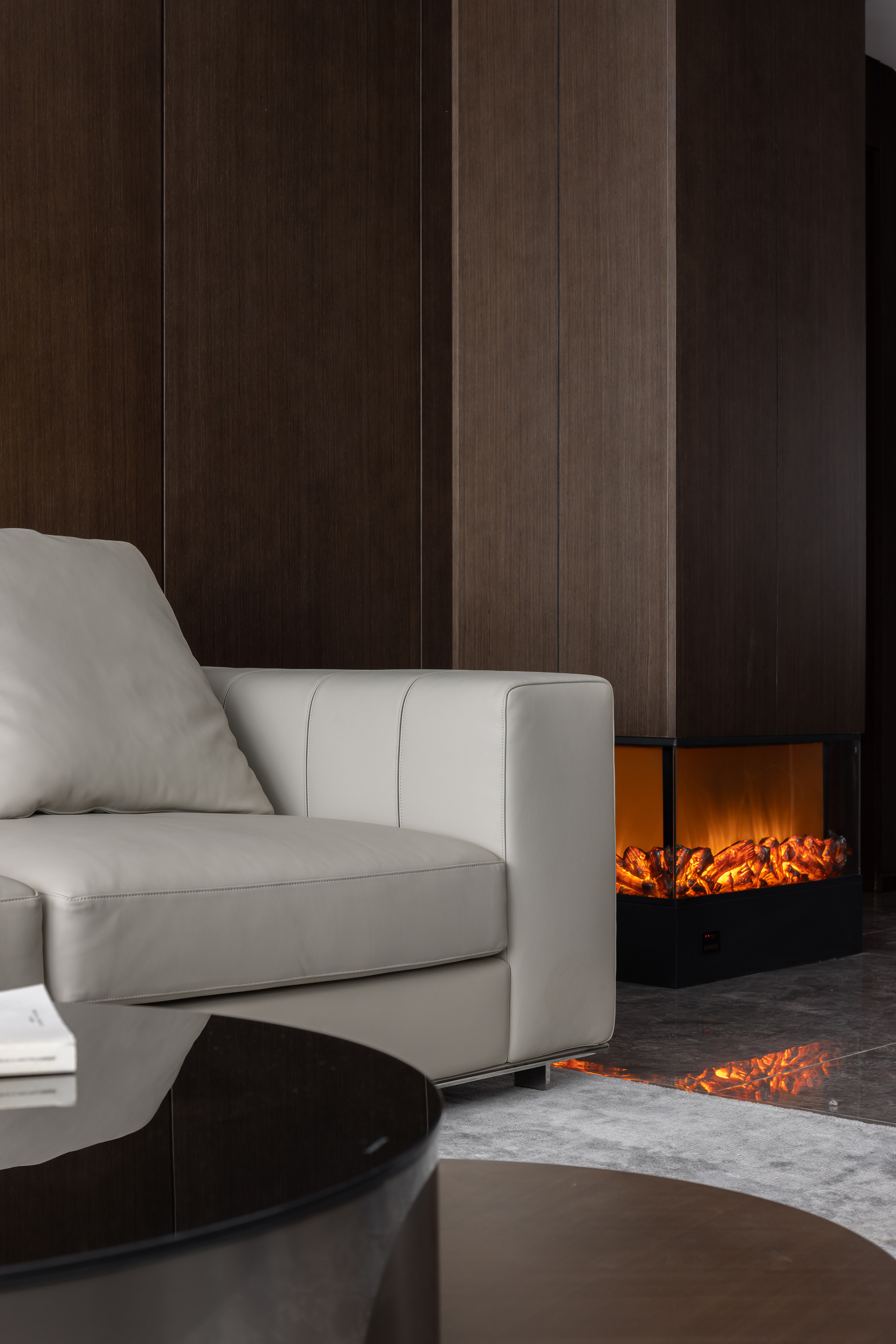 整体深色木皮选用的是秋香木也就是常说的科技木,及实现了天然木皮的质感,有促进了材料的可重复利用性,降低成本也符合可持续设计的初衷!