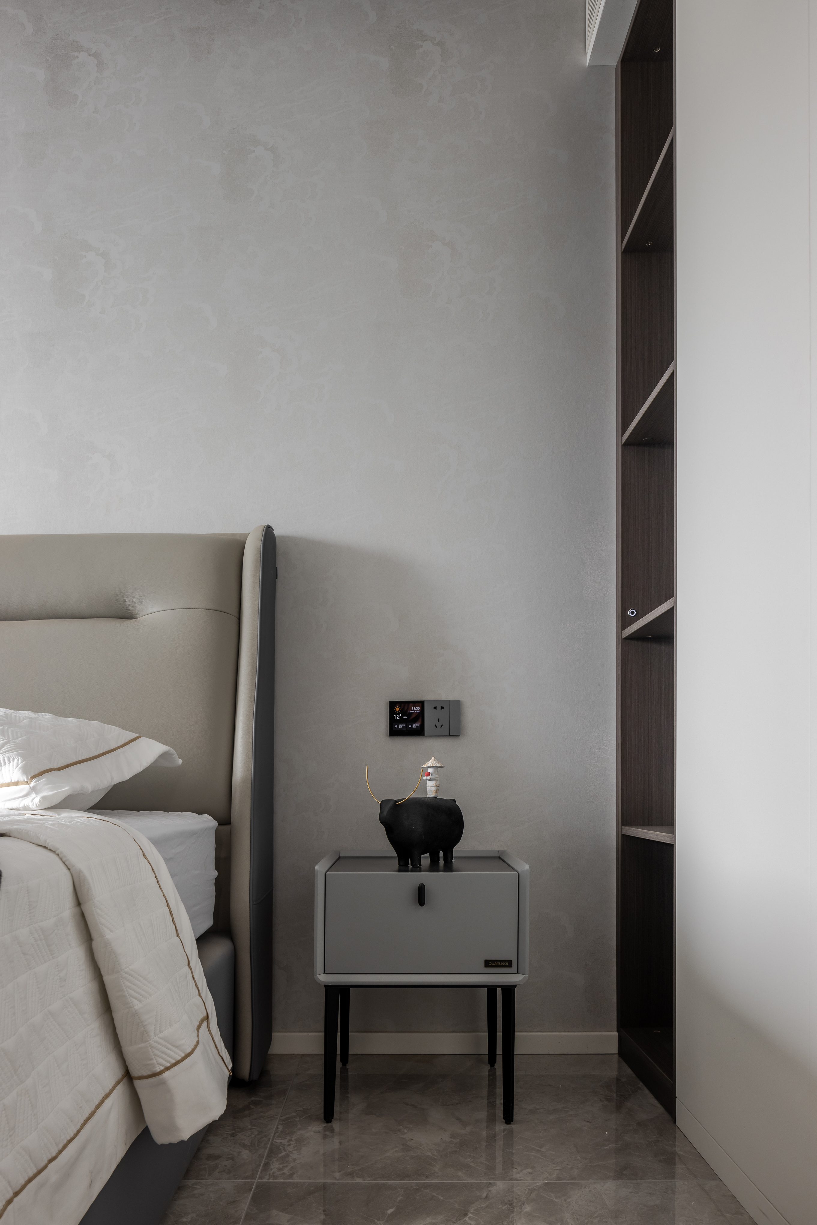 这是一套大平层的项目,难点在于居住的是三代人七口之家,要把四居变五居,其它房间功能还要保留,以及要更大的储物空间,更大的餐厨空间等等;现场勘察后结合居住需求,设计方向定位为现代都市,整体营造现代、舒适、智能、大气、略带商务的高级感!空间布局定位五室两厅两卫。