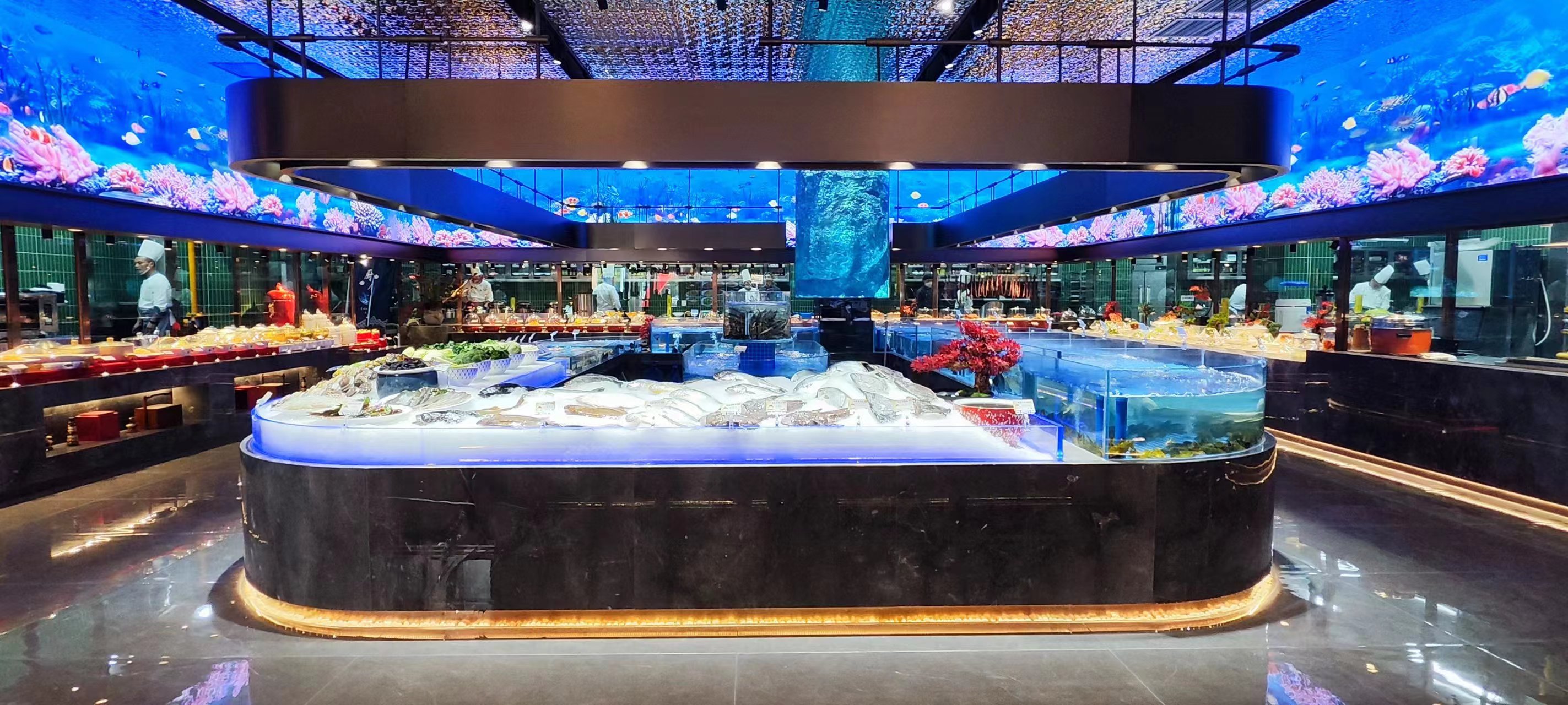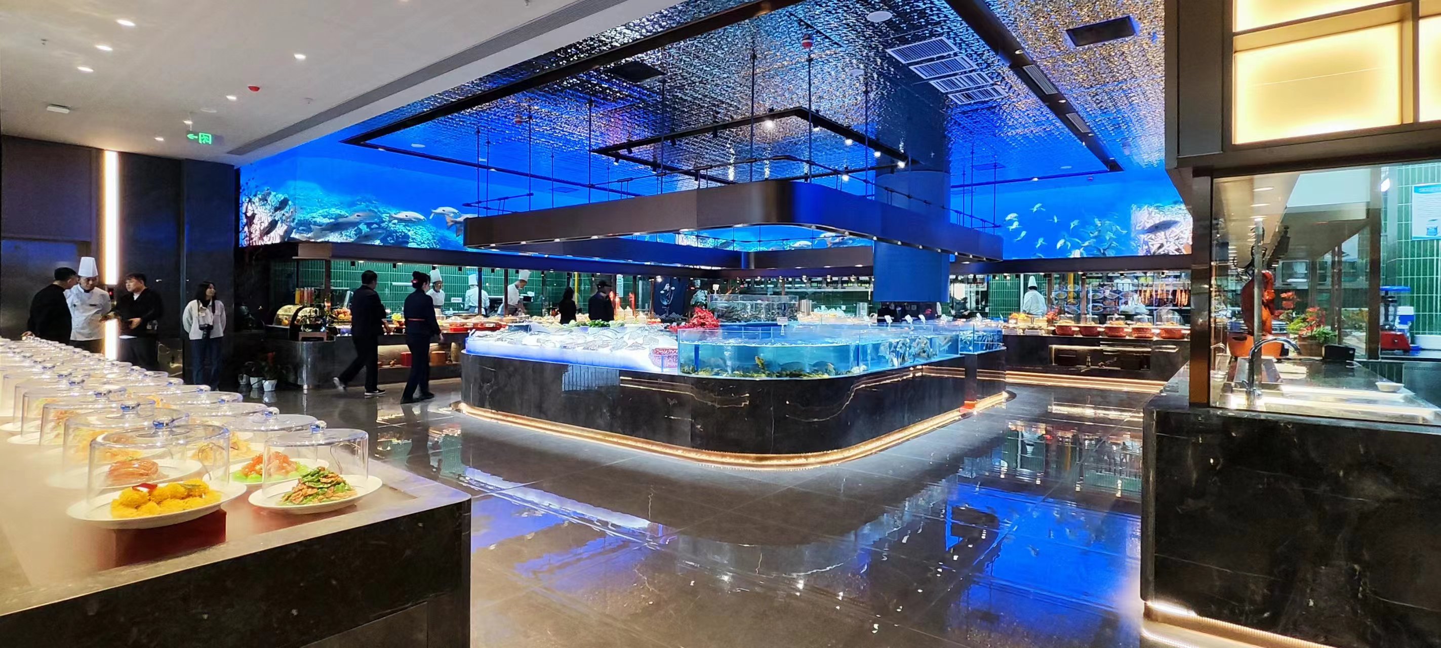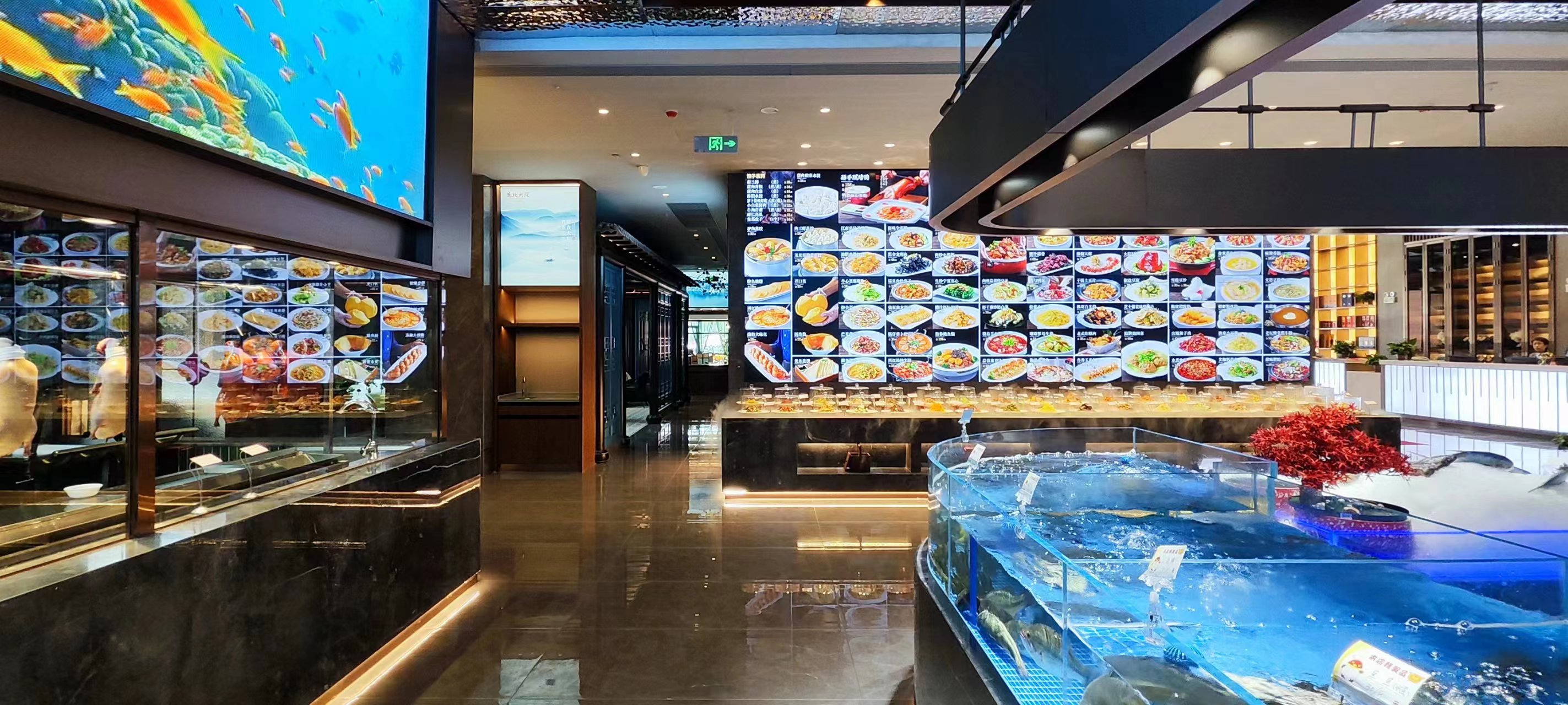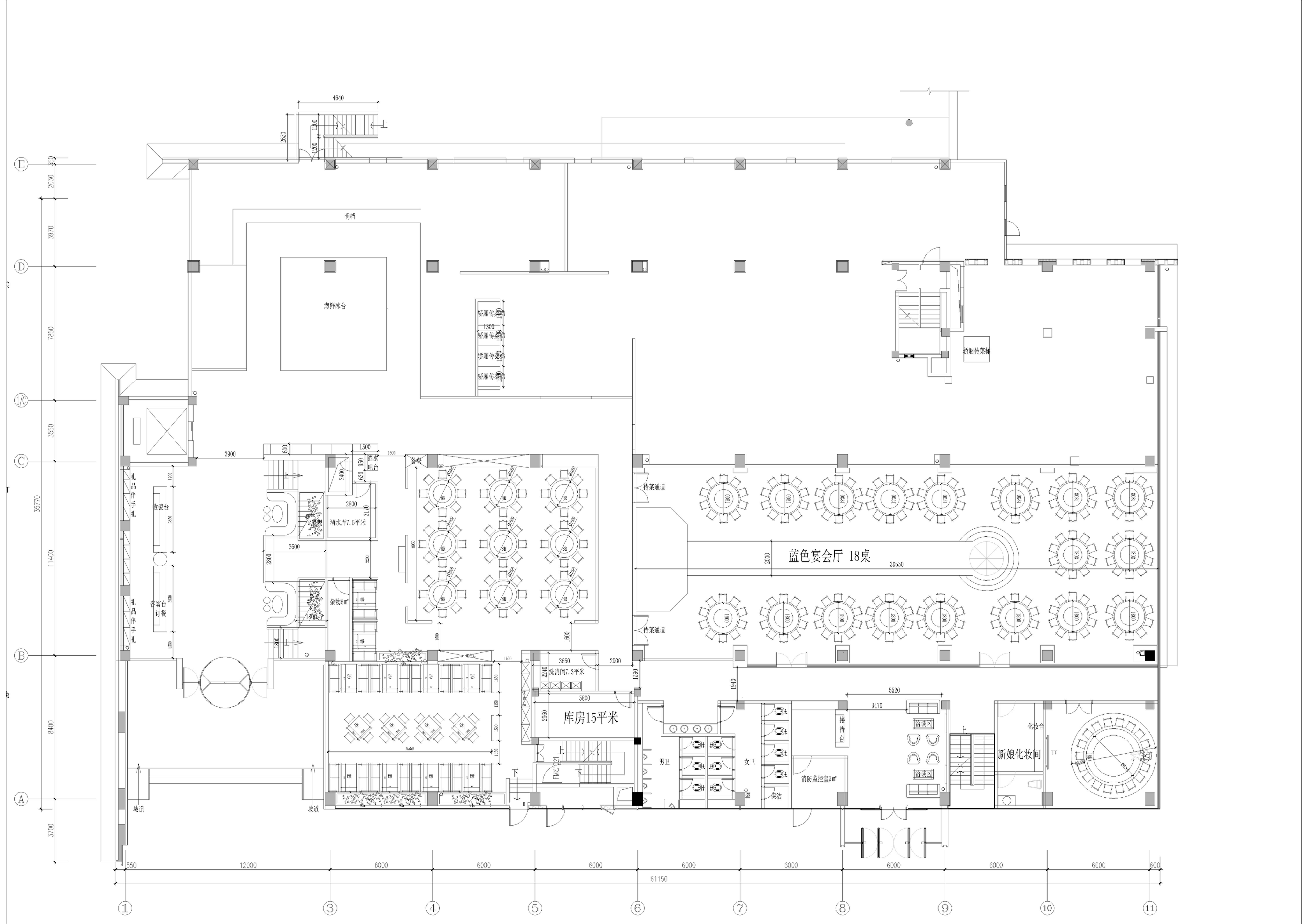 一层以明档、厨房、散厅、宴会为主,
