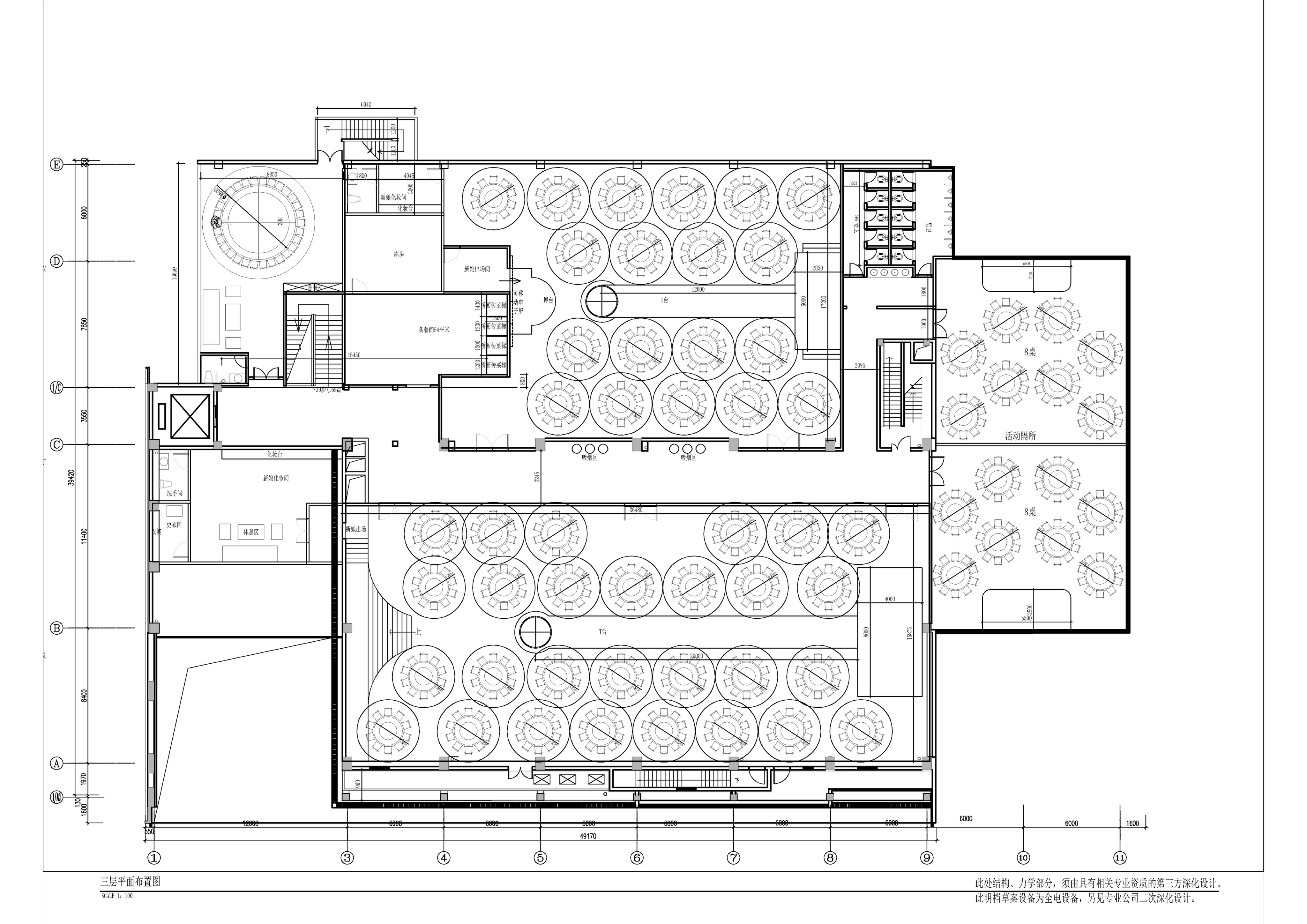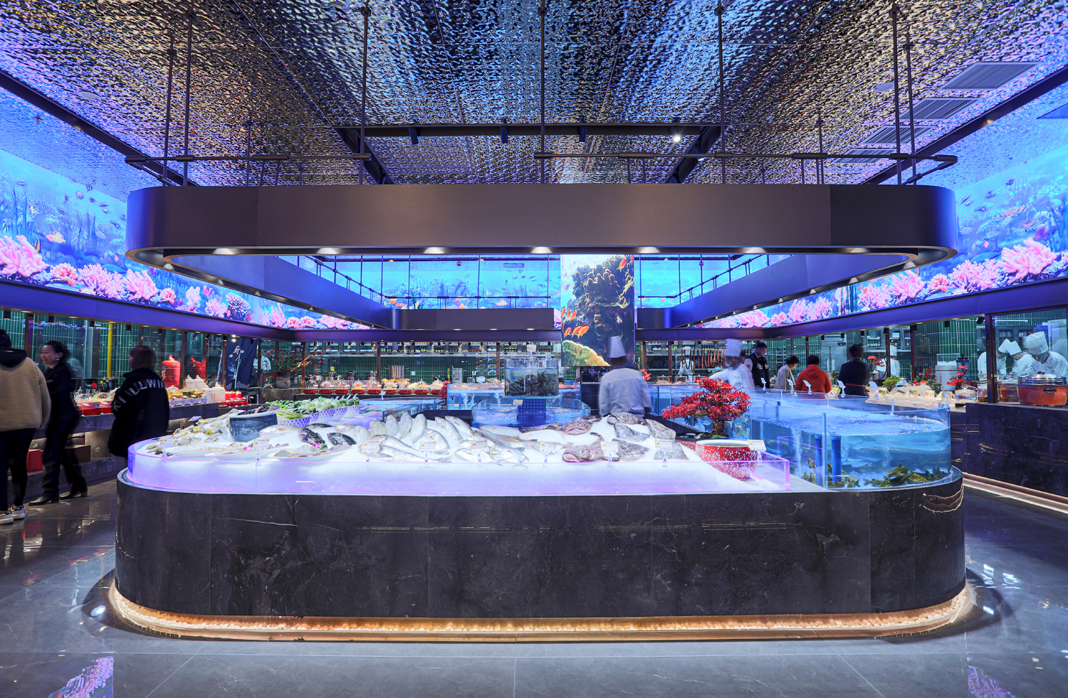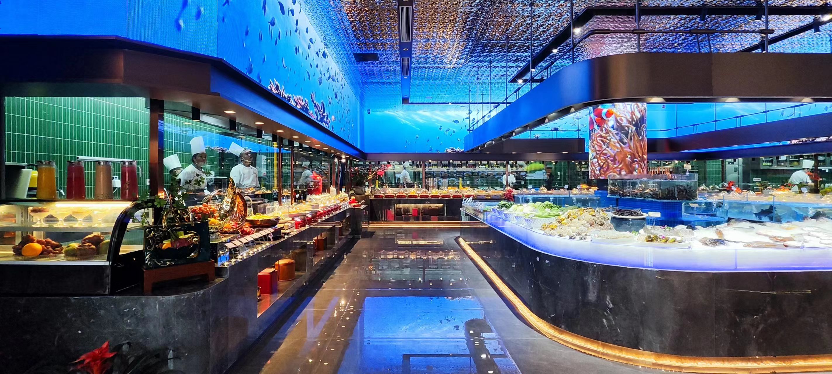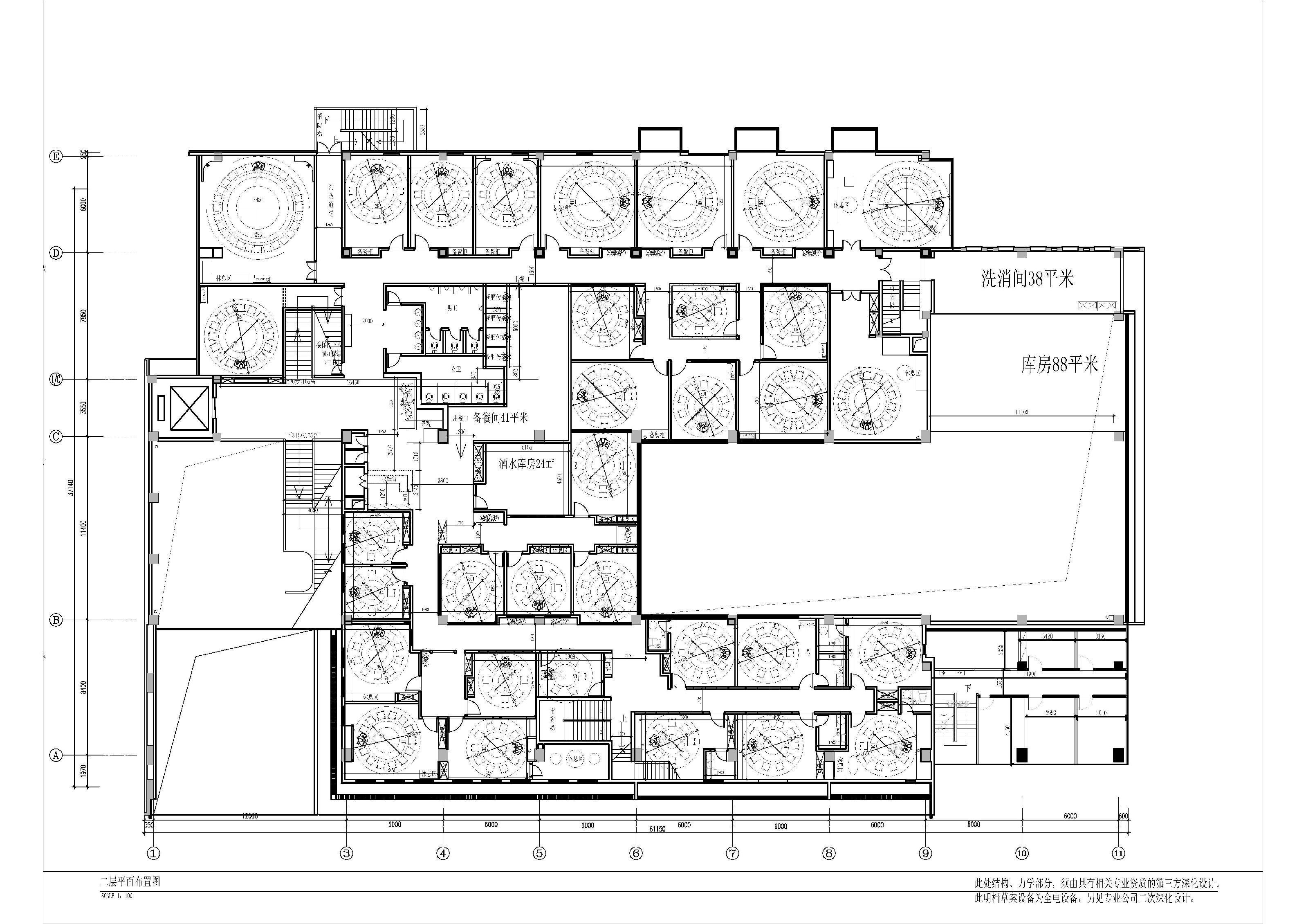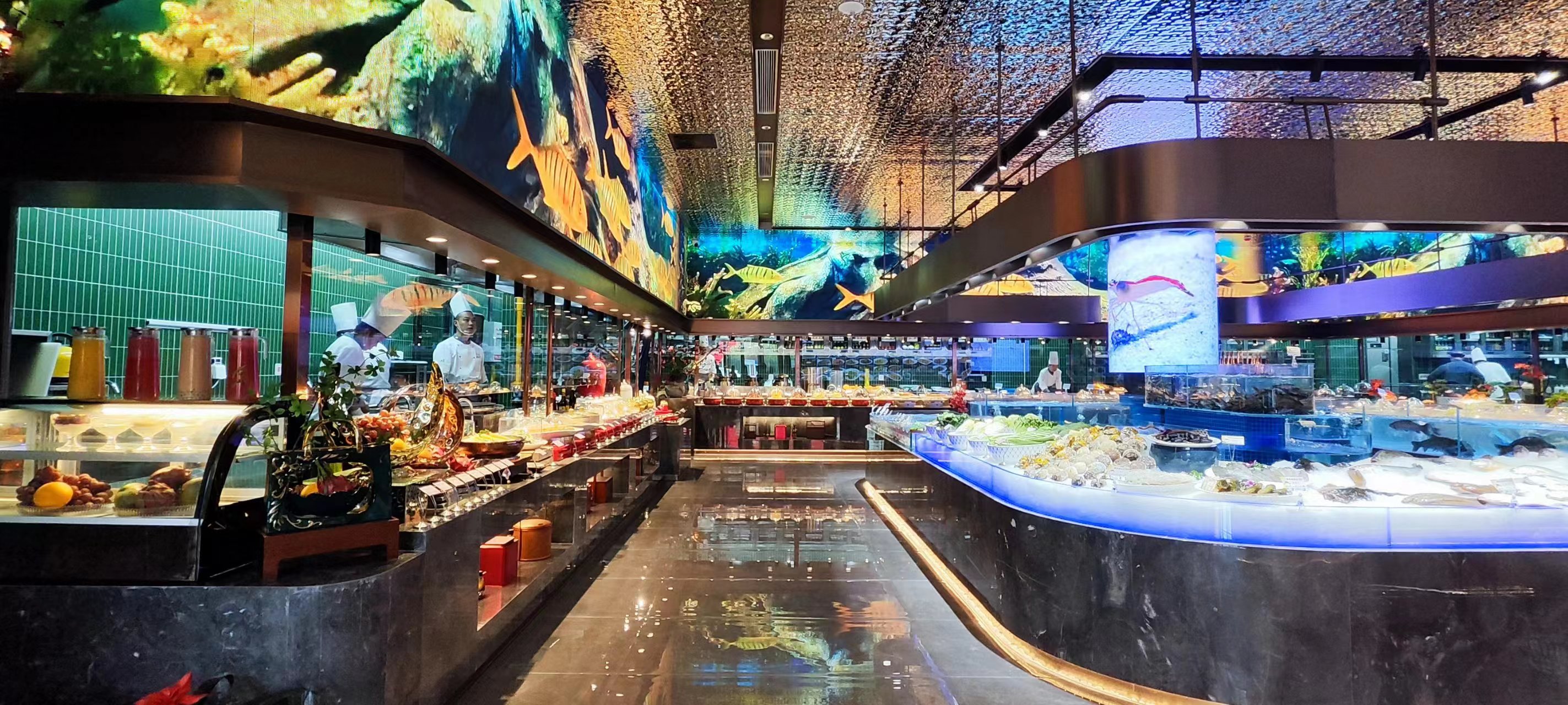 一层以明档、厨房、散厅、宴会为主,
