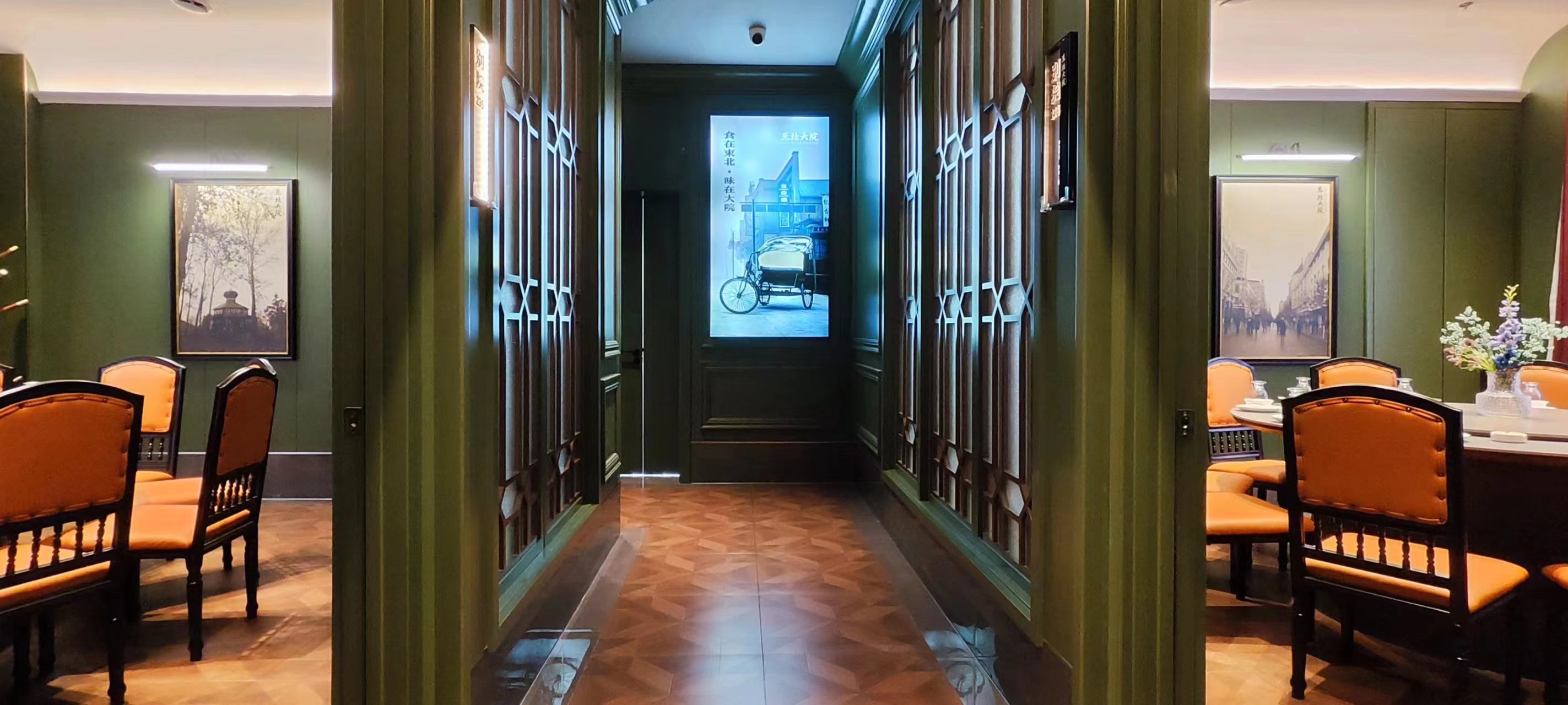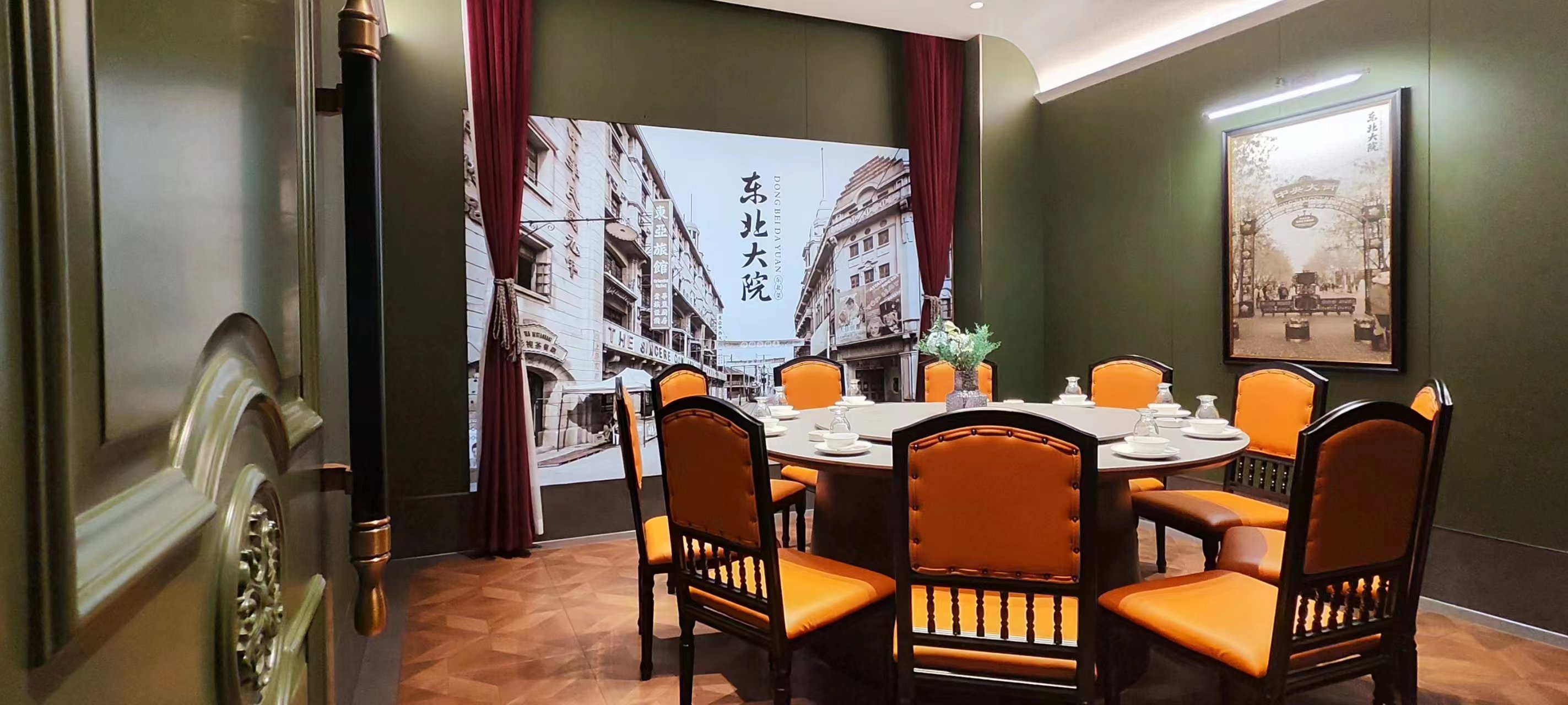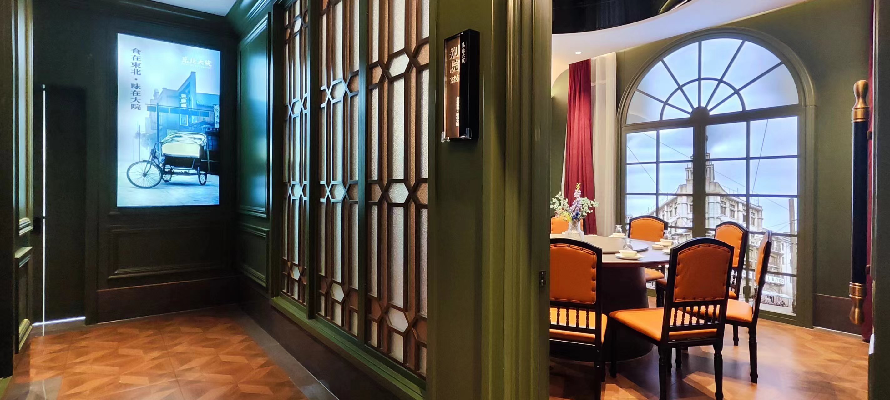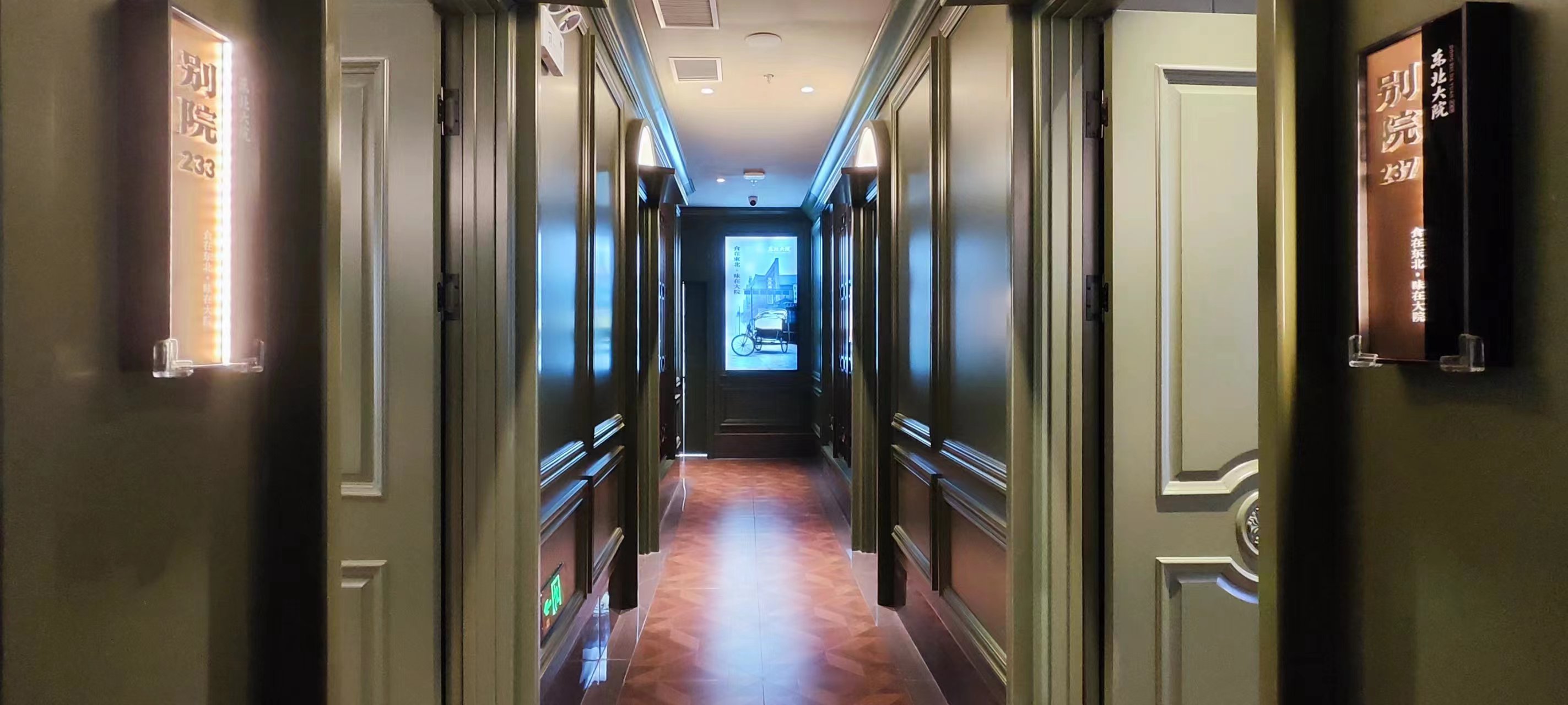 二层包间以院落为主,分为民国风包间区:位于二楼一隅,属于独立的院落包间区,以6-10人的小包间为主,并带独立卫生间,适配具有商务属性的宴请。而浓重的东北历史文化元素也符合(新)中产、年轻人的审美需求,事实上这也是门店最受欢迎的包间类型。