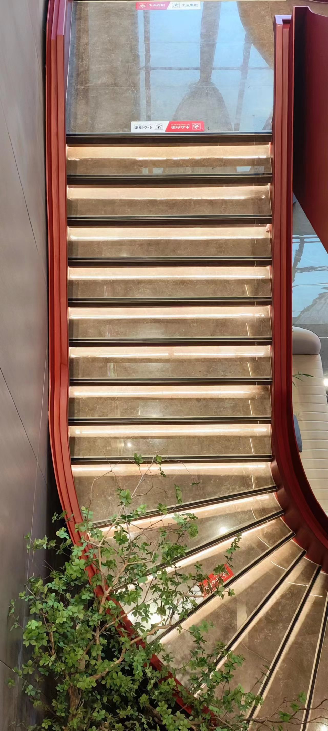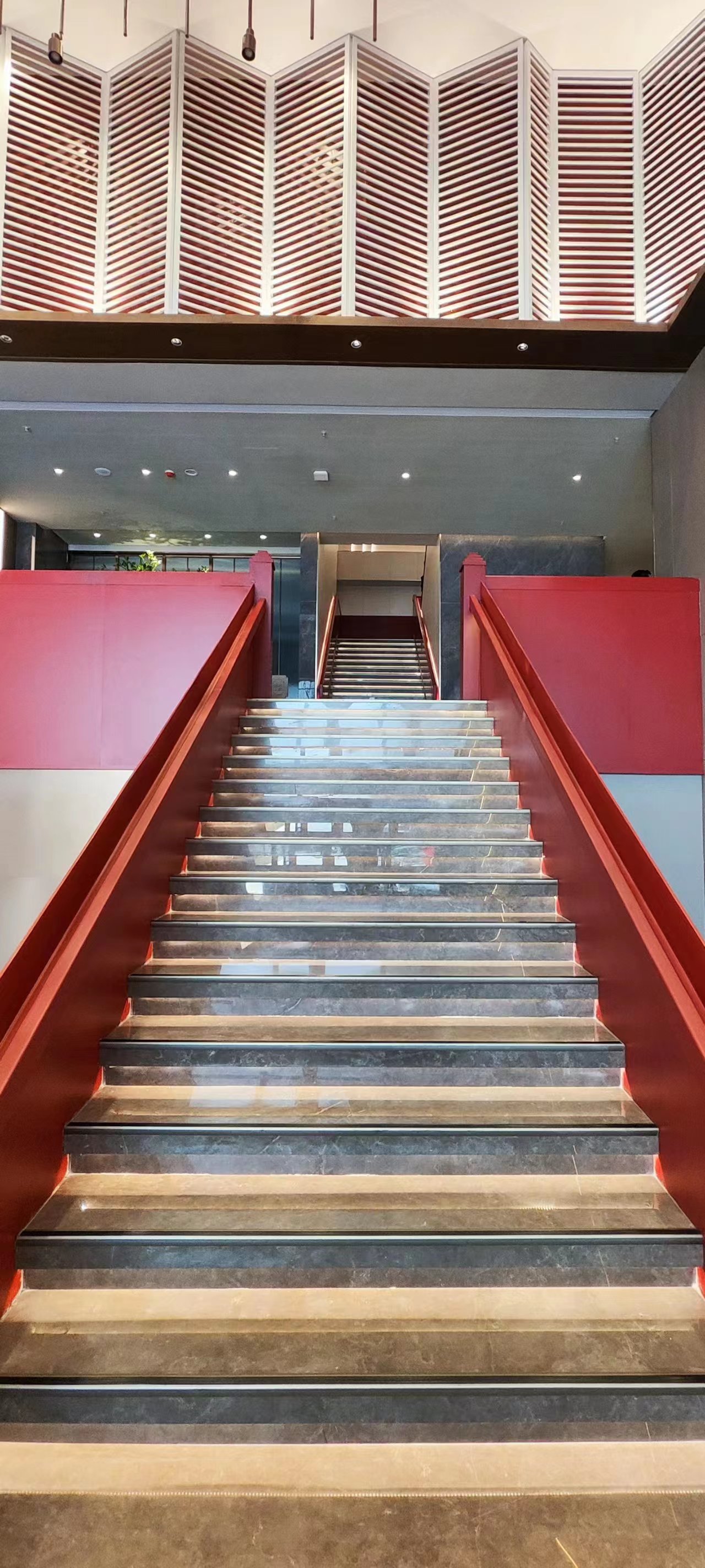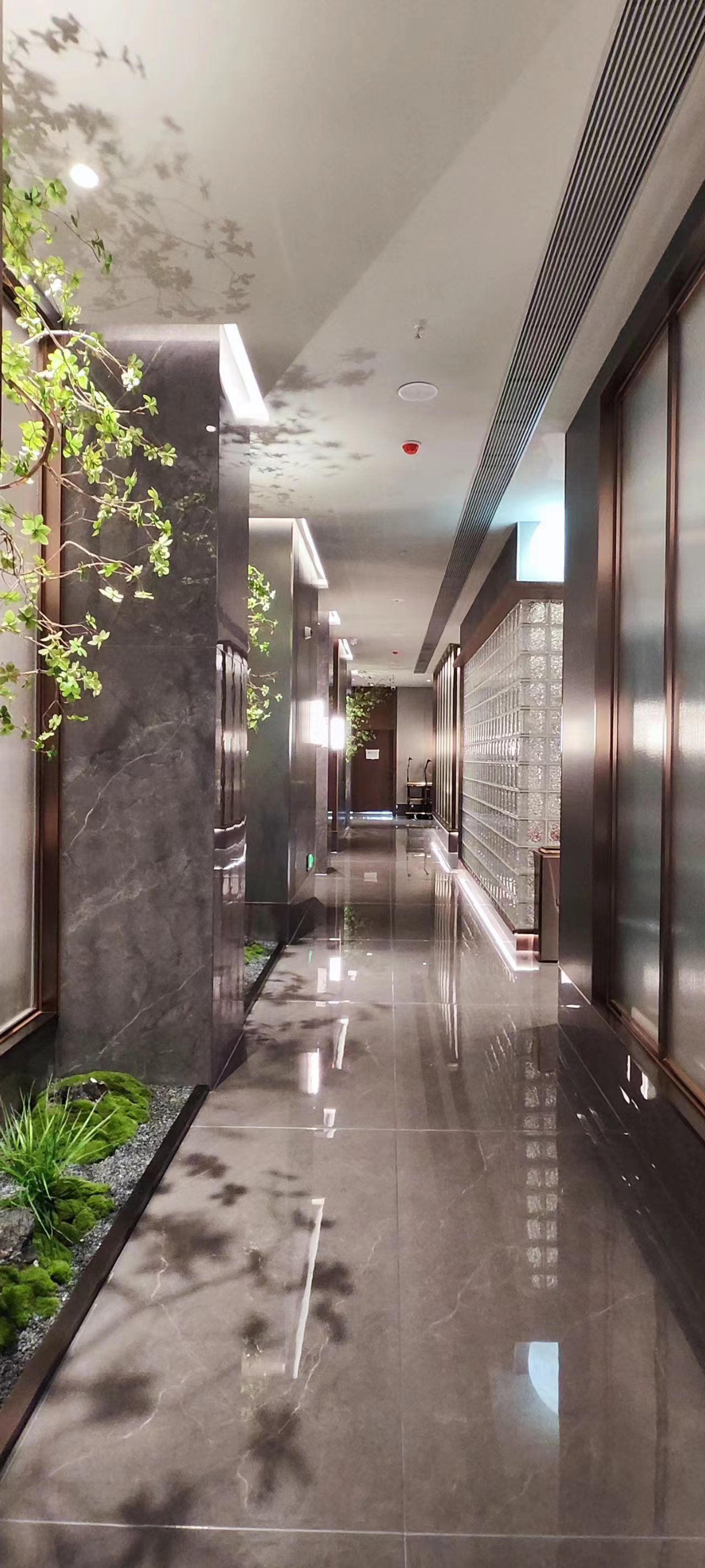 灰色岩板石材、不锈钢、竹木纤维板材、亚克力、长虹玻璃等