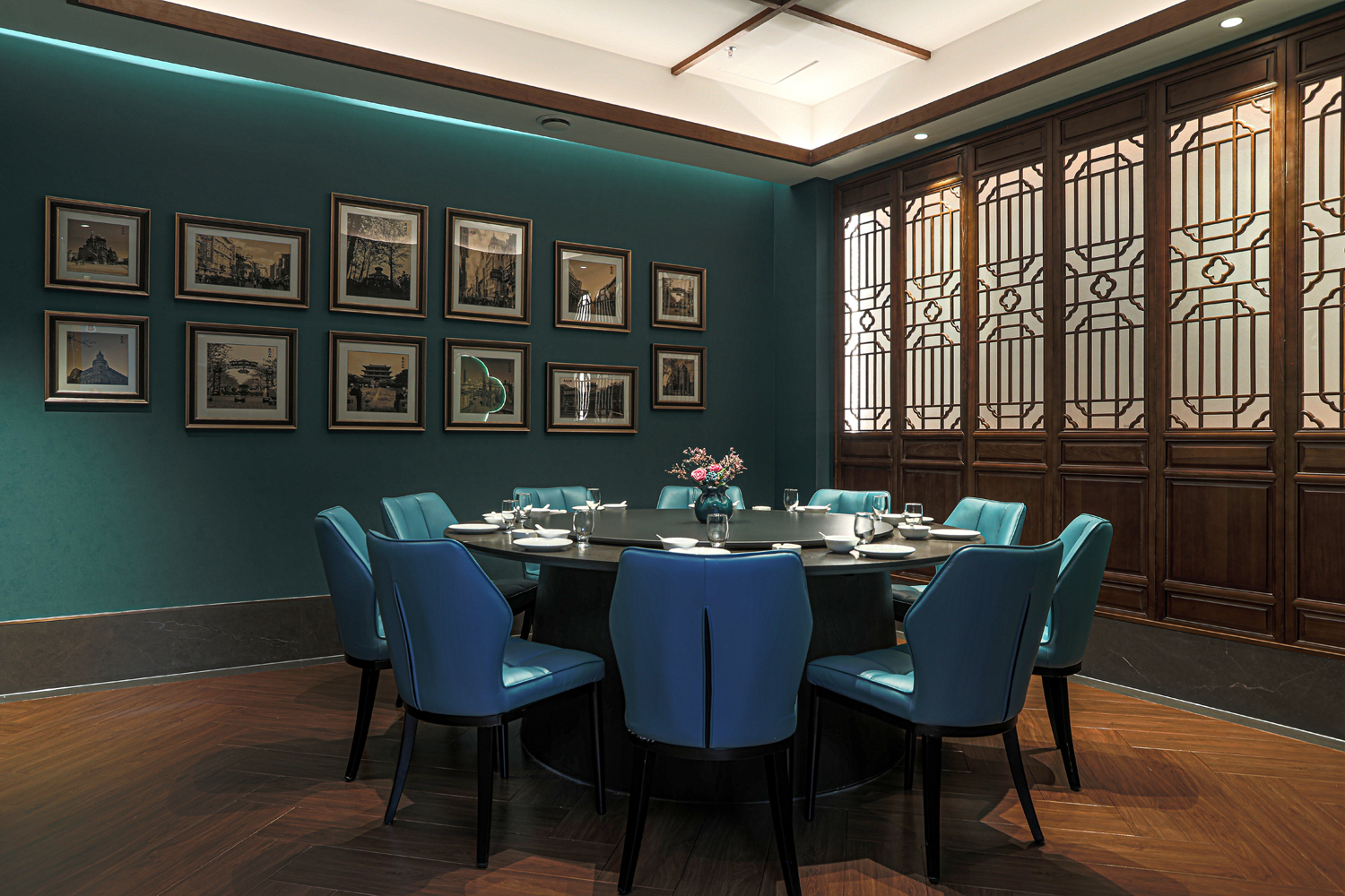 现代包间区:是门店最大的包间区,桌型最全,以12-20人的大桌型为主,适合10-20人的家宴/朋友聚会/商务宴请等。