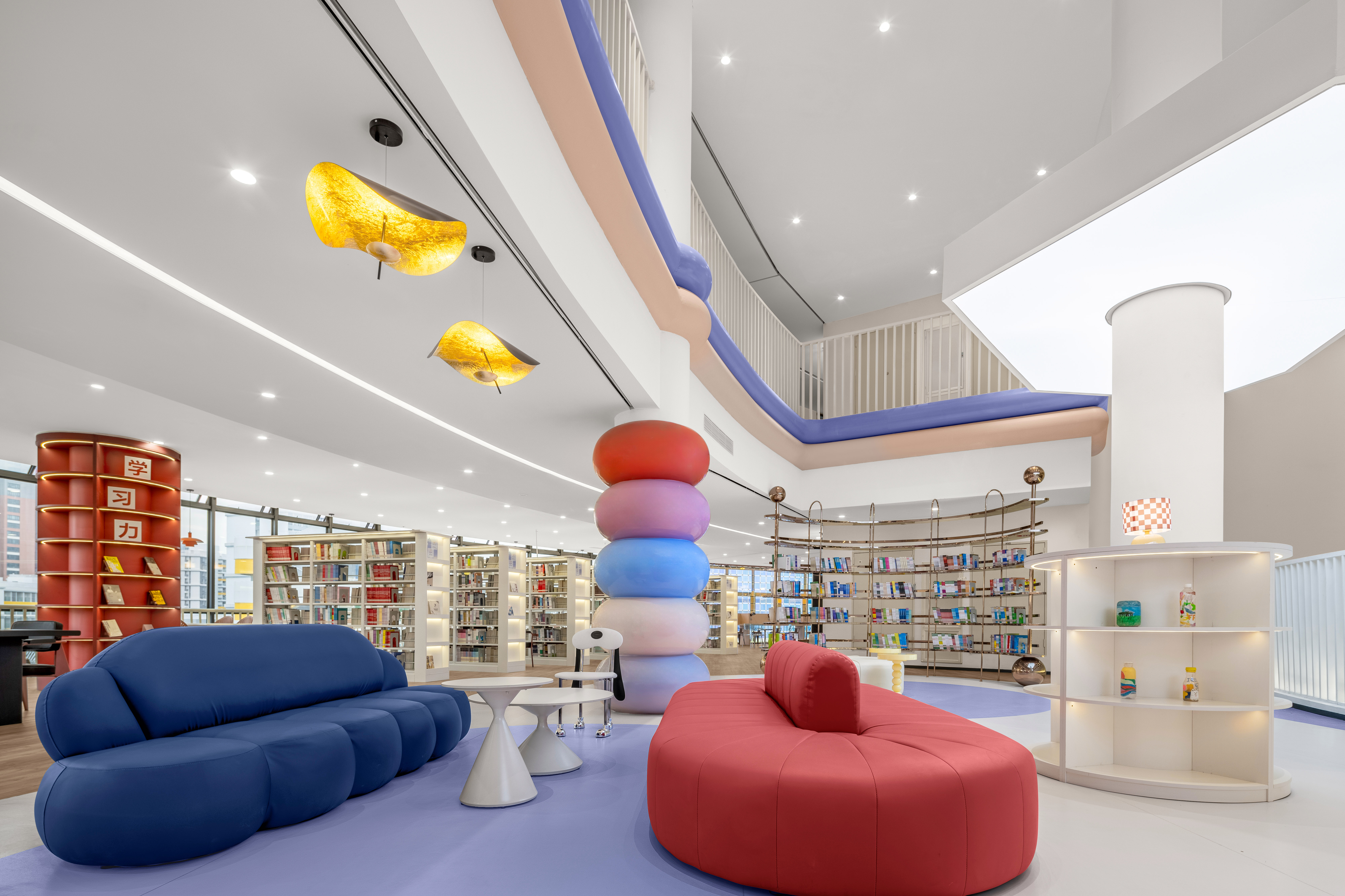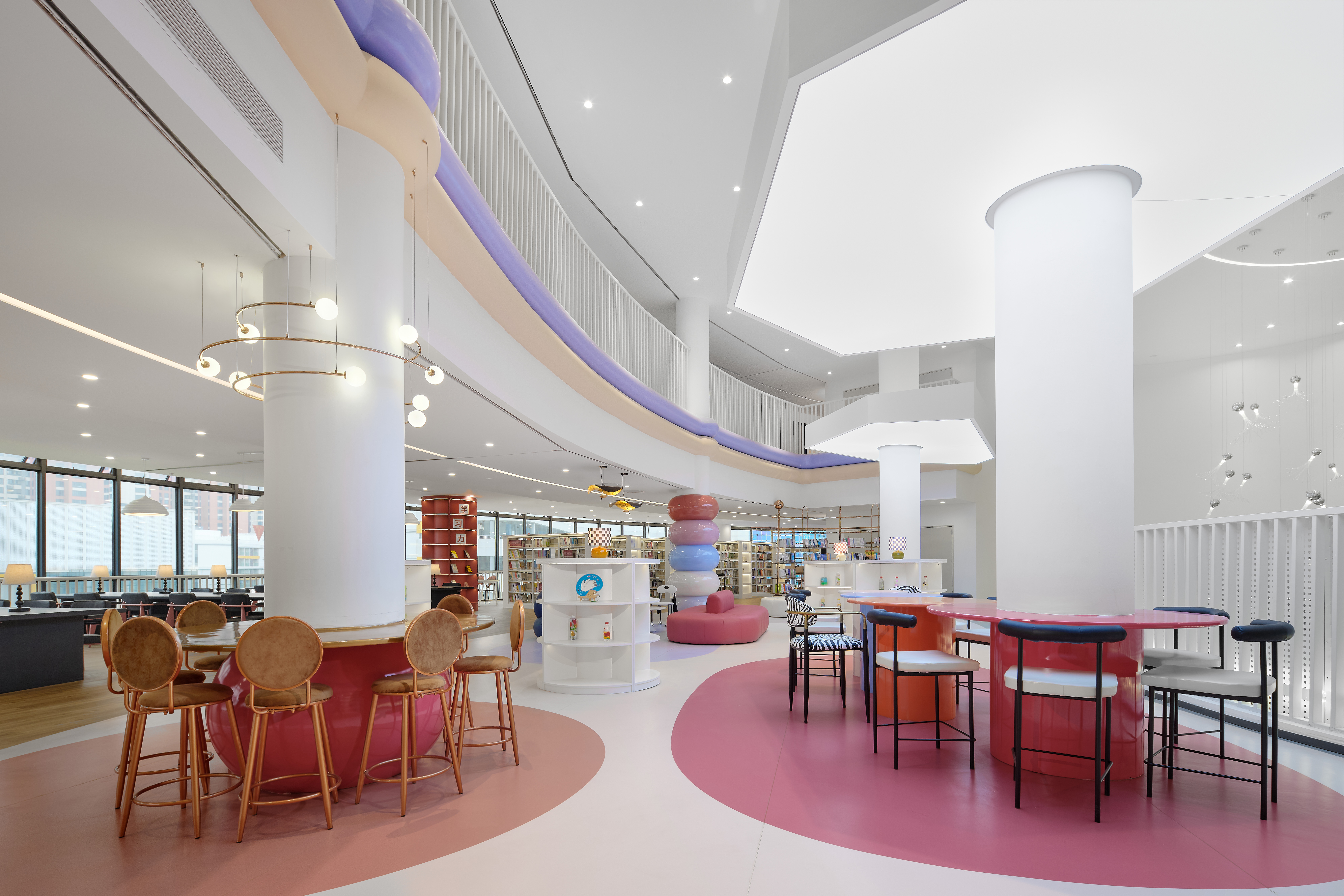 特色阅读区:“每个小孩都会长大,每个大人都曾年幼”。在这个便捷速效的时代,仿佛每个人的生活都逐渐变得单一乏味。而想象,这种自由绽放的状态,是每一个人在任何年龄段都拥有的权力,也是创新发展时代的源动力。我们的孩子,不止有创新创作能力,他也可以艺术与审美能力,艺术可以唤起人们的情感,让人们感受到美的存在,给人们带来心灵的慰藉和满足感。在这个特别的空间里,用明亮清新且富有未来感的色彩,创造了一个如梦如幻的空间,整体造型似母亲对孩子的孕有呵护,传达鼓励新时代孩子们拥有超前、跳脱、自由的精神,通过创意的布局设计手法,旨在为学子们创造一个轻松自在富有生机的土壤,为种子的发芽、苗壮生长注入新的生命养分。