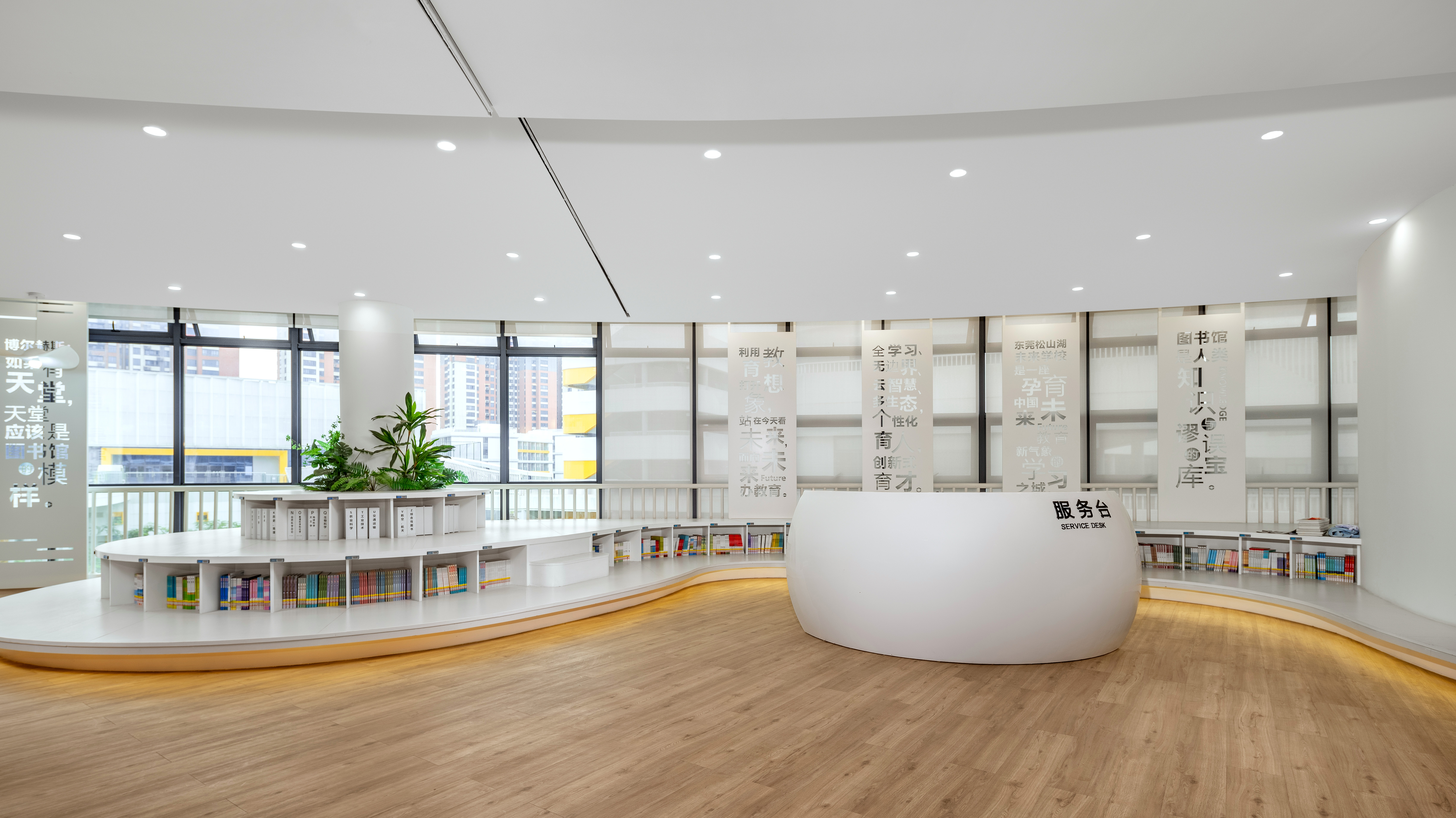 设计为了更好地满足如新生种子般的学子需求,结合松山湖未来学校定位,以最前沿的设计理念——“未来、创新、生命”作为图书馆的设计主题,将室内空间艺术与科技创新相结合打造更加富有想象力和感知力的空间,为学生创造更加丰富、多样化的阅读体验。