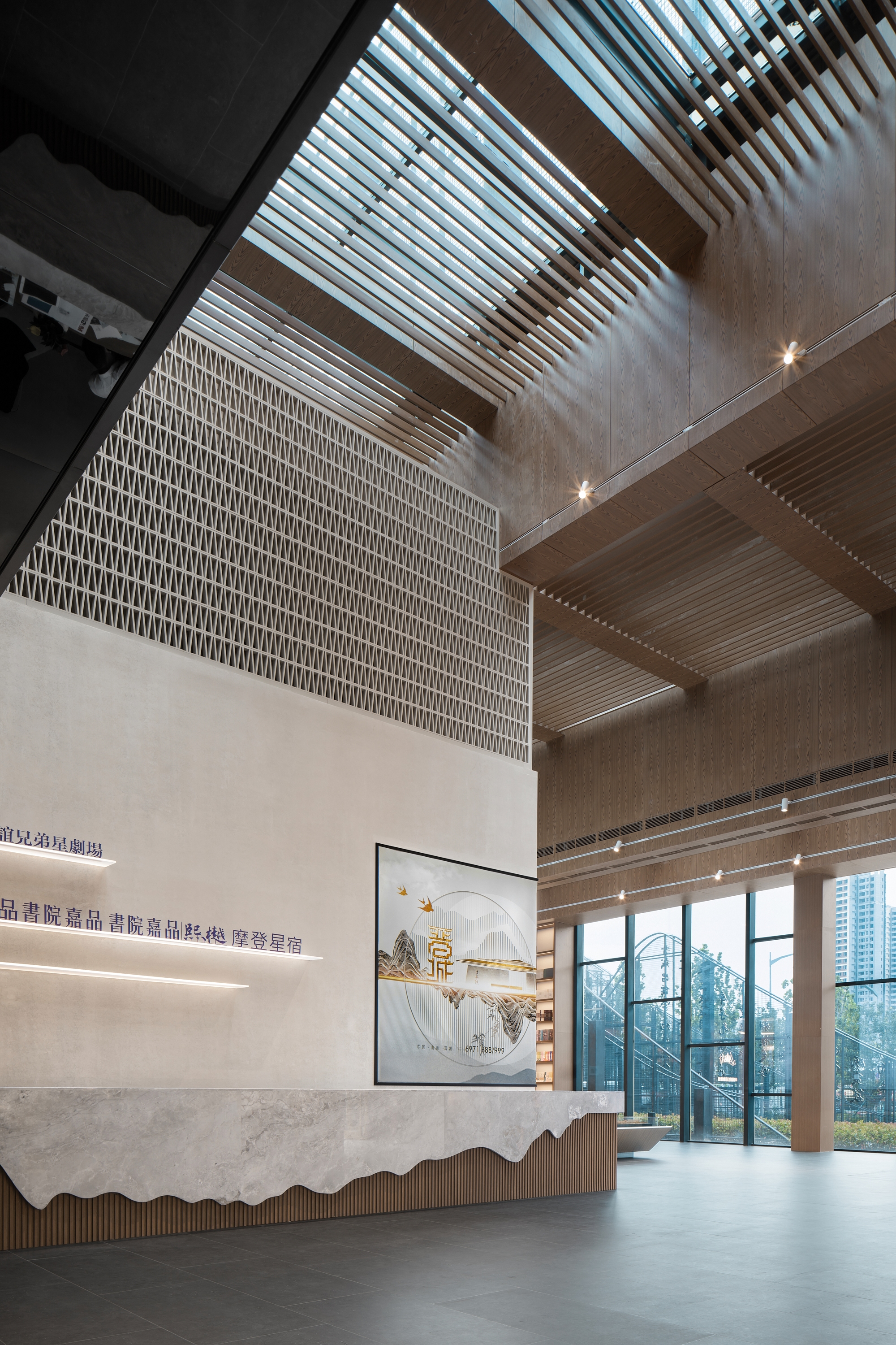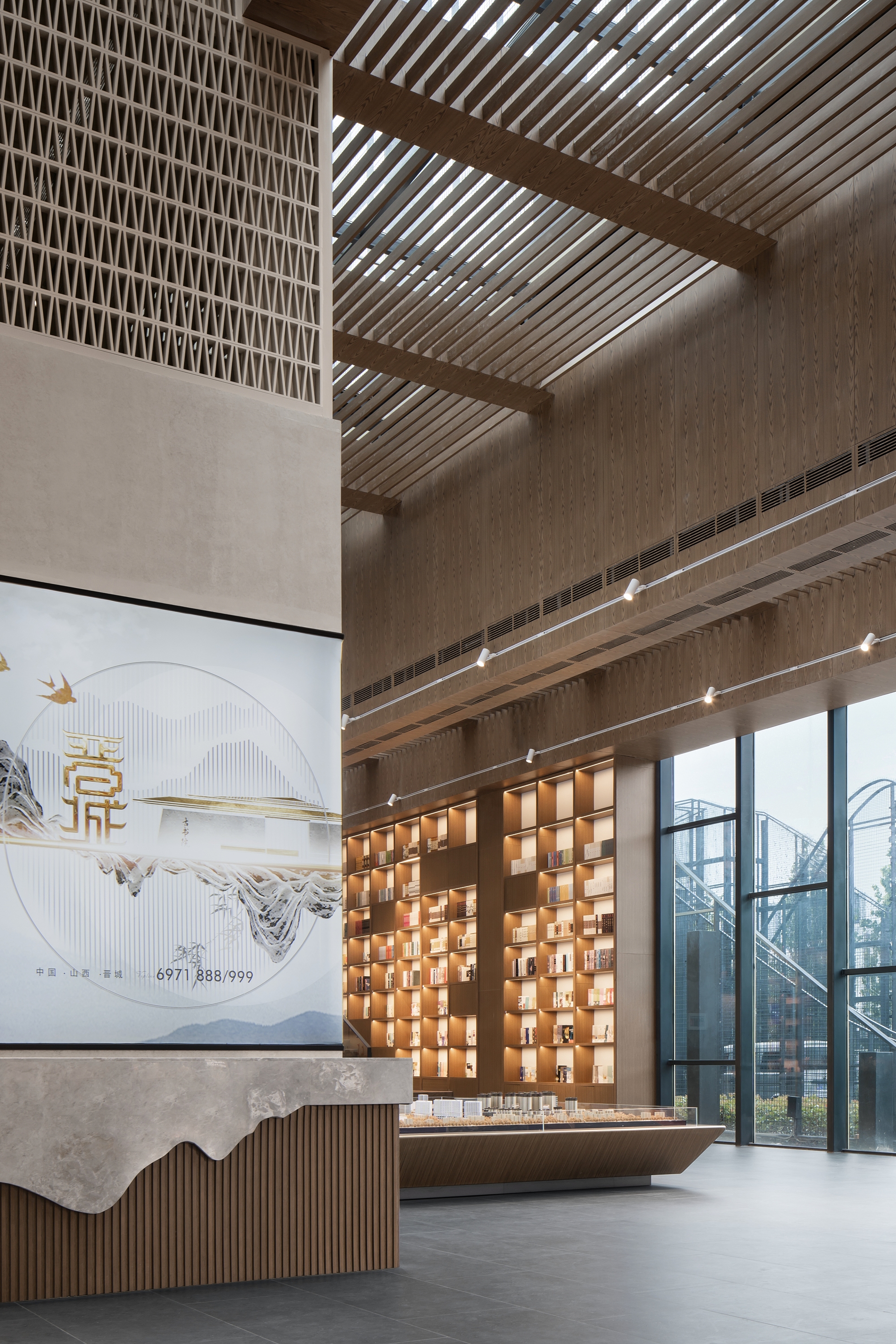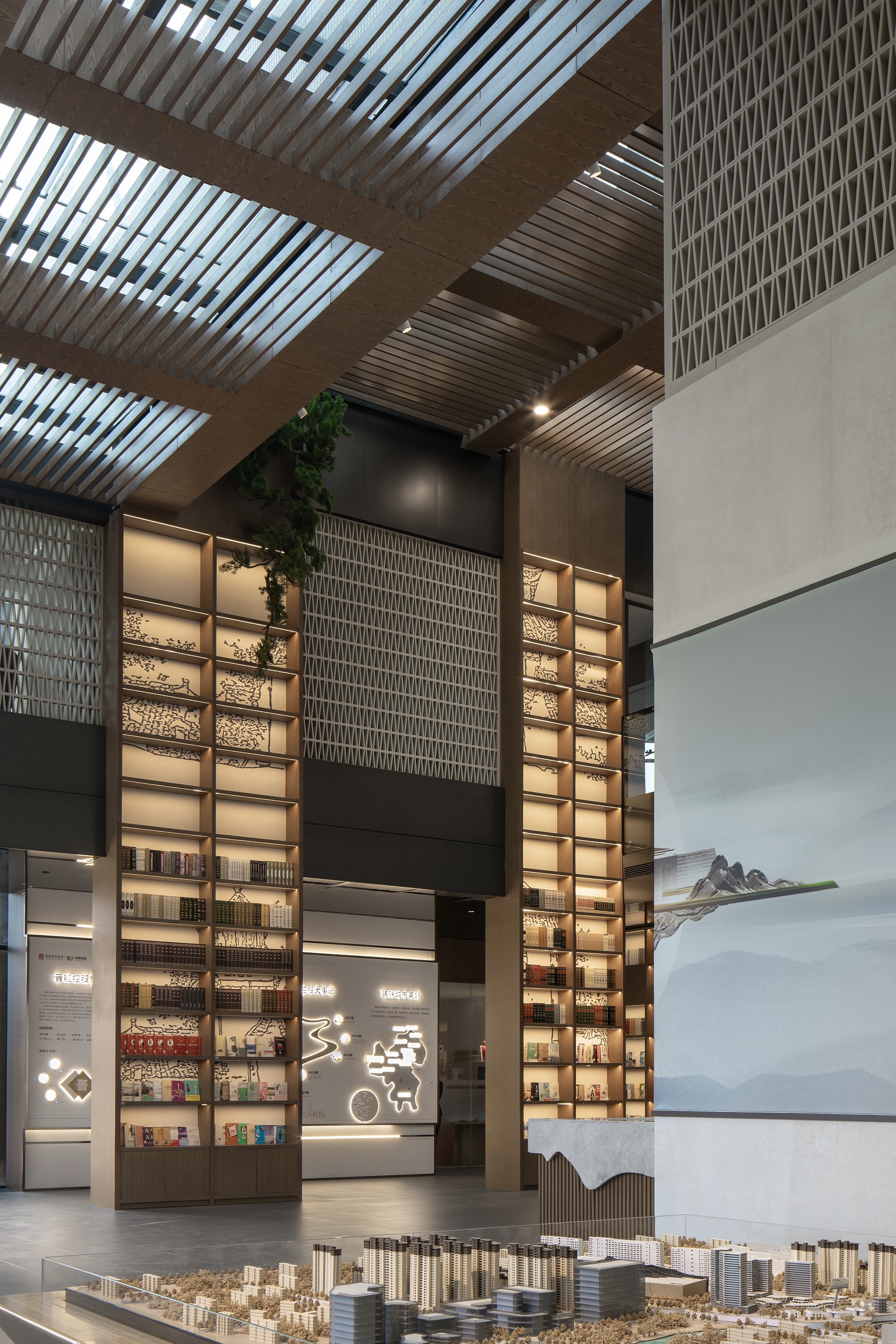 项目定位:展示中心,自身承载的重任比较多,多楼盘住宅、商业、及公寓的展示,又位于商业中心核心腹地,设计以书店形式呈现,融入到周边的商业,且与周变的商业及住宅形成无缝衔接。