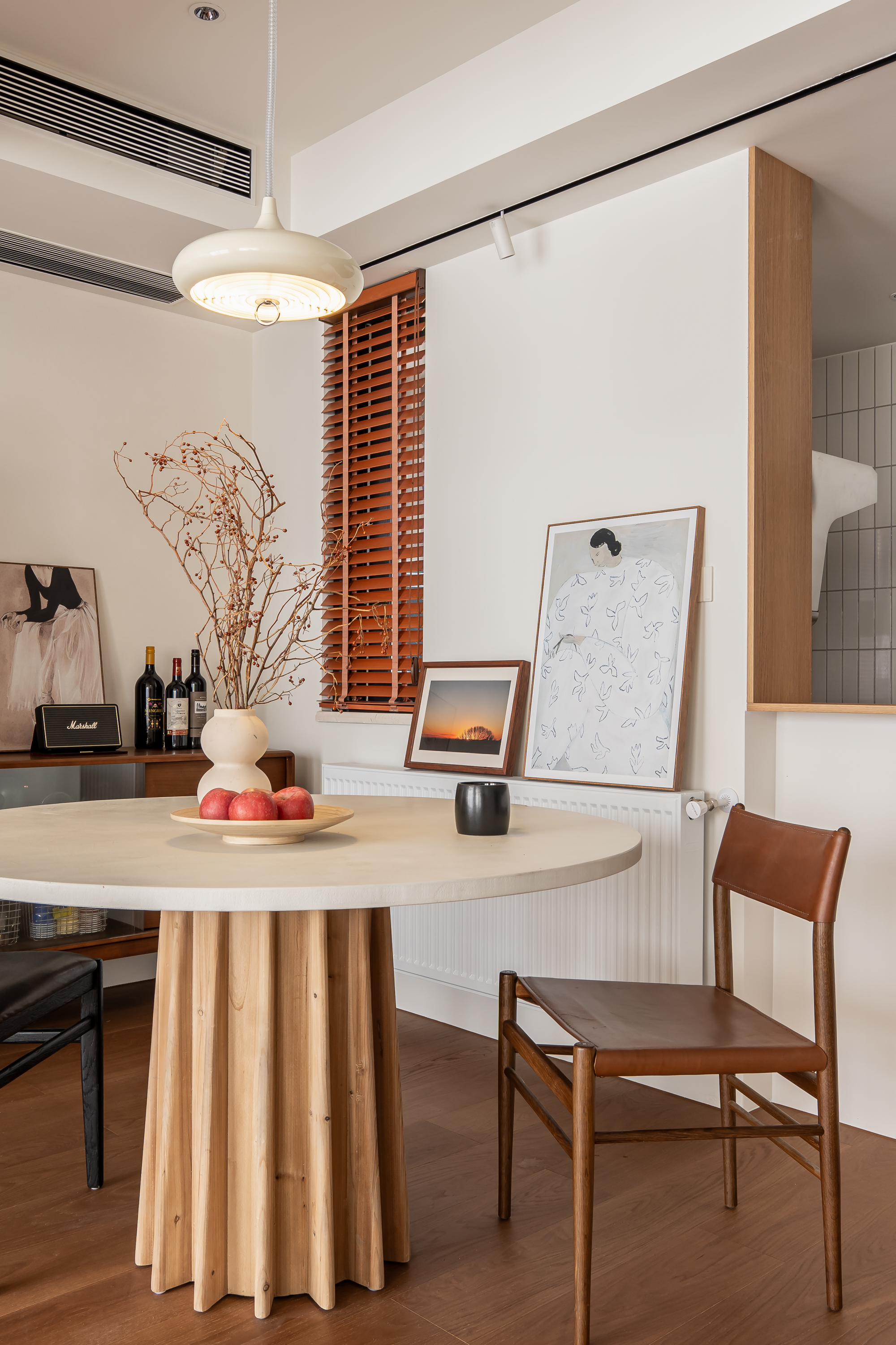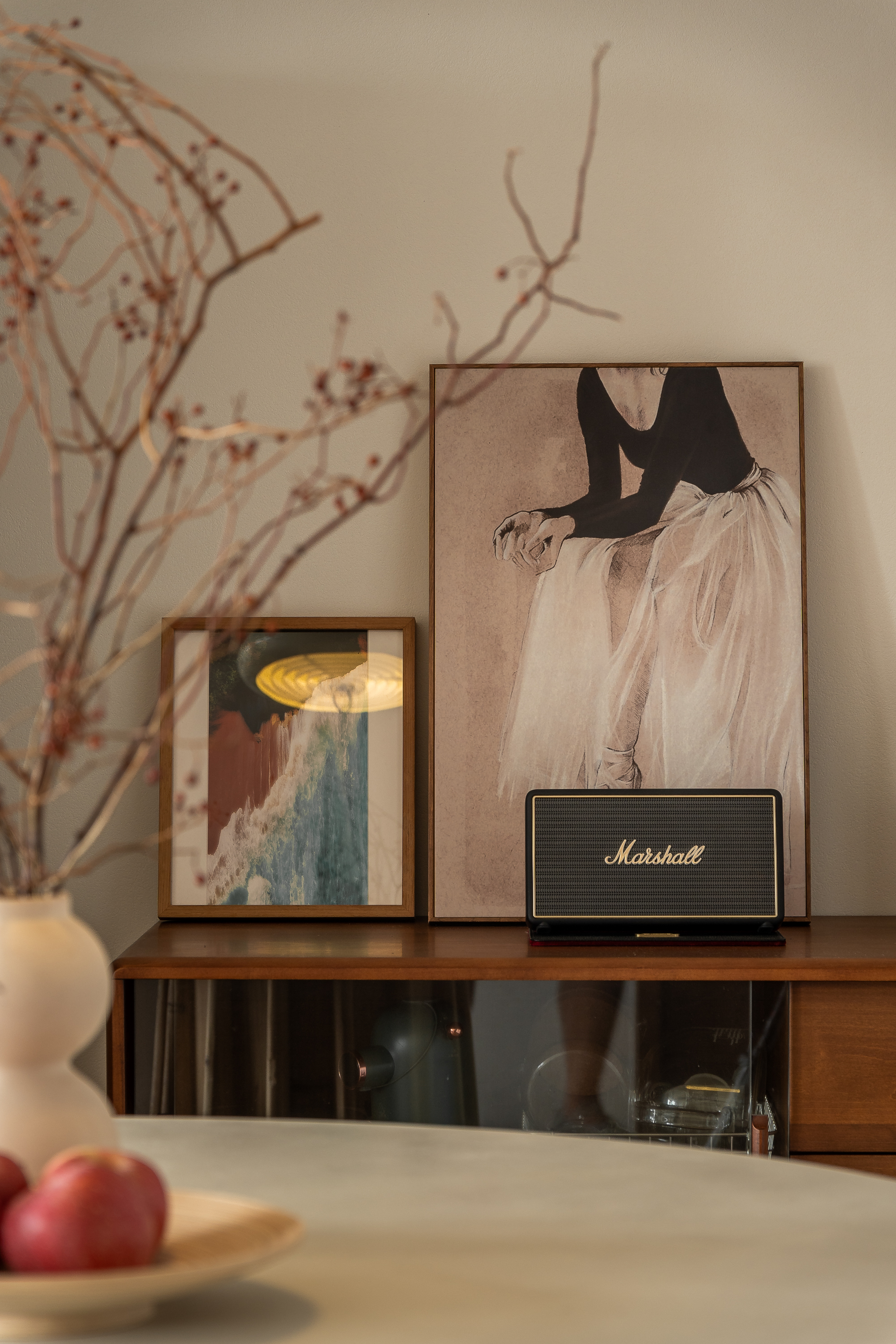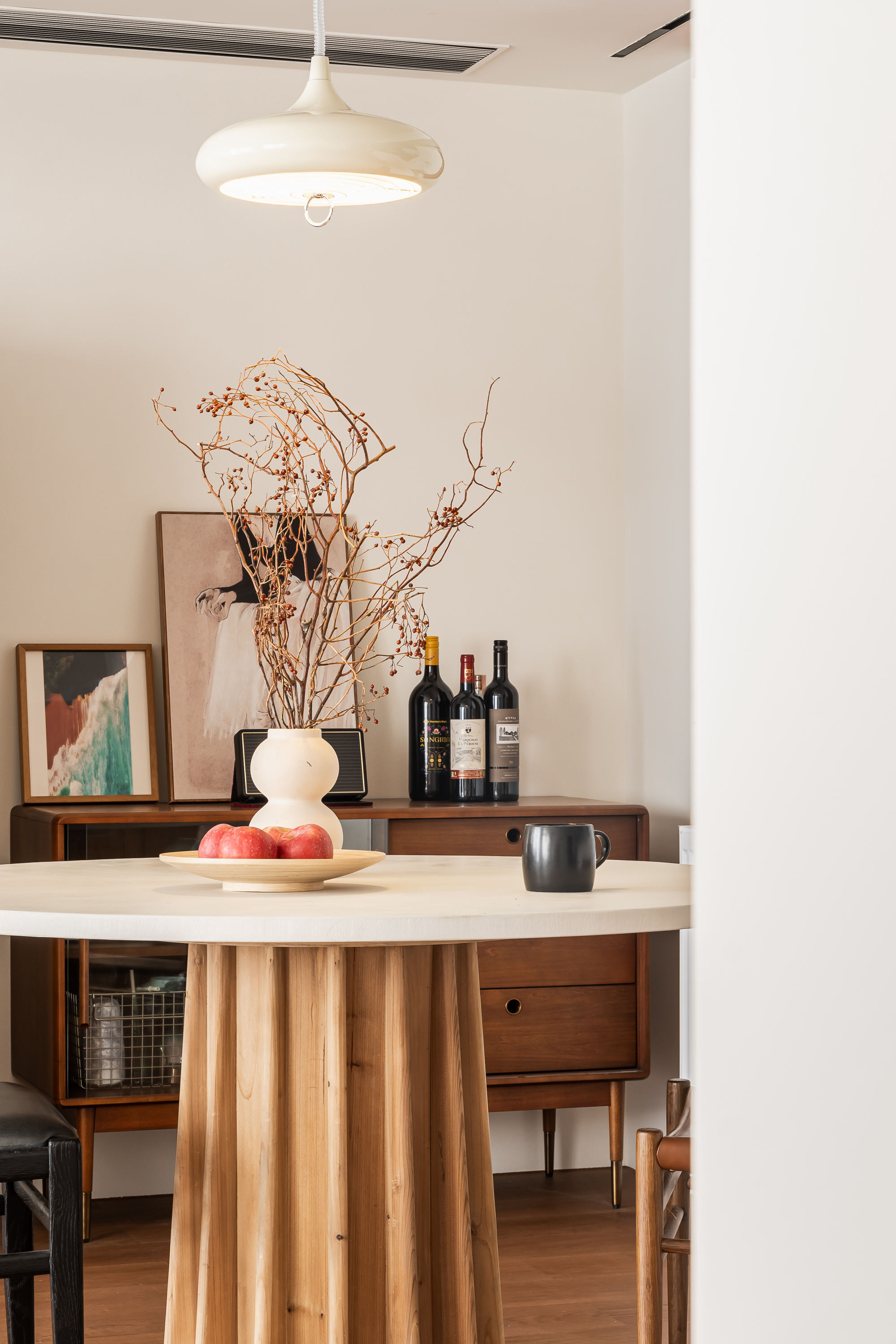 3.在色调上,全屋以奶油色搭配中古风家具,木质的温润与艺术漆的柔和相融合,不仅规避了视觉上的单调,也在极简温润的气质中产生了更多的灵动。 -