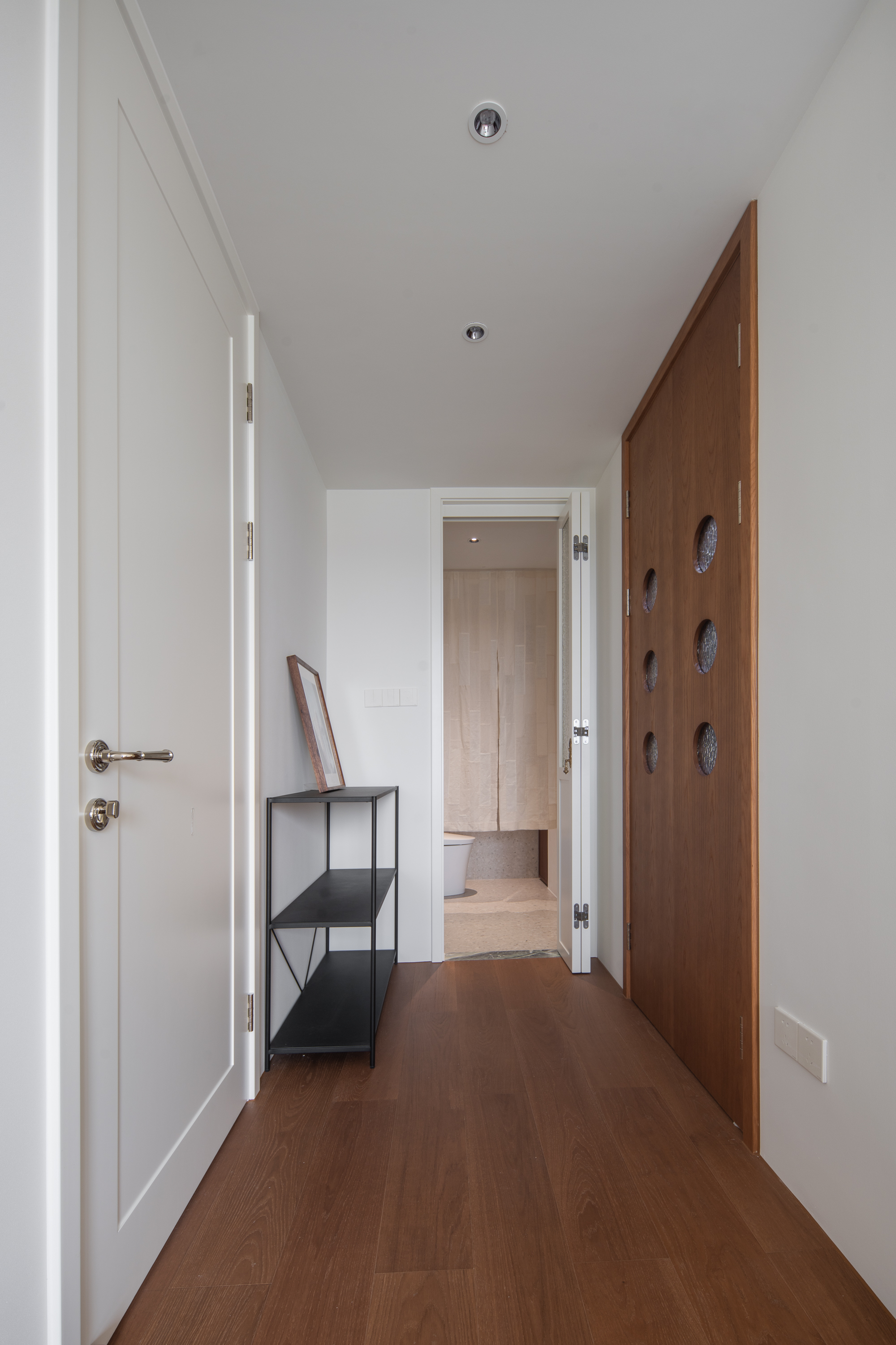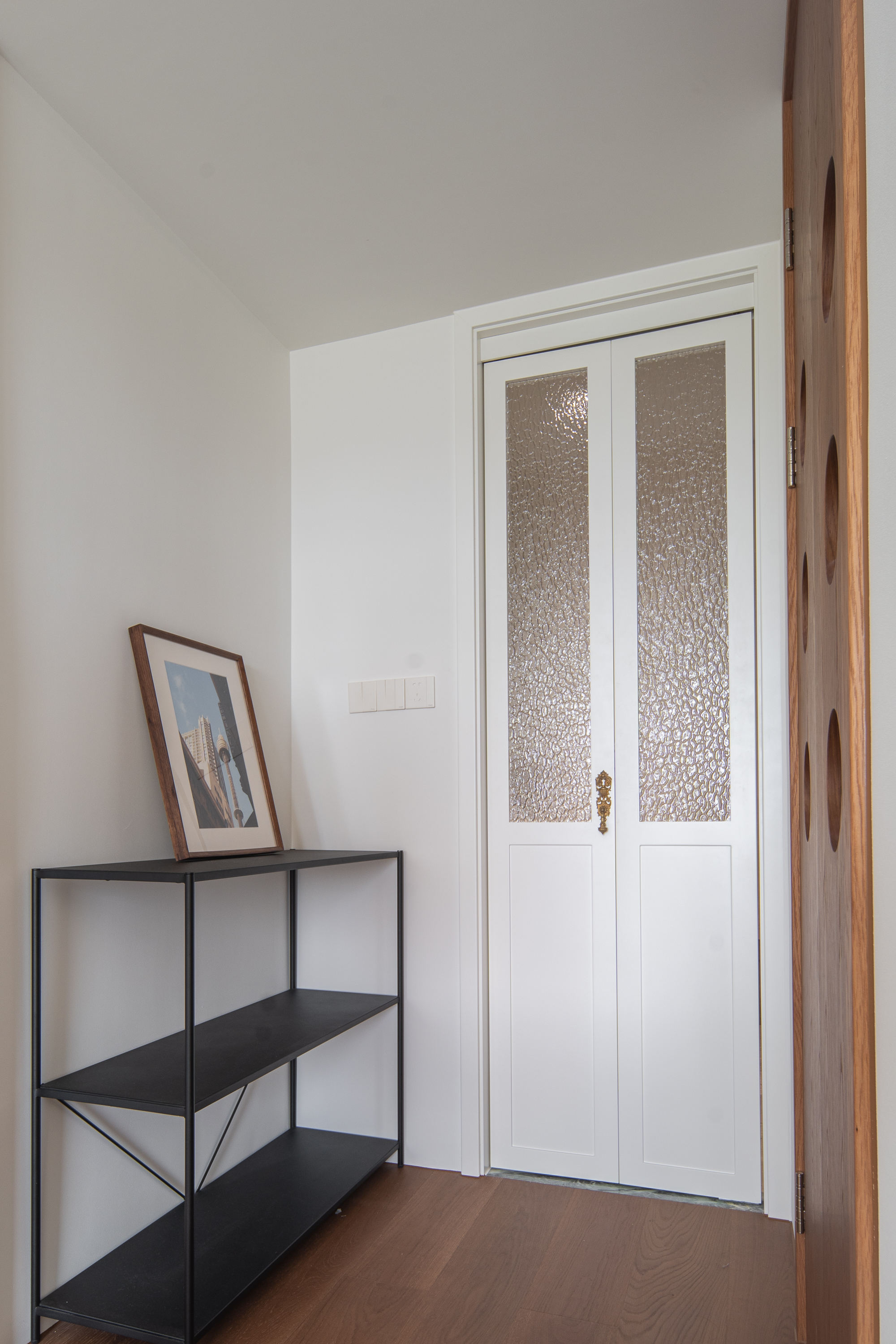 考虑到衣帽间和卫生间同时开门的空间压力,卫生间和衣帽间分别采用了折叠门和双开门,解决了进出卫生间和衣帽间的逼仄感。