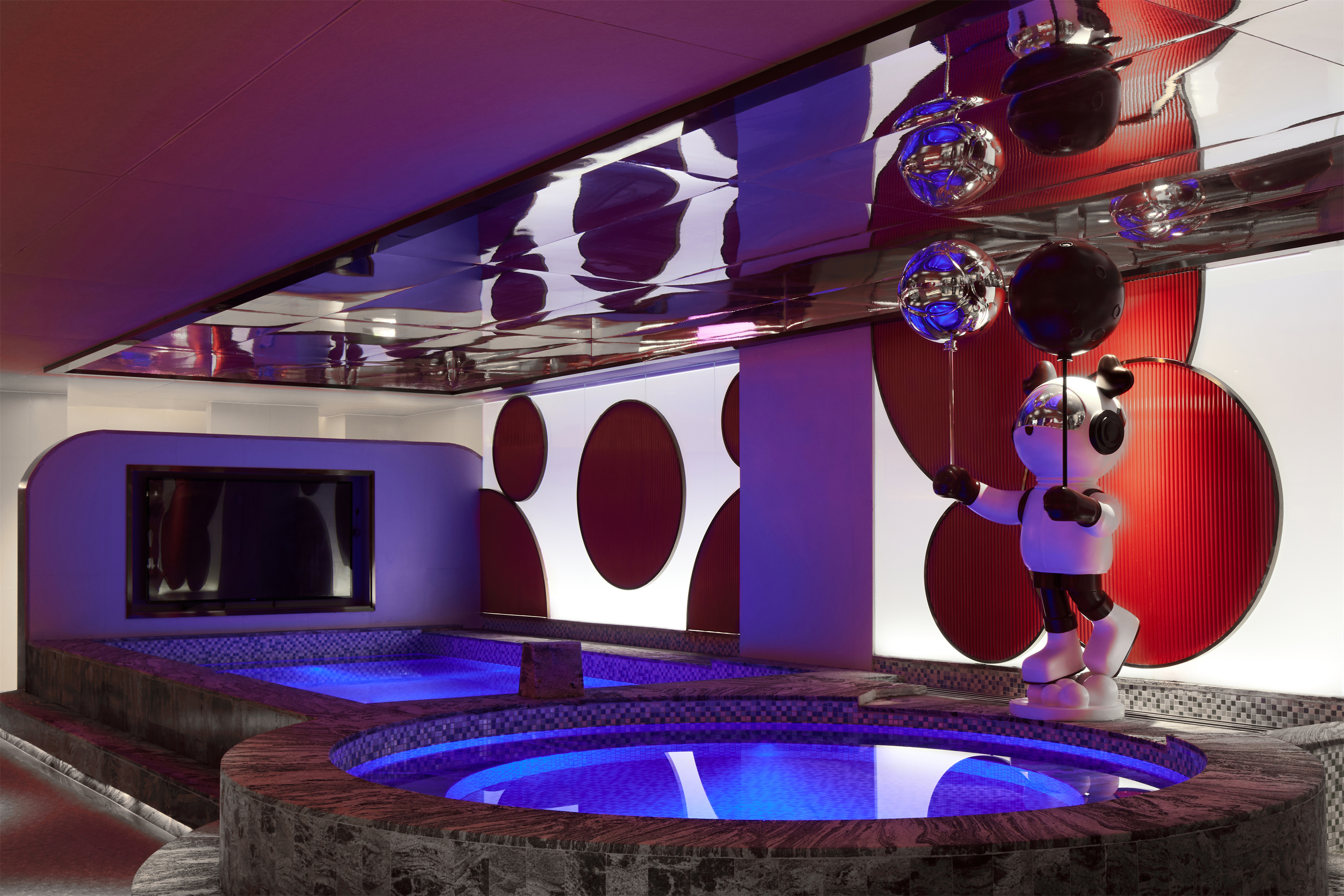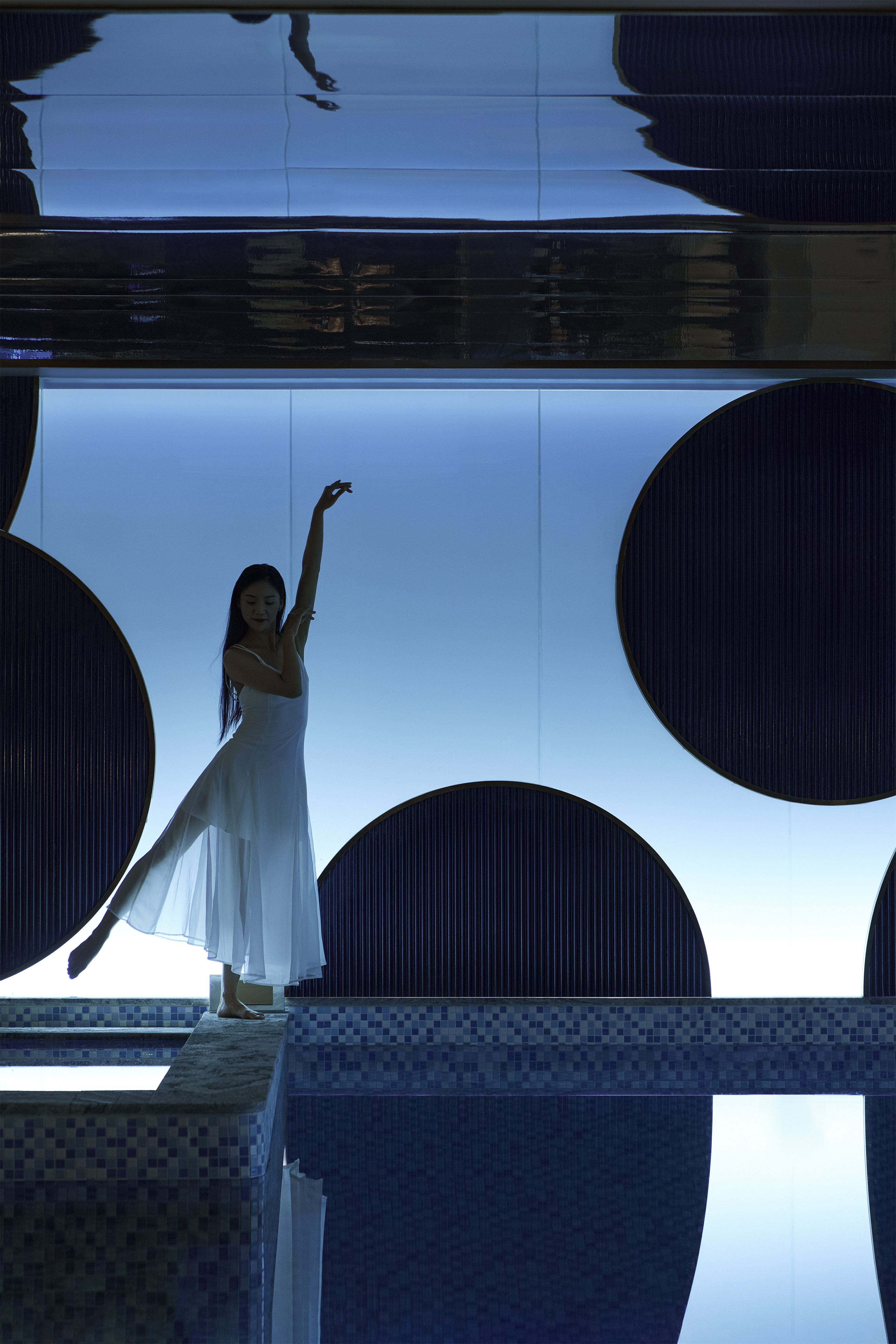 大胆运用建筑语言,与海洋元素完美融合,极简符号的堆叠,强调了空间序列感和延伸性,不仅创造了一种独特的视觉效果,更让人在享受水浴的同时,感受到一种自然与空间和谐共生的氛围。