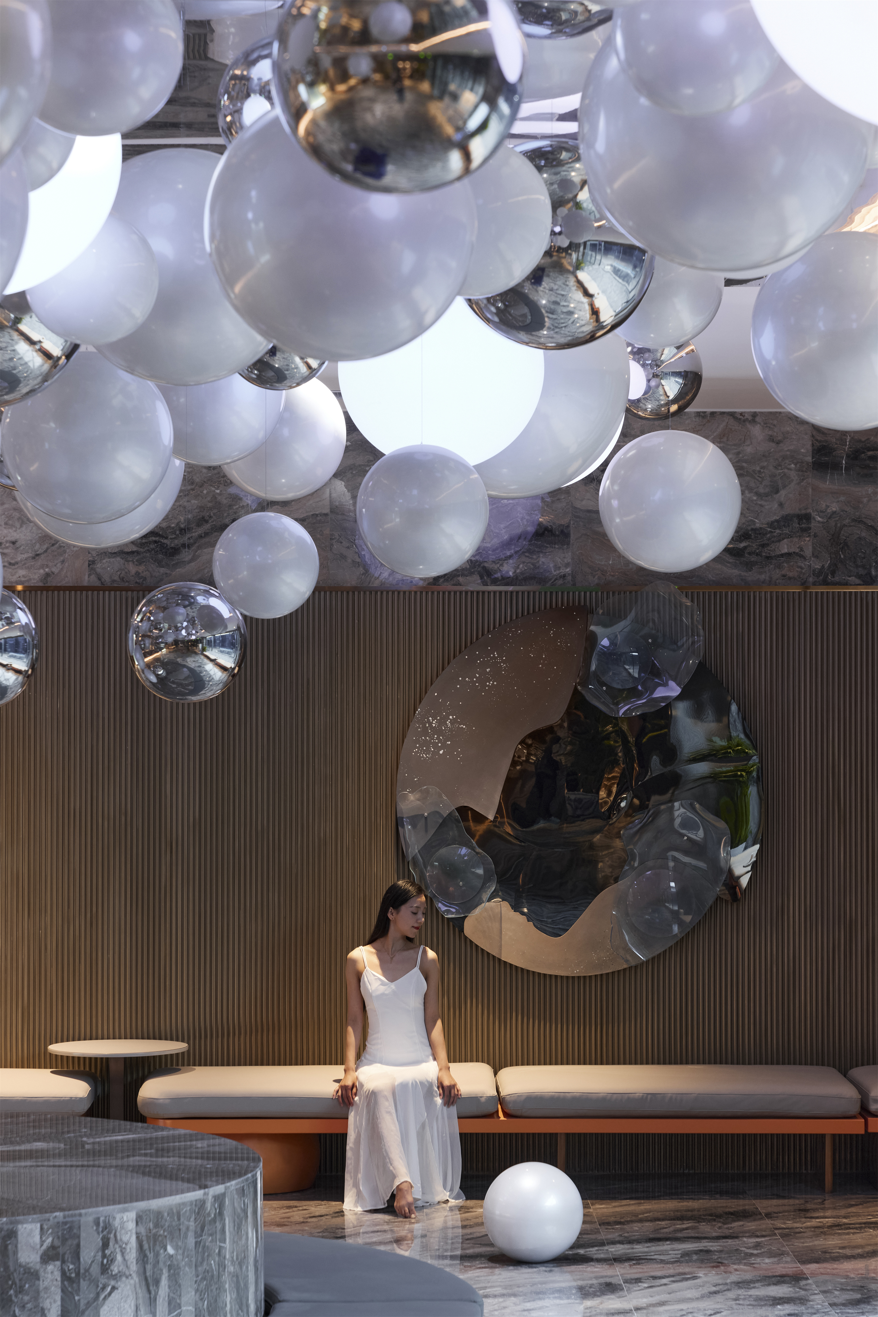 设计师捕捉泡泡的踪迹释放到空间里,以当代艺术形式进入,泡泡就像新生的细胞一般具有鲜活的生命力,变成一片泡泡海洋,以此构建的场域适宜于当代人心灵尺度,于此促生人与自然之间的精神共振。
