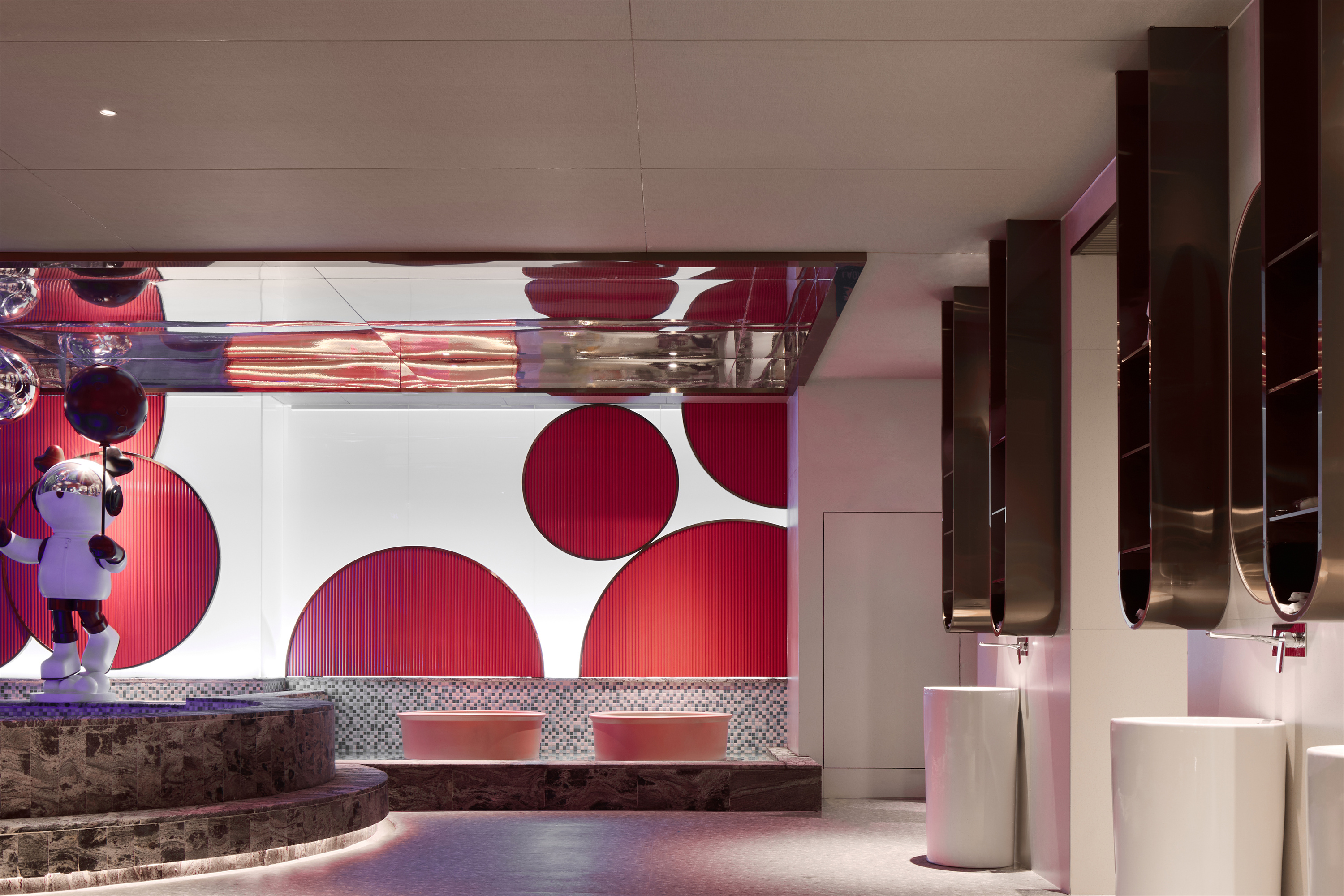 几何元素大小不一如海上升起的泡泡,使空间充满动态感与活力,让人与自然、自然与空间之间建立起紧密的联系,每个到访者都能更好地融入其间,于此可以完全自由地、忘我地放松身心。