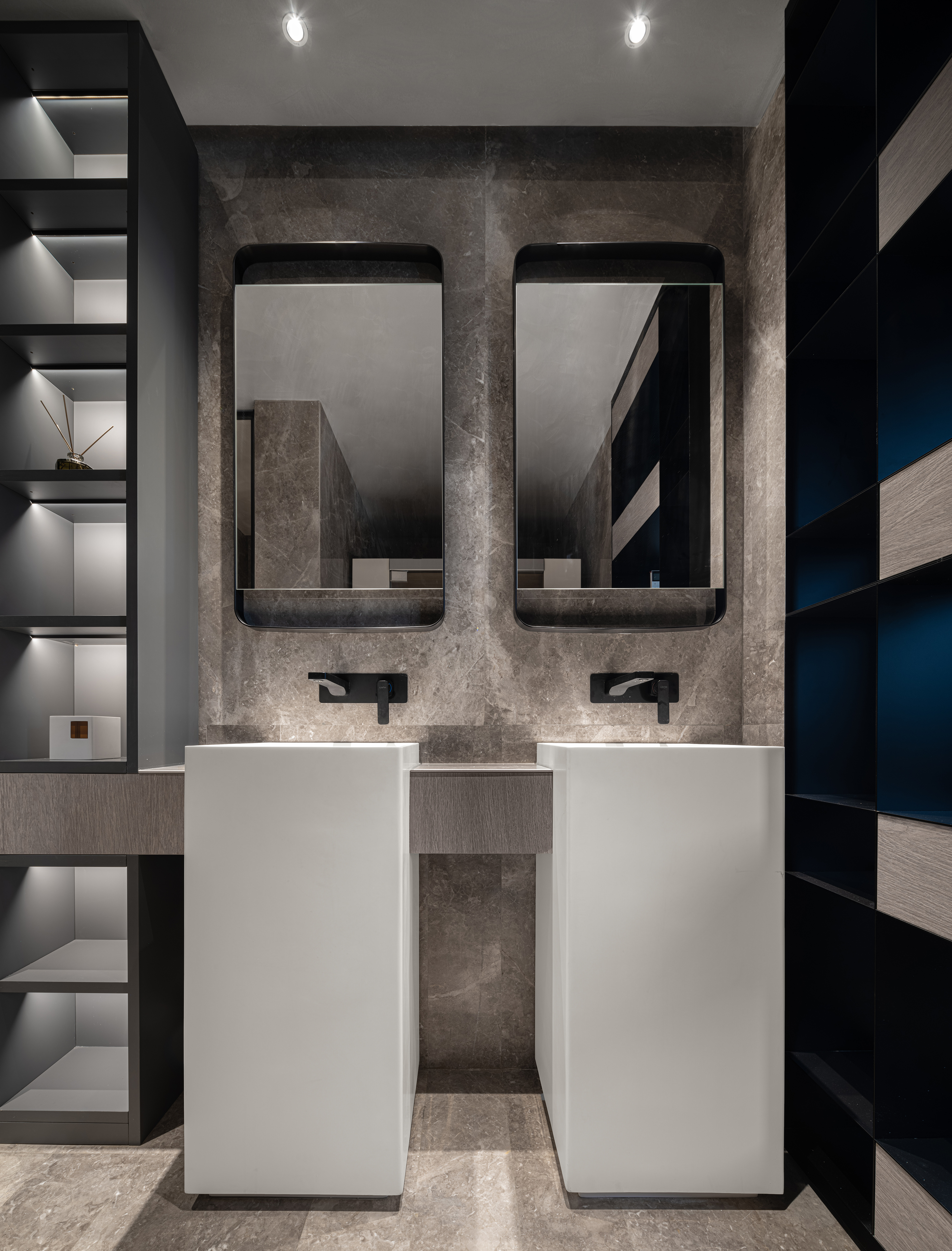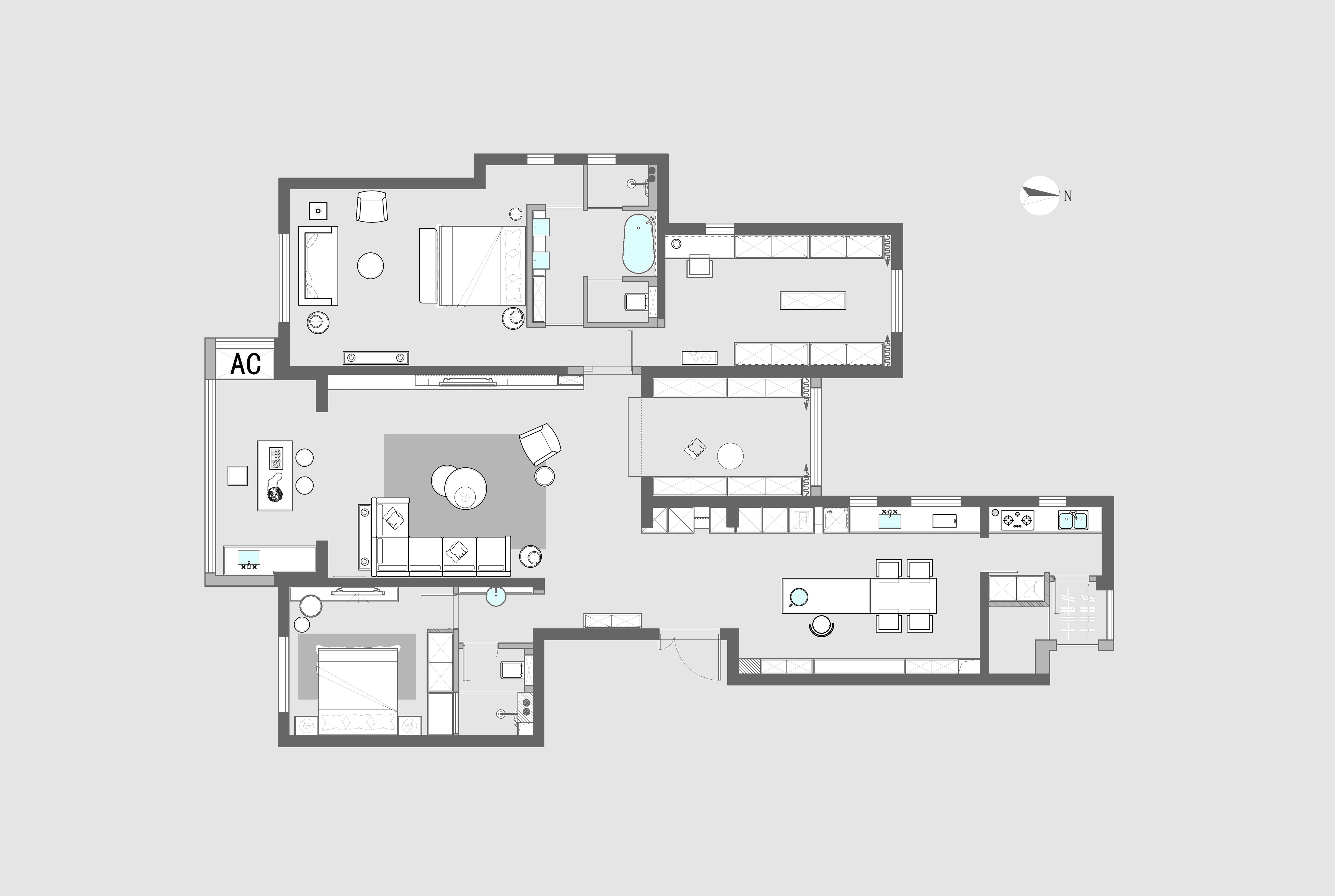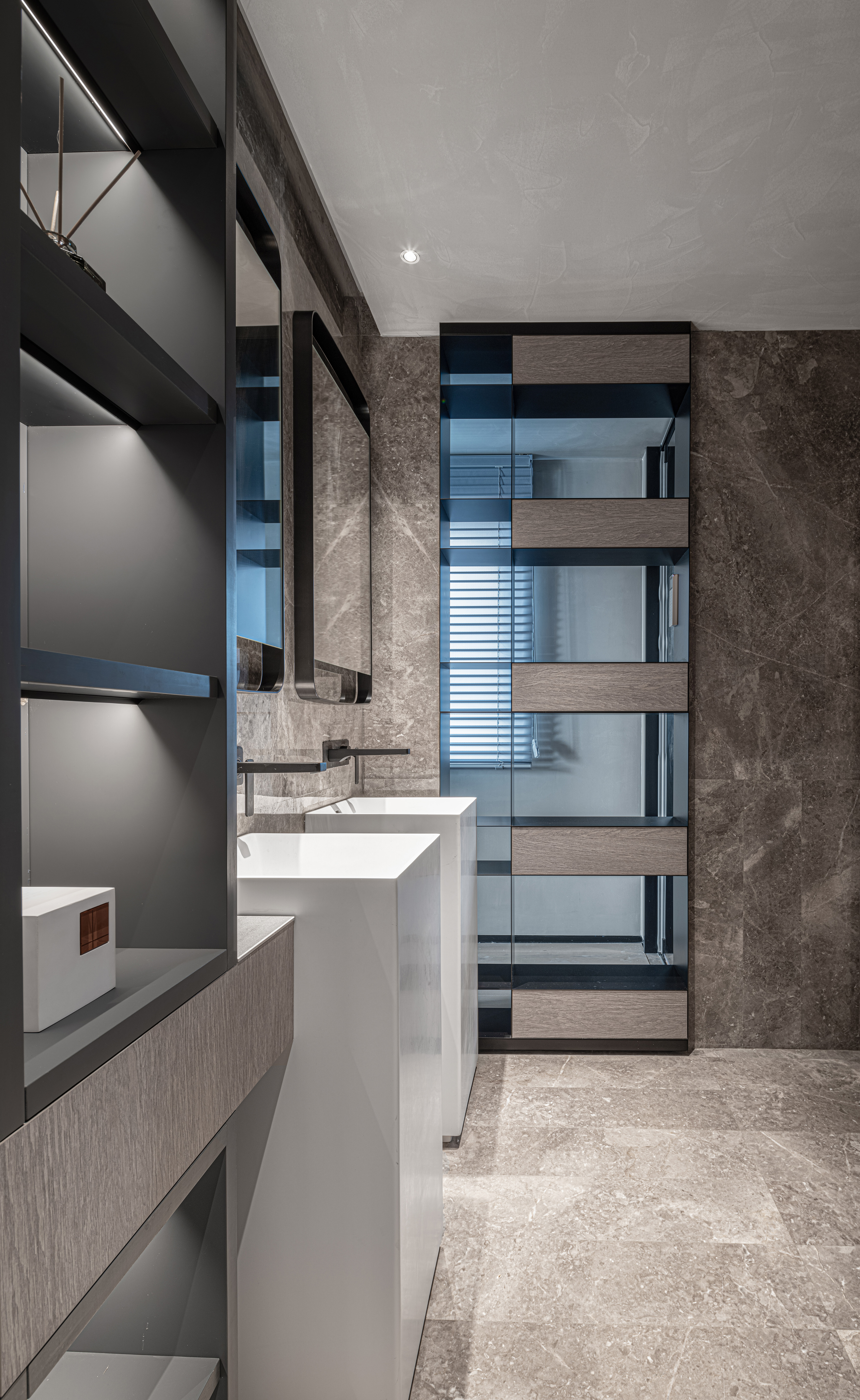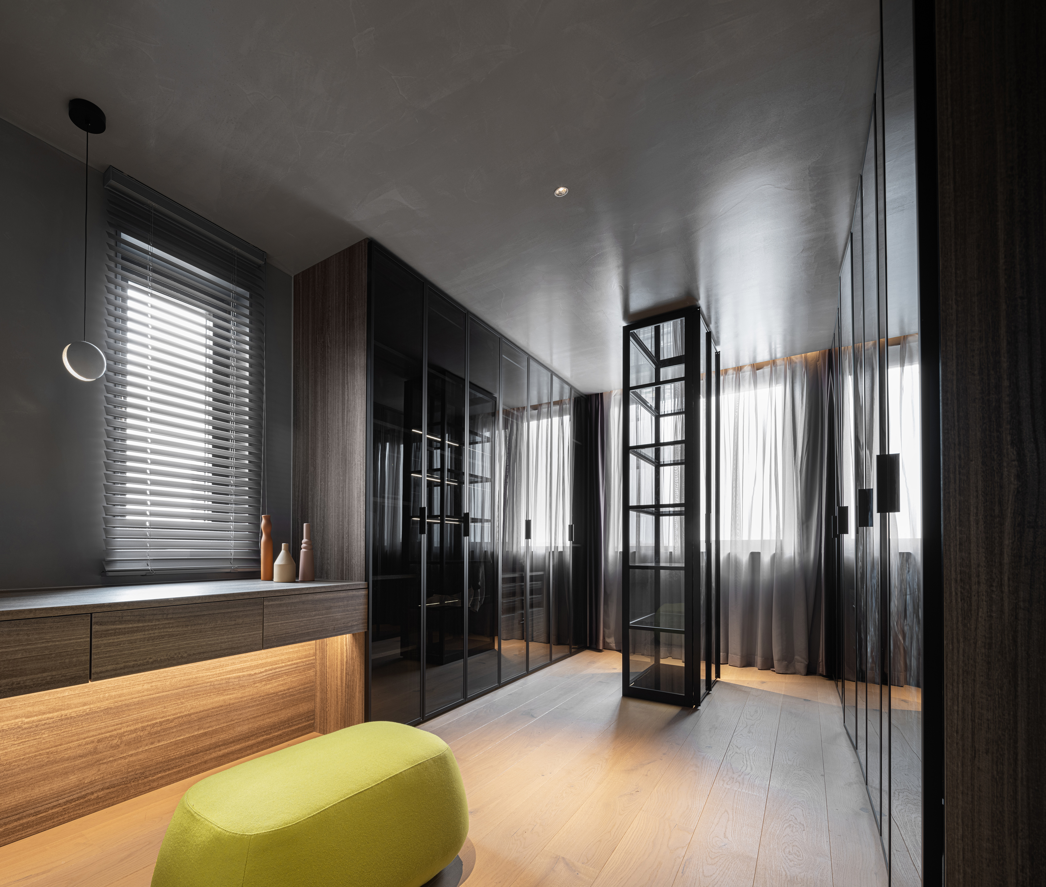 空间布局:设计师通过对动线的重新划分,开阔了空间的固有尺度。卧室深色调的安全感、包容感、柔软感、温暖感、有序感,不仅对人的感官及精神产生影响,而且可以表达出情感,这是种质朴看似简单,实则比金碧辉煌更具艺术效果。